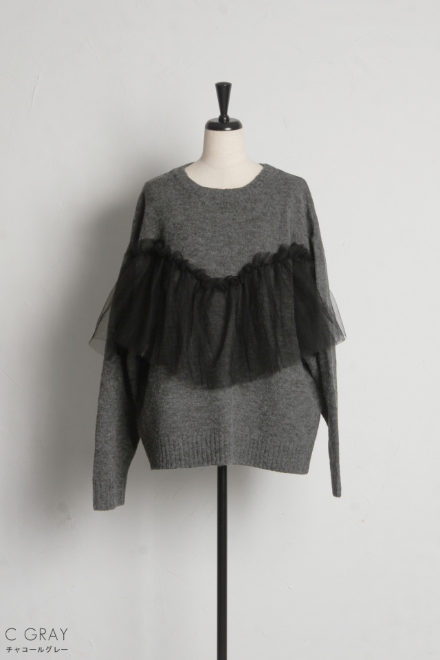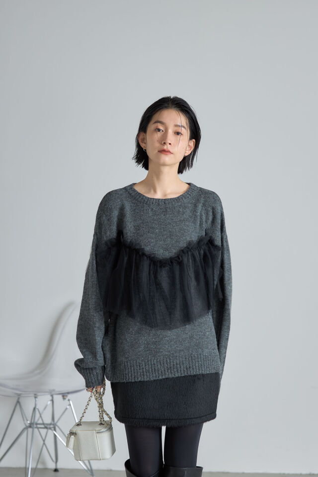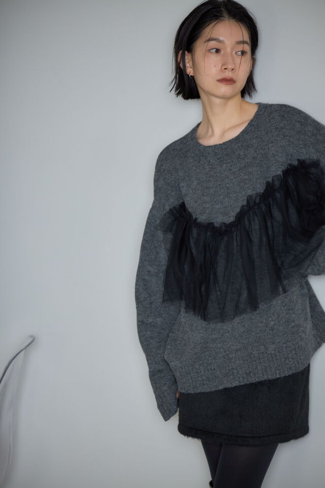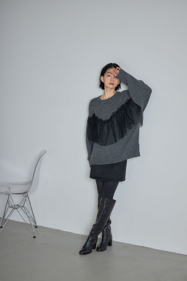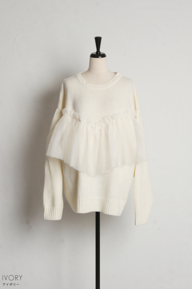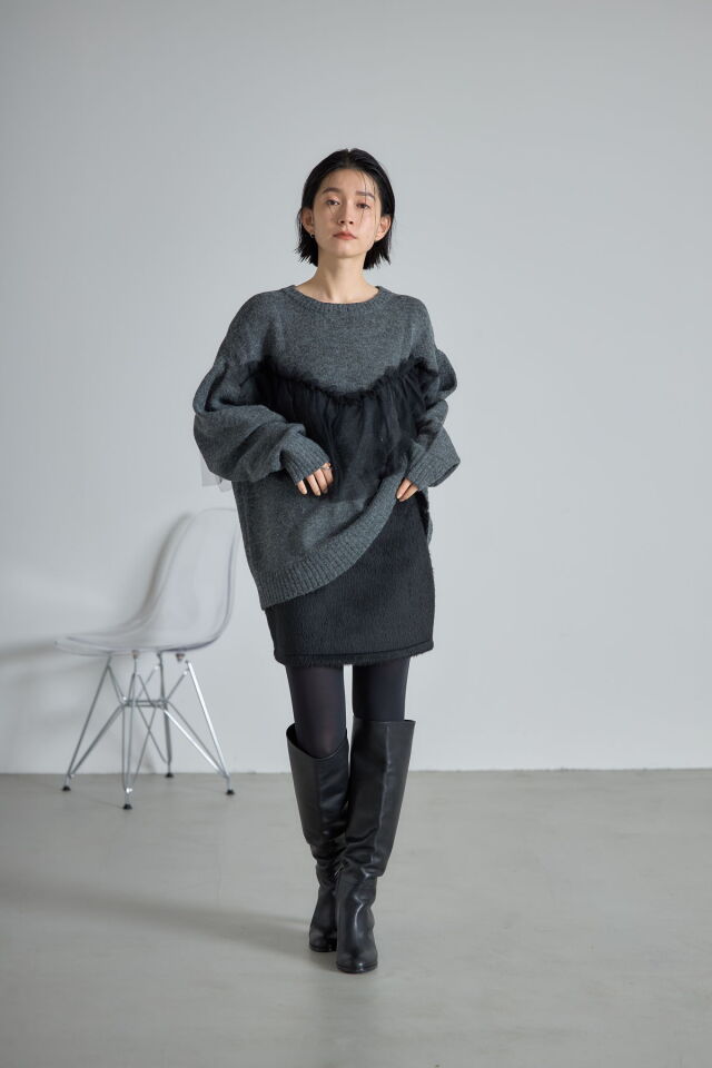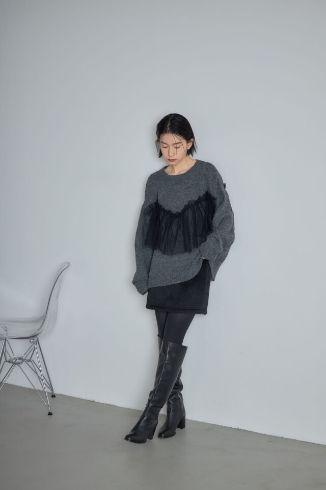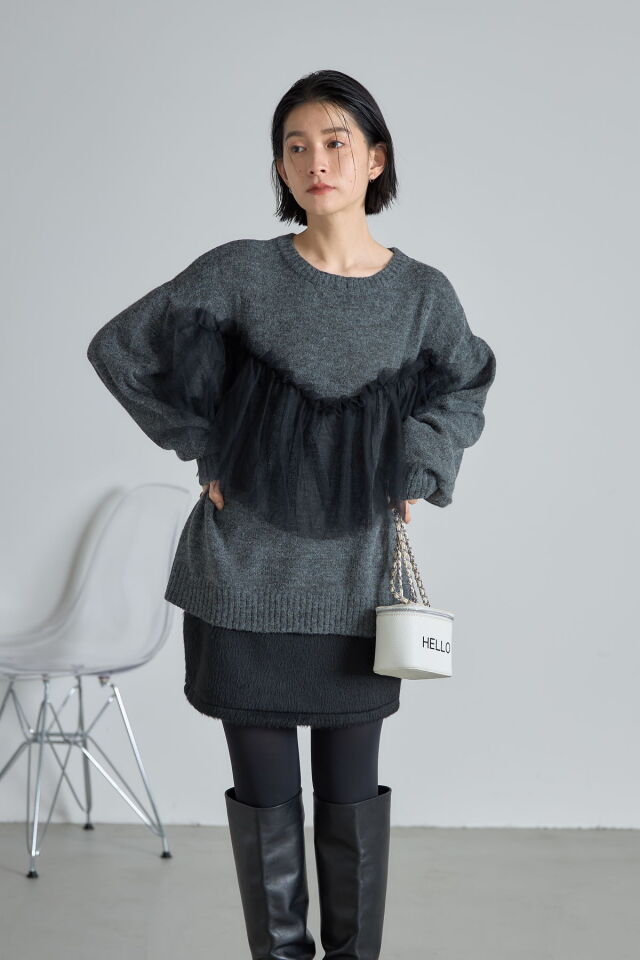 | 素材 | : | 本体/アクリル45% ポリエステル30% ナイロン25% チュール/ポリエステル100% (中国製・伸縮性あり・透け感なし・裏地なし) |