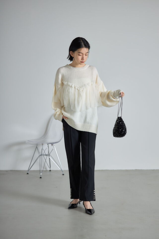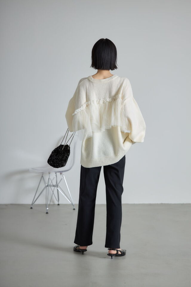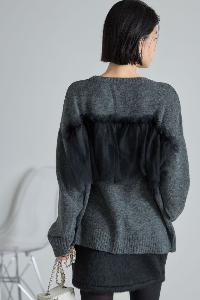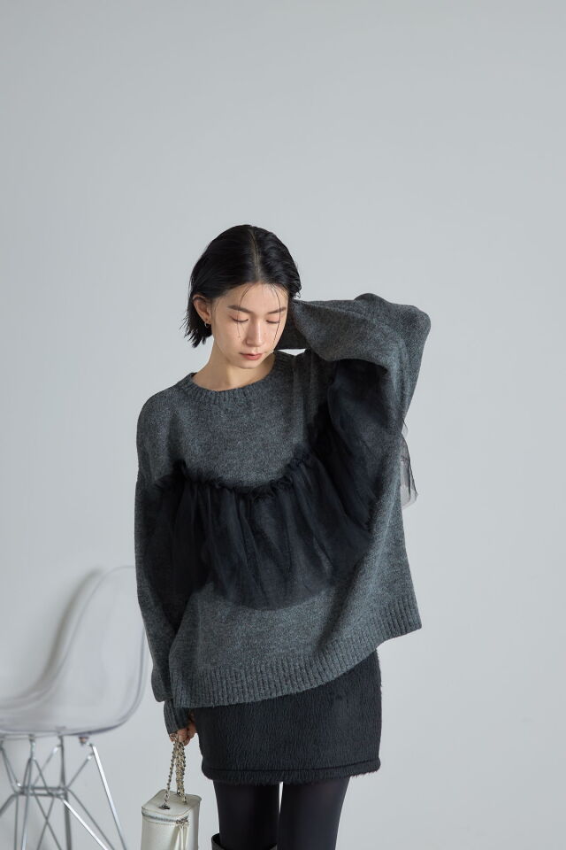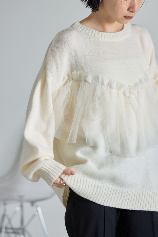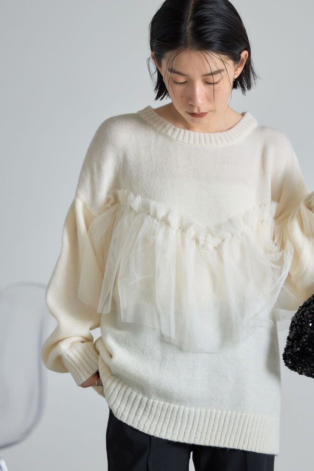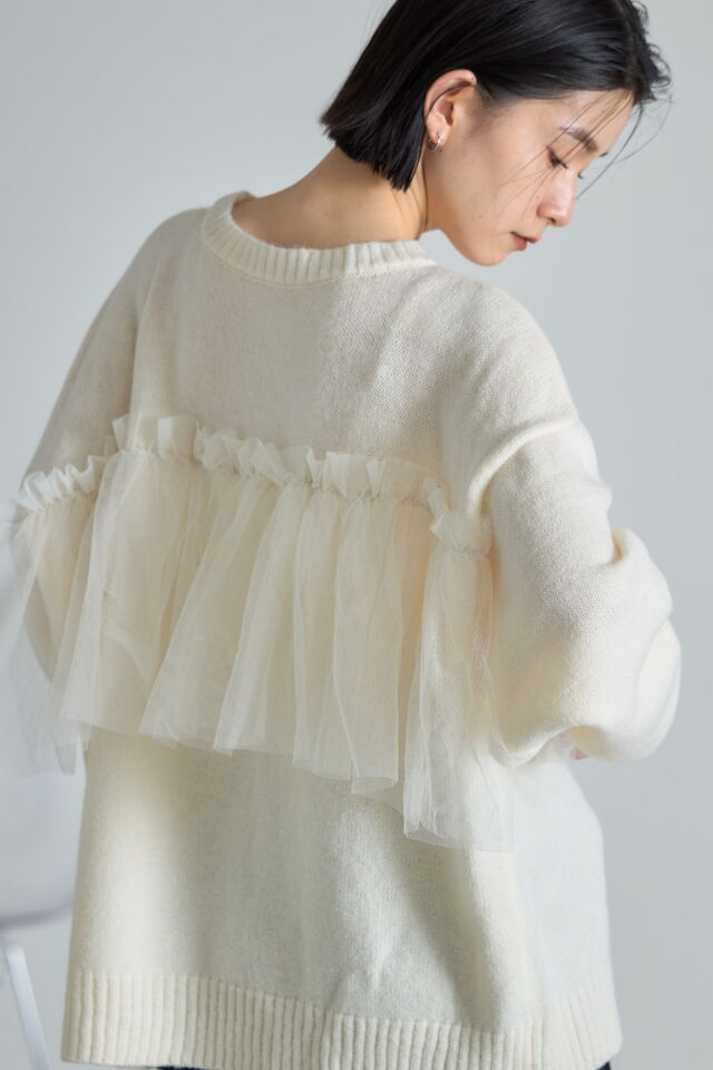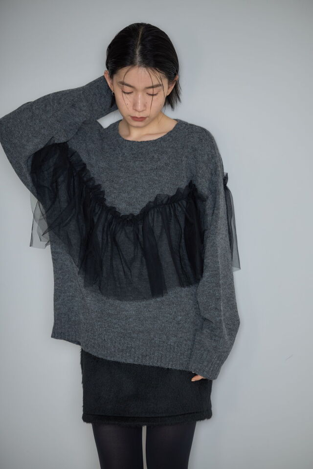 | 素材 | : | 本体/アクリル45% ポリエステル30% ナイロン25% チュール/ポリエステル100% (中国製・伸縮性あり・透け感なし・裏地なし) |
