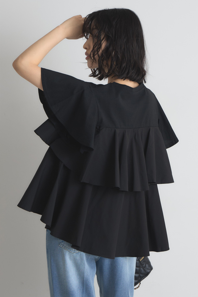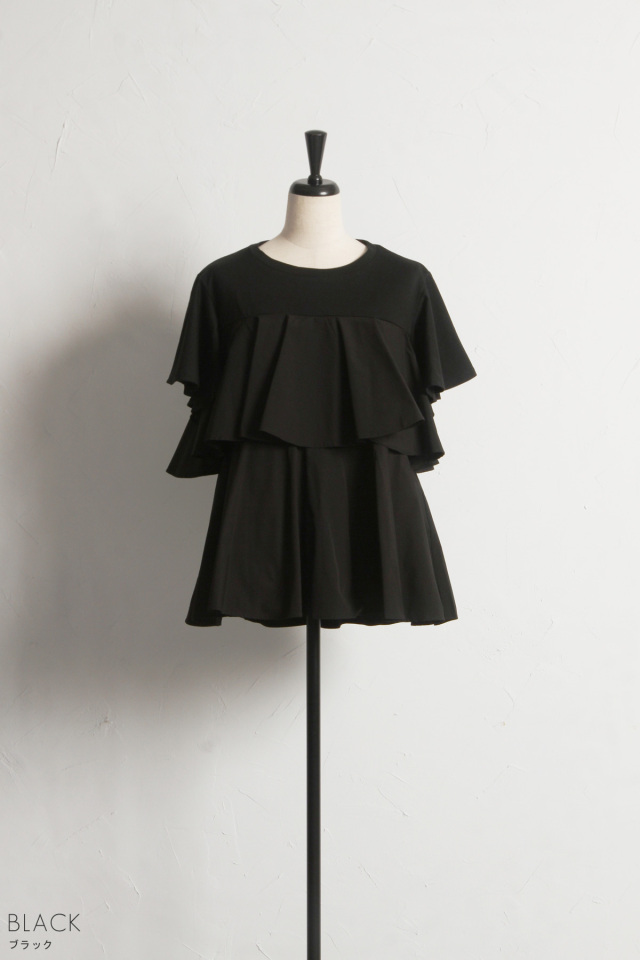 商品タグの記載サイズ:M 総丈/約63cm 肩幅/約39cm バスト/約100cm 袖丈/約18cm |
