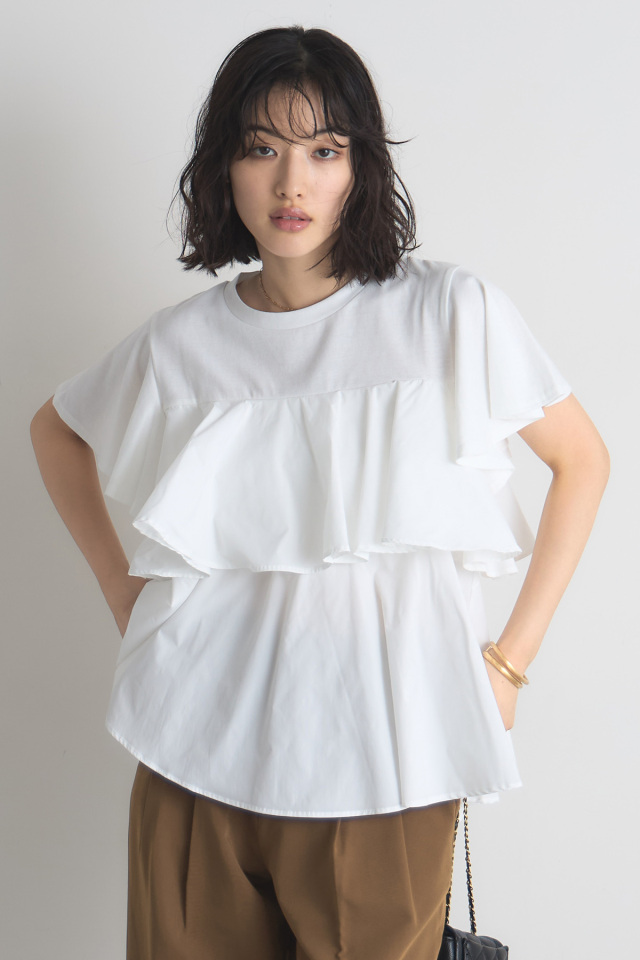 | 素材 | : | ニット部分/ポリエステル65% 綿35% 別布部分/ポリエステル100% (中国製・伸縮あり・透け感なし・裏地なし) |