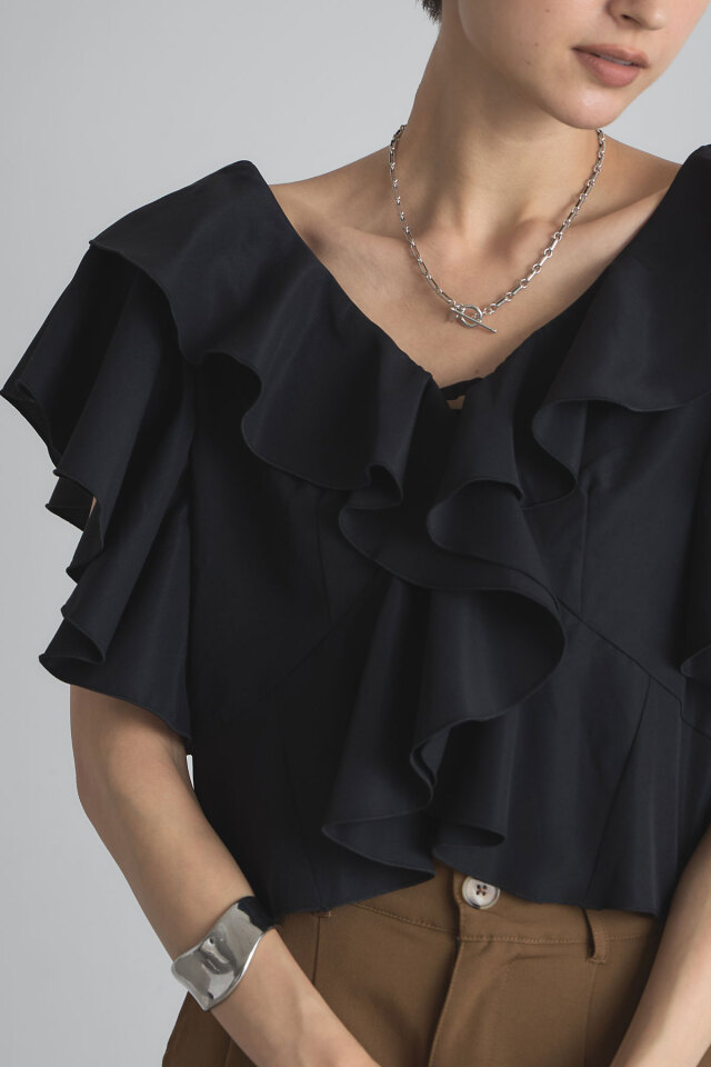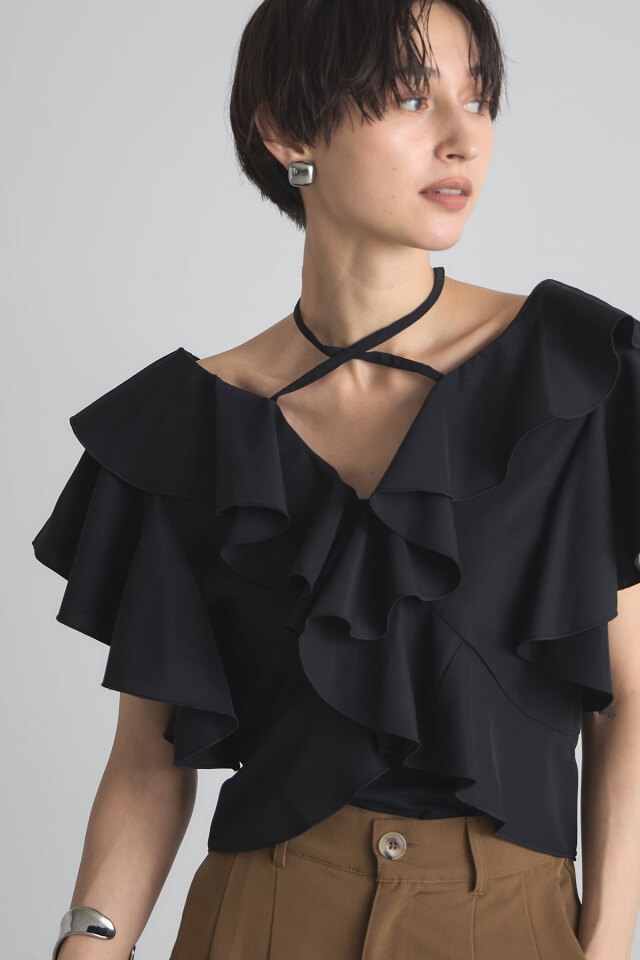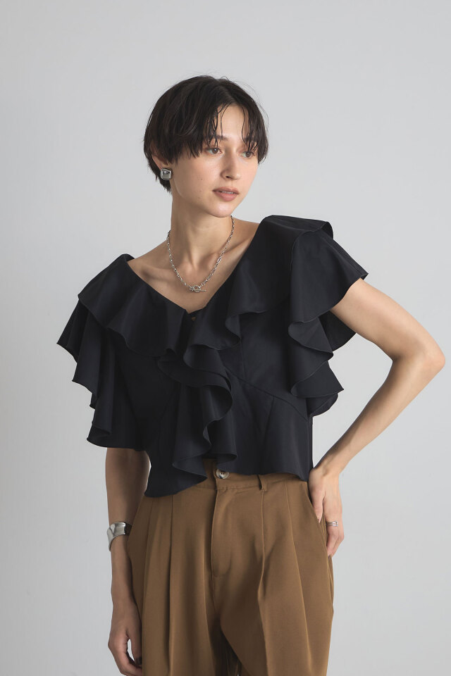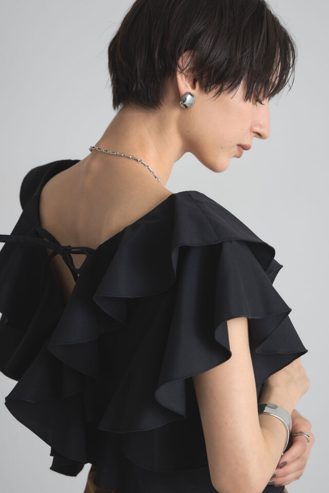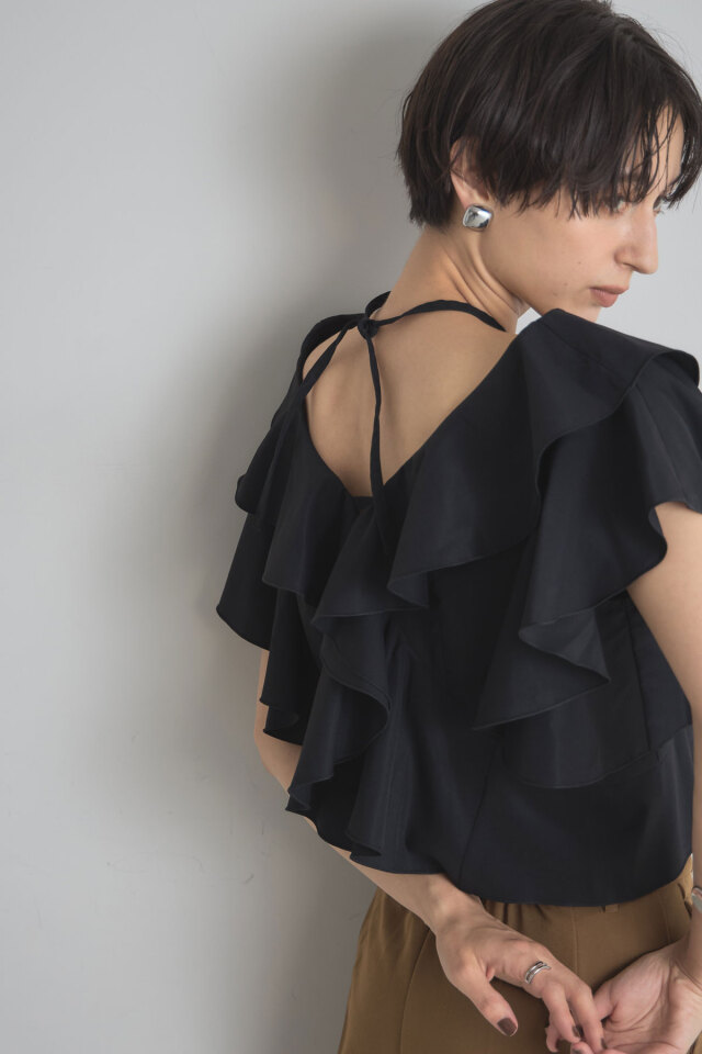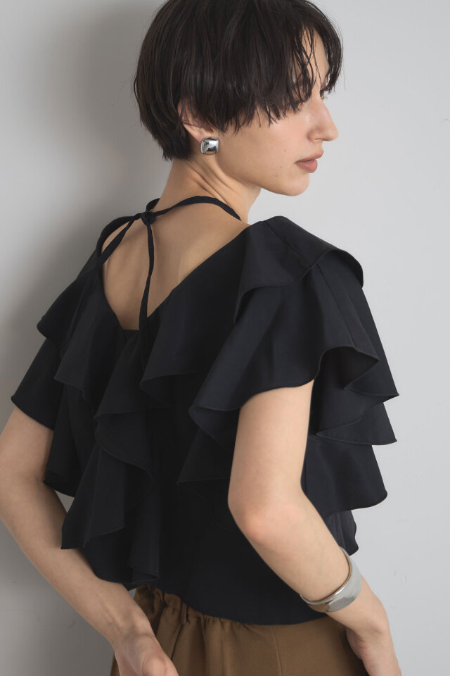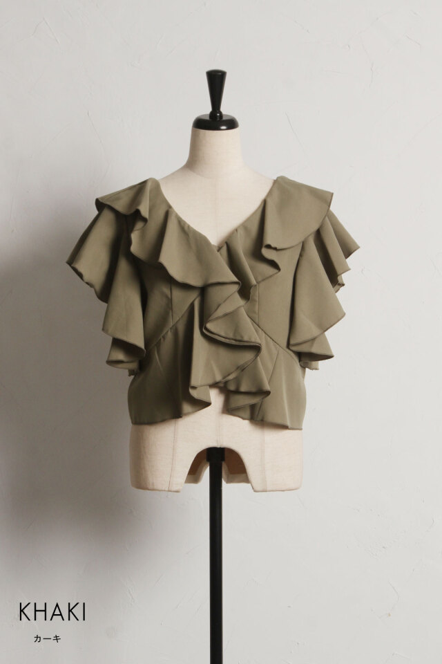 : | 商品タグの記載サイズ:M 総丈/約19cm バスト/約93cm 肩幅/約36cm 袖フリル丈/約15cm |