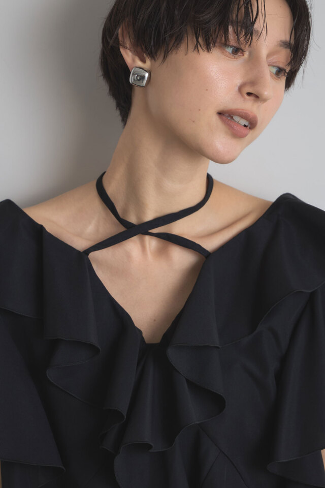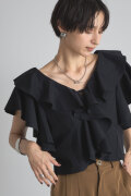 商品タグの記載サイズ:M 総丈/約19cm バスト/約93cm 肩幅/約36cm 袖フリル丈/約15cm |