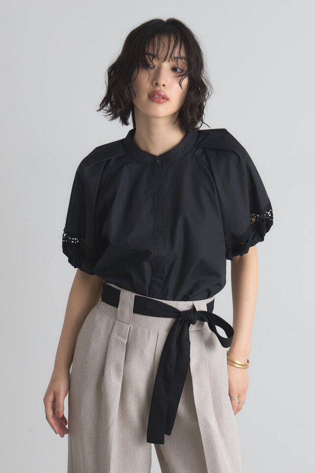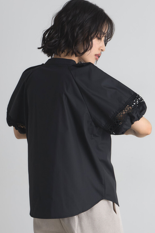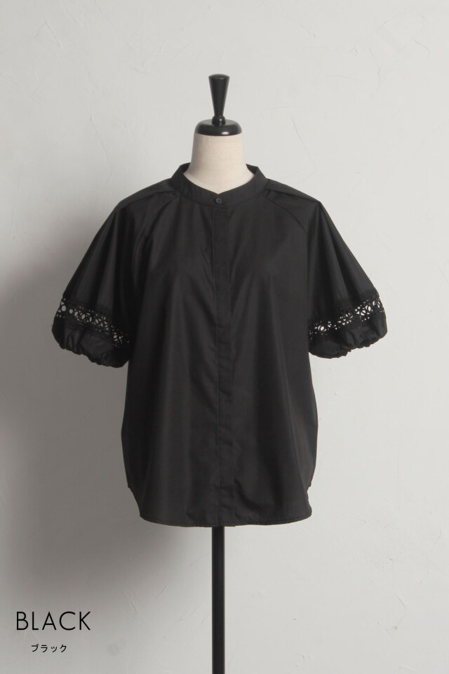 本体/ポリエステル85% 綿15% レース部分/綿100% (中国製・伸縮性なし・透け感なし・裏地なし) |