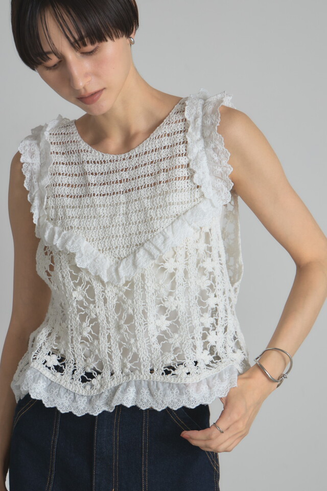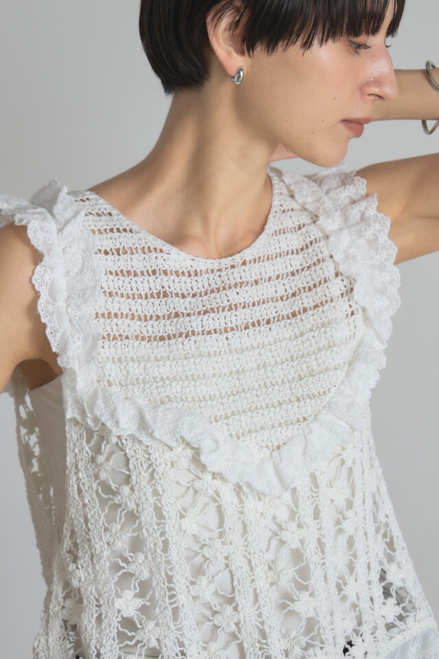 | 素材 | 本体/綿92% ナイロン8% 別布部分/綿56% レーヨン39% セルロース5% ししゅう糸/綿100% (中国製・伸縮あり・透け感あり・裏地なし) |