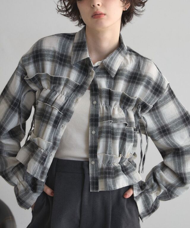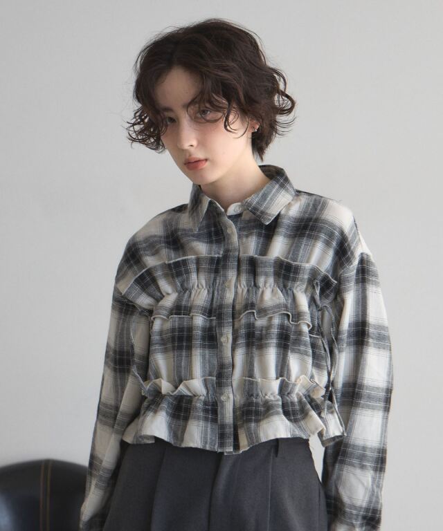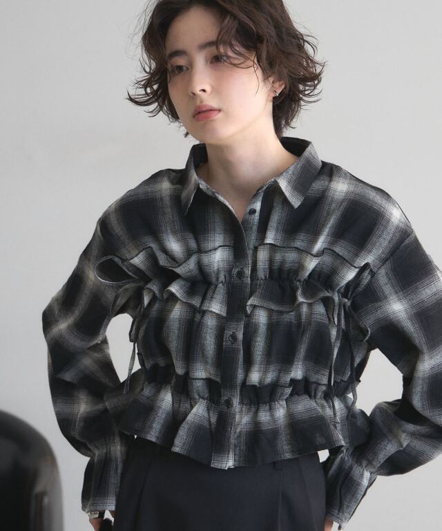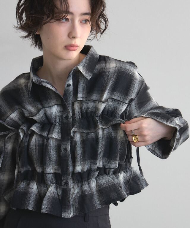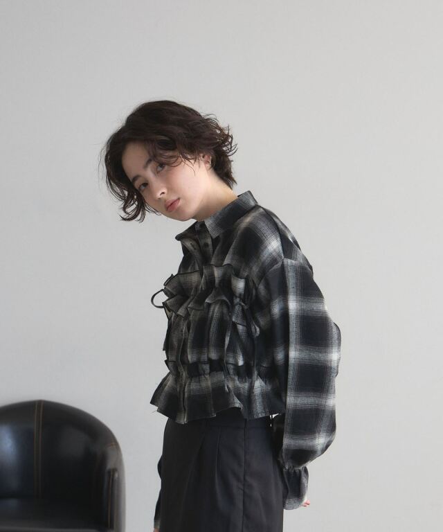 | 商品説明 | : | 秋冬映えするチェックフリルシャツ あたたかみのある起毛素材にチェック柄をのせた、シーズンムード高まるフリルシャツ。 胸元にあしらったビッグフリルとリボンが甘さをプラスし、 デニム合わせでカジュアルに、スカート合わせでフェミニンにと幅広く着こなせます。 一枚で主役級の存在感を放ちながら、羽織りとしても使える万能アイテムです。 |
