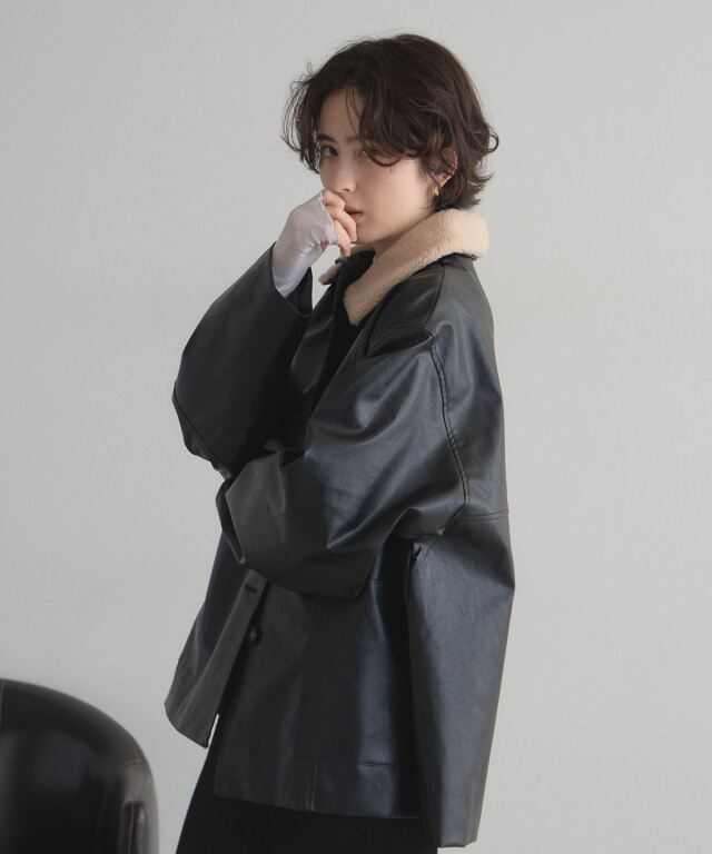 | 商品説明 | : | 存在感のあるボア襟が目を惹くフェイクレザージャケット マニッシュな雰囲気の中にボアの柔らかさが加わり、バランスの取れたデザインに。 オーバーサイズシルエットで、厚手のニットやスウェットともレイヤードしやすい。 羽織るだけでコーデを今っぽく格上げしてくれる存在感。 デイリーにもお出かけにも活躍する、冬の主役級アウターです。 |
