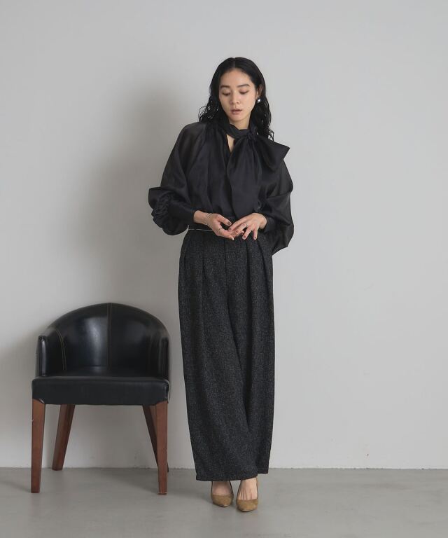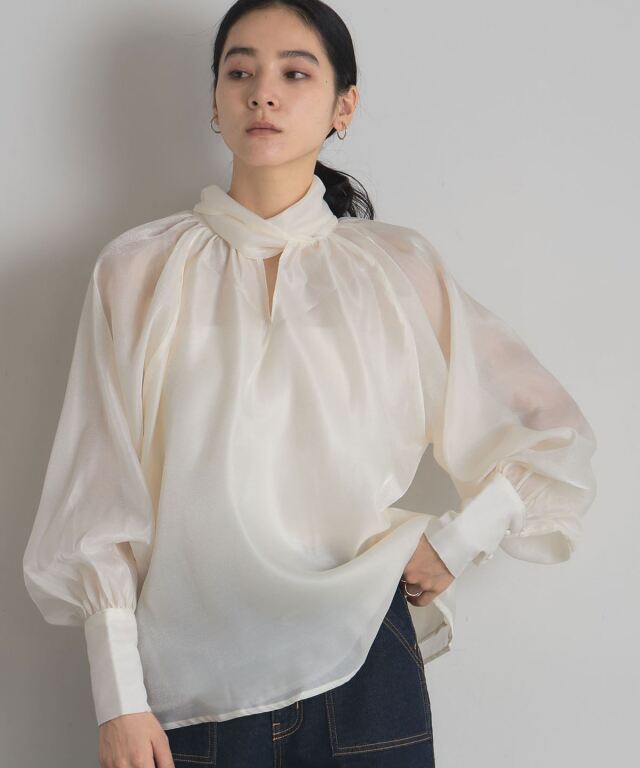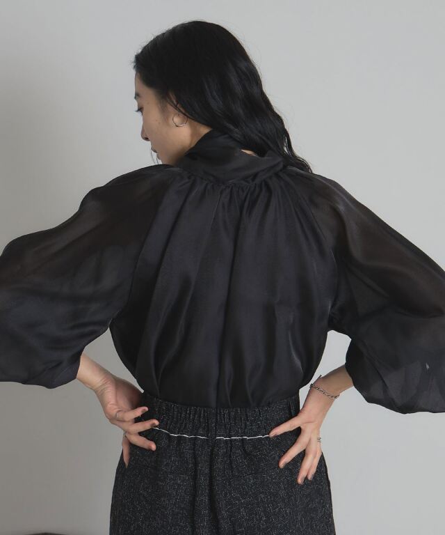 2WAYで楽しむ着映えブラウス。 ふんわりとしたボリュームスリーブが印象的な2WAYブラウス。 前後どちらでも着られるデザインで、リボンをフロントにすれば甘めに、後ろに回せば大人っぽく着こなせます。 軽やかな素材感で、オンにもオフにも取り入れやすいのが魅力。 パンツを合わせてモードに、スカートと合わせてフェミニンにと、幅広いコーディネートを楽しめる万能アイテムです。 |