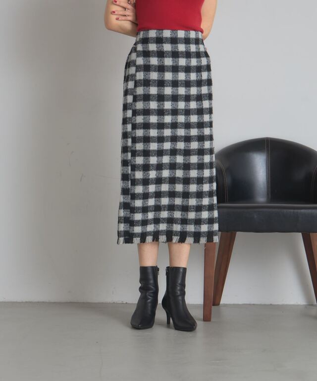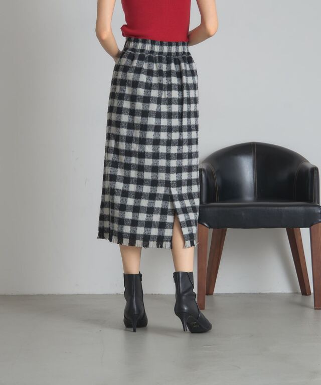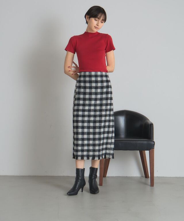| 商品説明 | : | クラシカルに艶めく、動きやすさも叶えたチェックタイトスカート 起毛感のあるシャギーツイード素材を使用した、クラシカルなチェック柄のタイトスカート。 すっきりとしたシルエットながら、後ろにスリットを入れることで足さばきが良く、快適な着心地を実現しました。 ミディ丈で上品な印象を与えつつ、ブーツやパンプスとも相性抜群。 トップスをインすればきちんと感が増し、ニットと合わせれば大人のカジュアルスタイルにも。 シーズンムードを高める一枚で、秋冬のコーディネートに華を添えます。 |