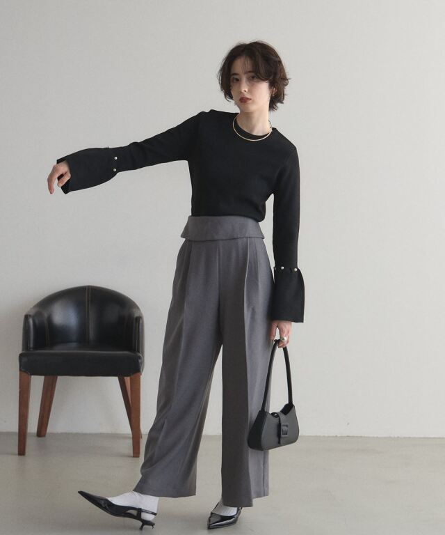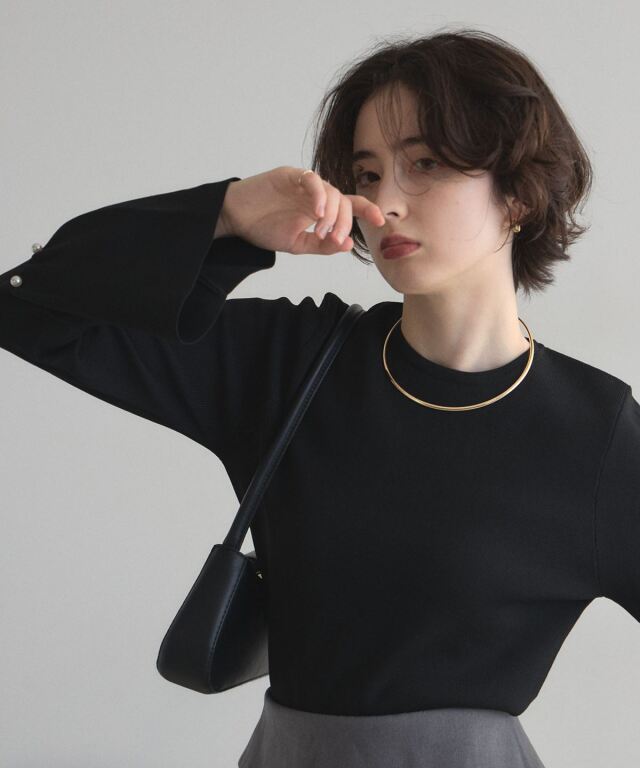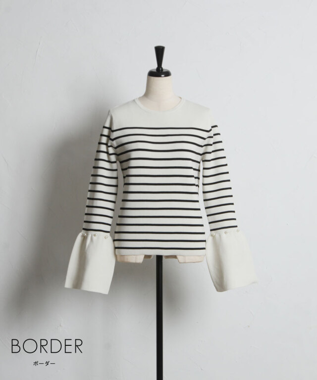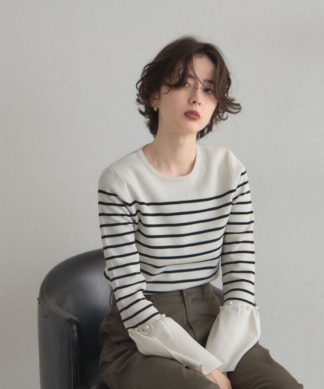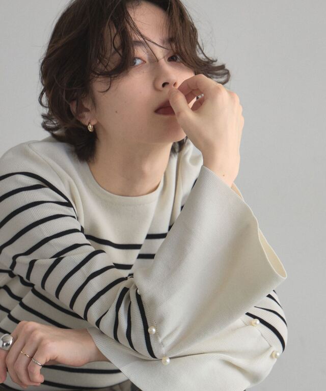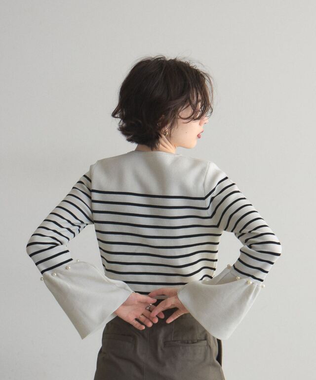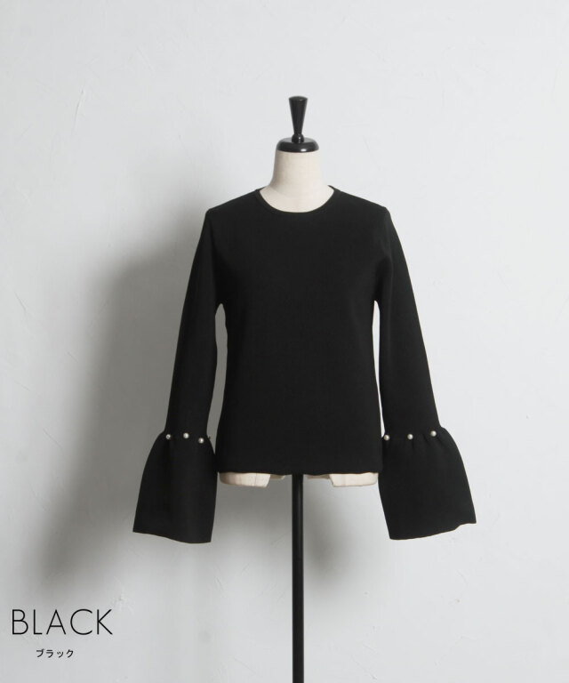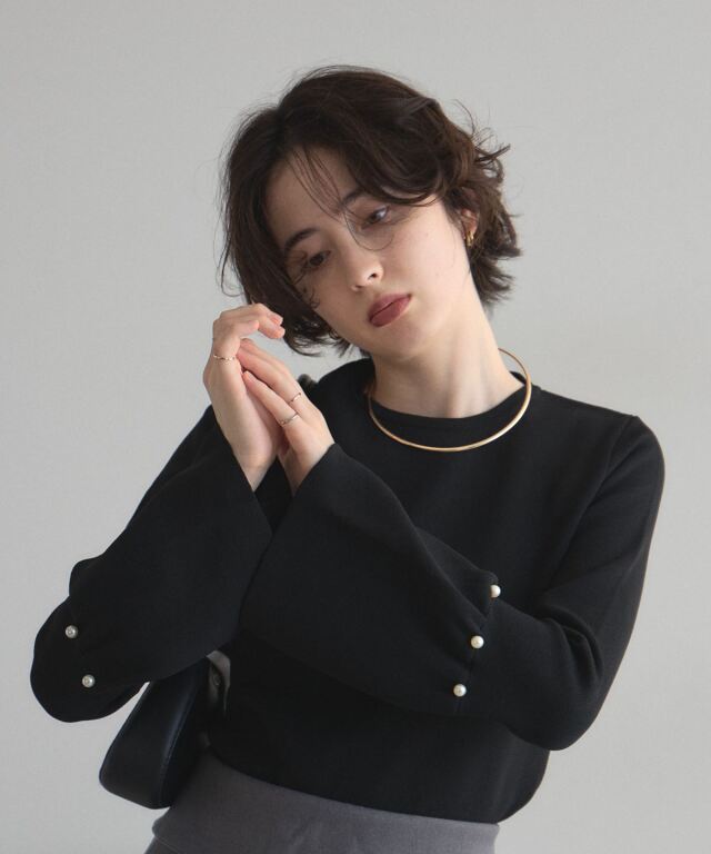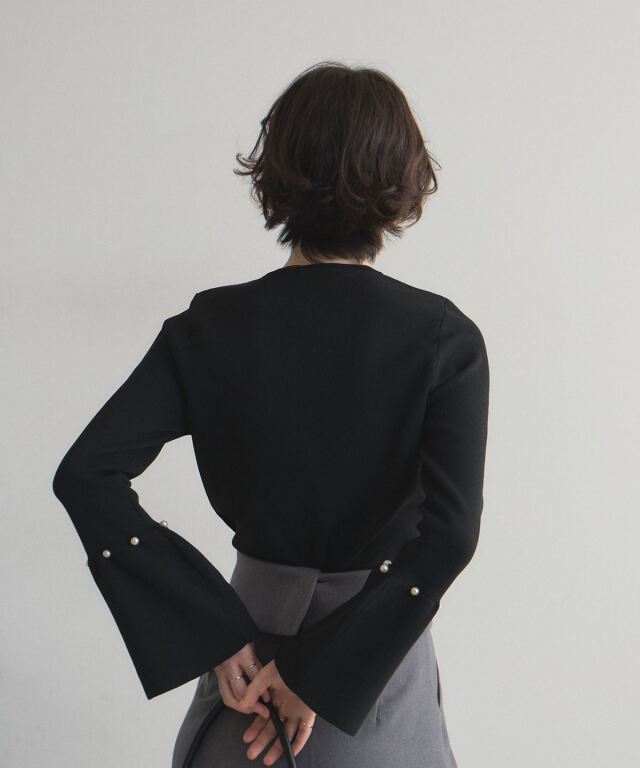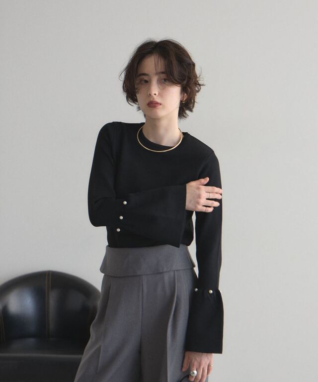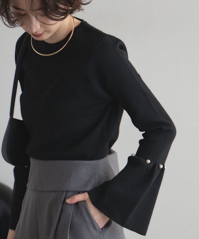 袖フレア&パールで華やぐ、大人可愛いニットトップス