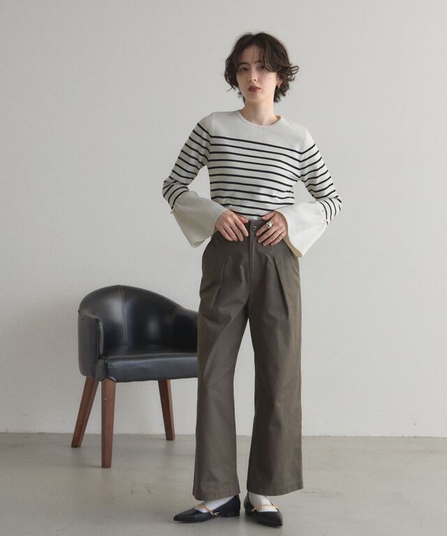 フレアスリーブが女性らしい印象を演出するニットトップス。