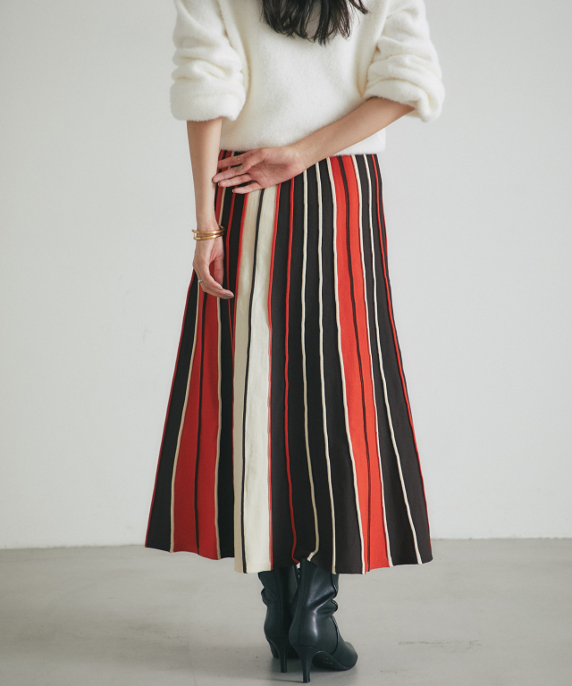 | 商品説明 | : | 視線を惹きつける、縦ラインの美シルエットスカート。 大胆なストライプ柄が目を惹くフレアスカート。 縦ラインを強調するデザインで、自然とスタイルアップが叶います。 しなやかに広がるシルエットは、歩くたびに揺れて女性らしさを演出。 ウエストはゴム仕様でストレスフリーな穿き心地ながら、見た目はきちんと感も◎。 カラーによって雰囲気が変わるので、シンプルなトップスと合わせるだけでコーデが完成します。 シンプルなだけじゃ物足りない、そんな大人のワードローブに映える一枚です。 |