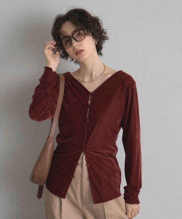 | 商品説明 | : | シアーな透け感とベロアの艶で、上品に魅せる大人カーディガン ほんのり透けるシアー素材と光沢のあるベロアが上品に調和したカーディガン。 ニュアンス釦がさりげないアクセントになり、こなれ感をプラス。 Vネックラインが顔まわりをすっきり見せ、大人らしい印象に。 羽織るだけでスタイリングに華やぎを添え、インナー次第で表情を変えられます。 デイリーからお出かけまで幅広く活躍する、大人フェミニンの一枚です。 |