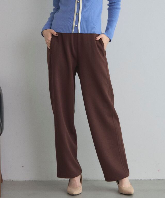| 商品説明 | : | 楽なのに、美しく、忙しい毎日に寄り添うストレートパンツ すっきりとしたストレートシルエットが脚をまっすぐ見せる、スリムイージーパンツ。 ウエストはゴム仕様で快適な穿き心地ながら、きれいめな素材感で上品な印象に。 センタープレスを効かせたデザインが脚長効果を高め、スタイルアップを叶えます。 オンにもオフにも使える万能アイテムで、ブラウスやジャケットを合わせれば通勤スタイルに、 スウェットやニットでカジュアルダウンも◎ |
