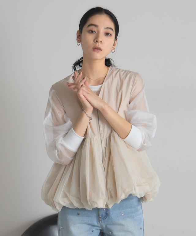 | 素材 | : | 表地/ナイロン100% 裏地/ポリエステル100% その他/ポリエステル100% (中国製・伸縮性なし・透け感あり・裏地あり) |