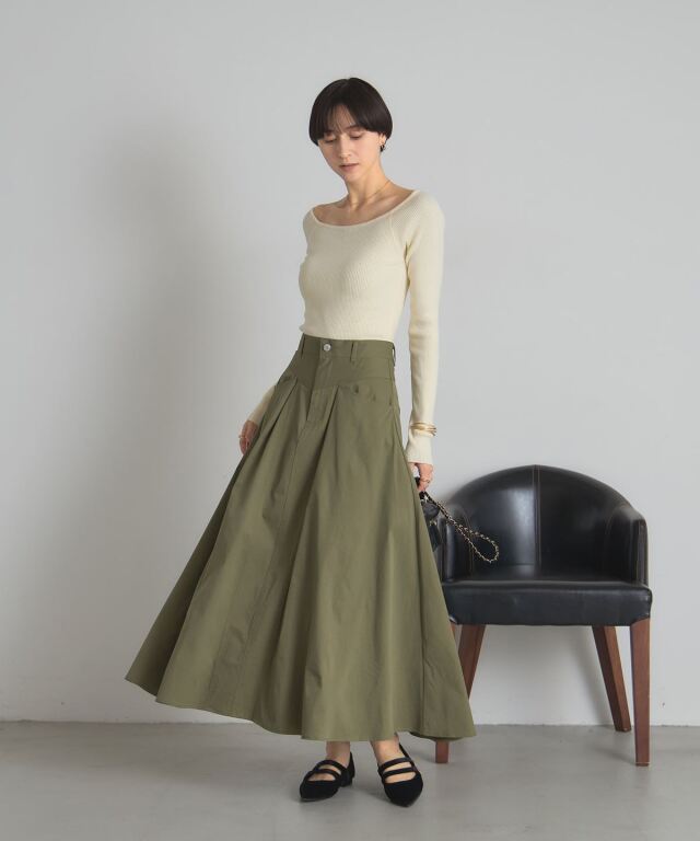 | 商品説明 | : | 立体タックで魅せる、気品漂うフレアスカート ほどよいハリ感と耐久性のあるミリタリーツイル素材を使用したフレアスカート。 フロントに施された深めのタックが立体的なシルエットを生み出し、動くたびに美しいドレープを演出します。 ウエスト周りはすっきりと仕上げられ、トップスをインしてもバランス良く着こなせるデザイン。 カジュアルなカットソーからきれいめなブラウスまで、幅広いアイテムと相性抜群。 シーズンレスで活躍し、大人のワードローブに欠かせない一枚です。 |