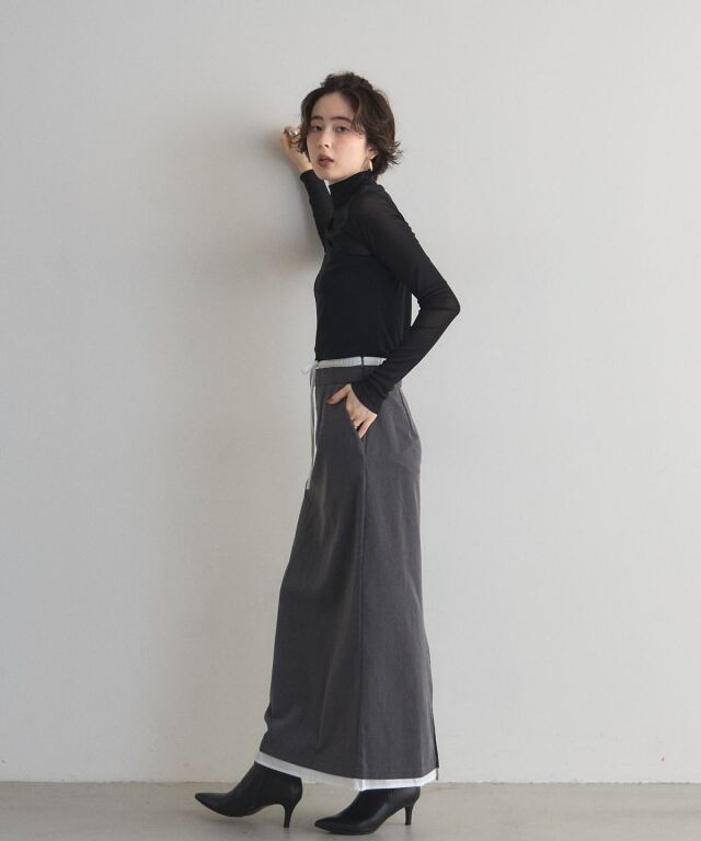| 素材 | 本体/ポリエステル74% レーヨン20% ポリウレタン6% その他/ポリエステル75% 綿21% ポリウレタン4% (中国製・伸縮性:なし・透け感:なし・裏地:なし) |