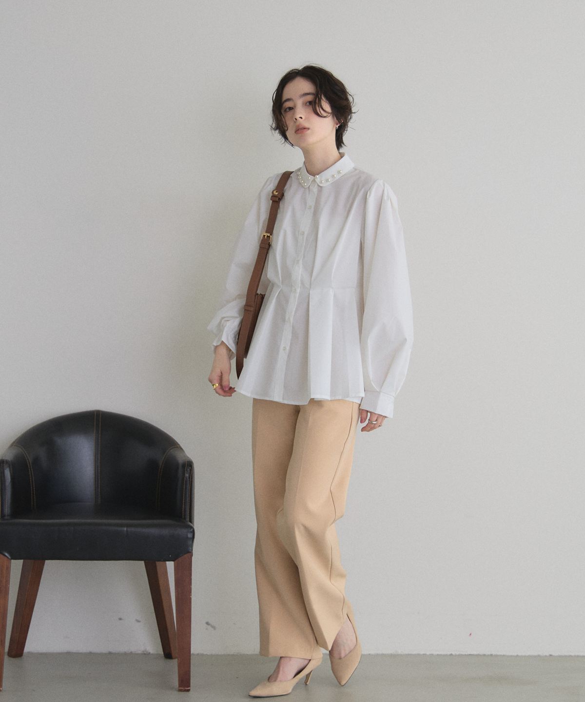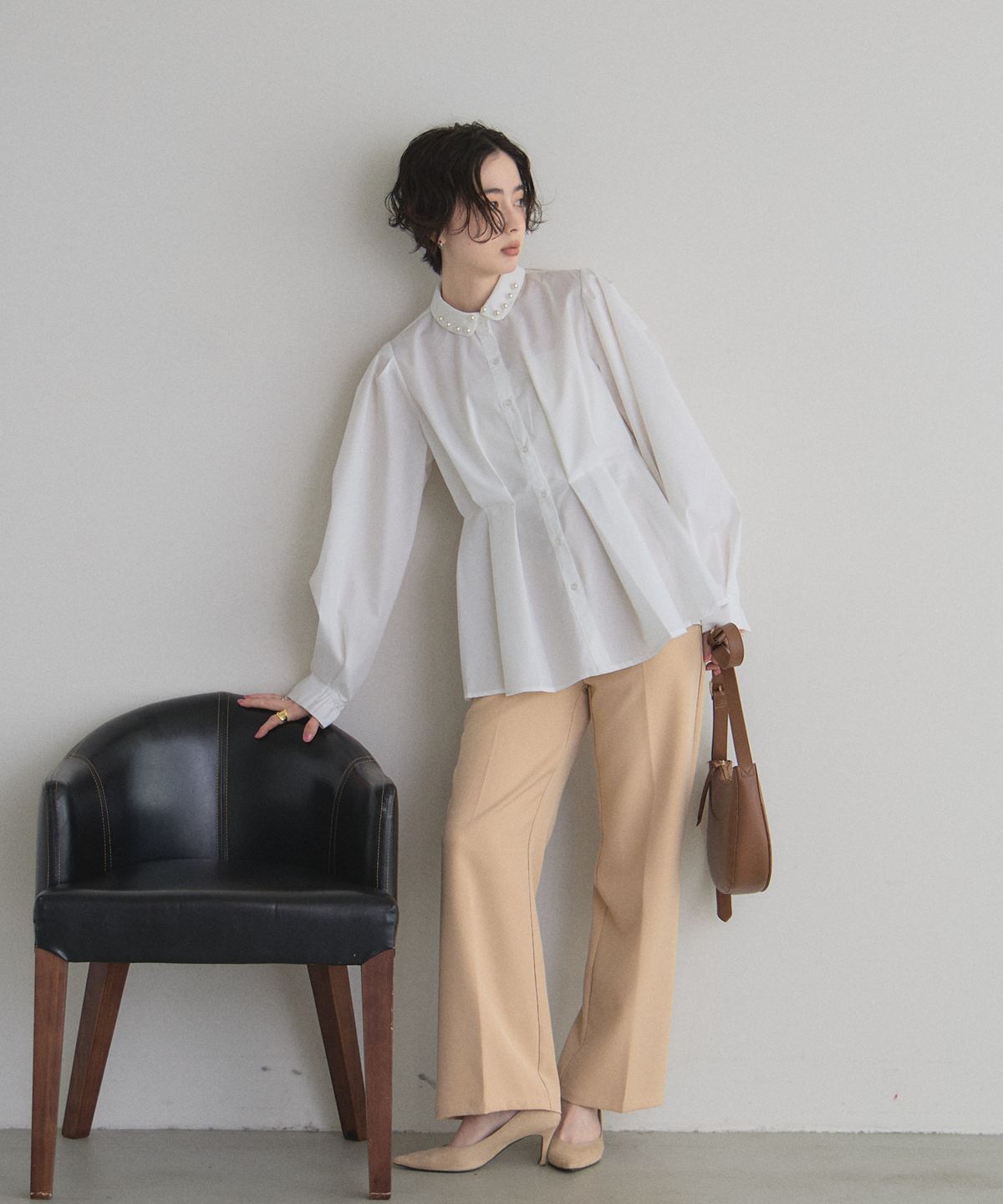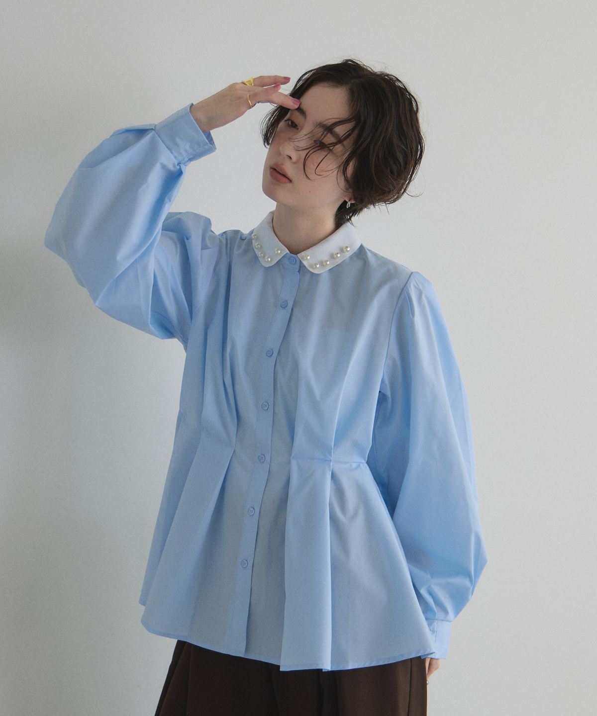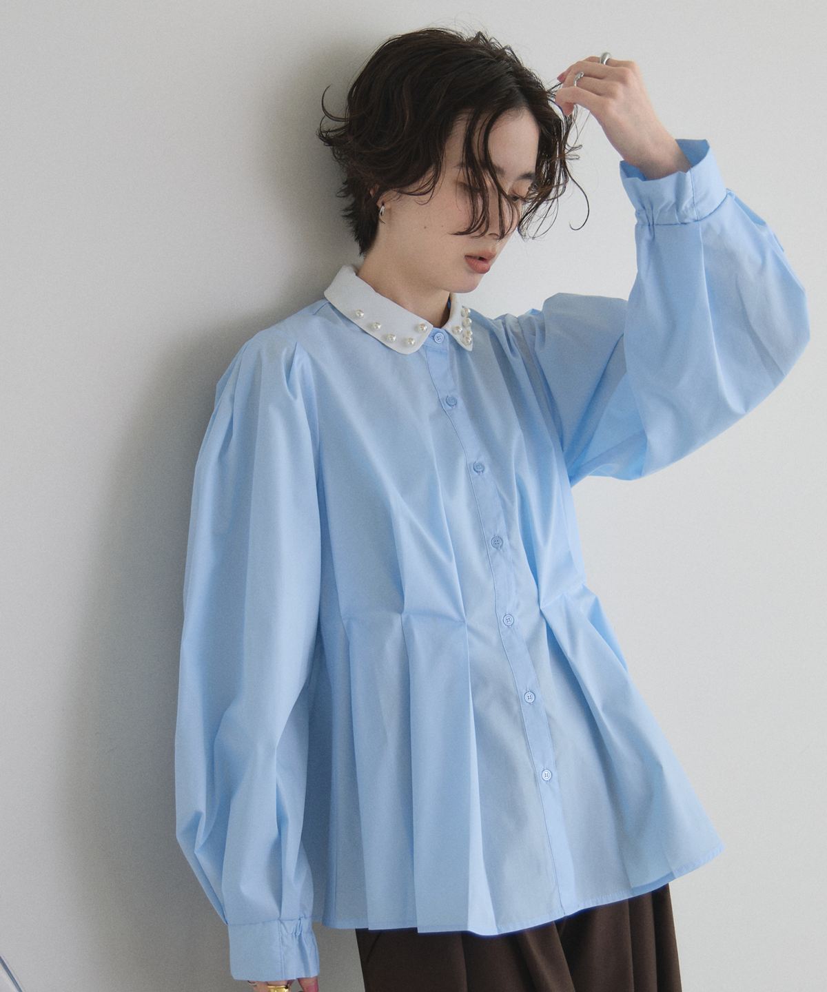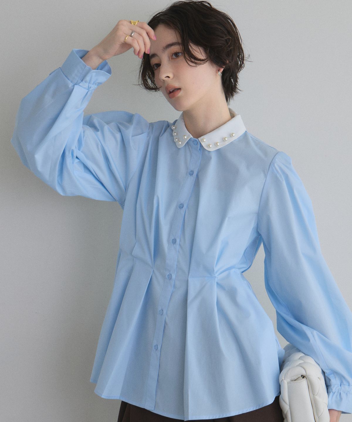 | 商品説明 | : | 気分で変える、装いの表情。 襟付きでもシンプルでも品よく決まる華やかブラウス 付け襟を外せばミニマル、付ければ華やかに印象チェンジできる万能ブラウス。 ウエストを立体的に見せるタックで、きちんと感とスタイルアップを両取り♡ オフィス、スカート合わせでフェミニンにも対応。 1枚で2通りの雰囲気を楽しめる、頼れる着回しトップスです。 |