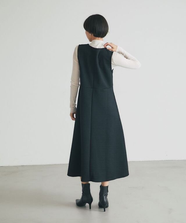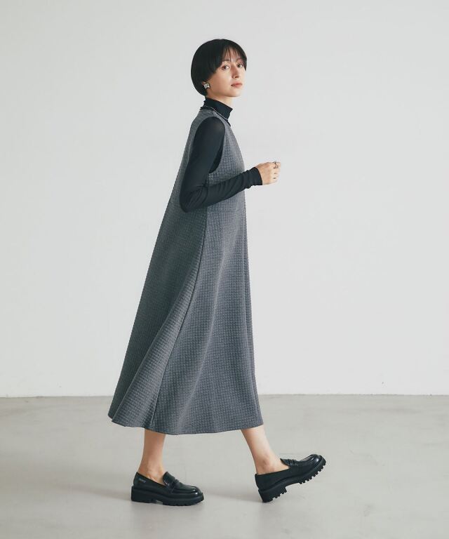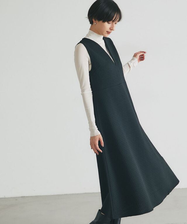 | 商品説明 | : | クラシカルな表情で魅せる、大人のジャンパースカート。 キルト素材を使用したジャンパースカート。 程よいハリ感と立体的な生地が柔らかい印象を演出します。 ウエストラインのデザインでスタイルアップ効果もあり、 インナー次第でカジュアルにもきれいめにも着こなせる万能アイテム。 1枚でコーディネートが完成する、大人のジャンパースカートです。 |