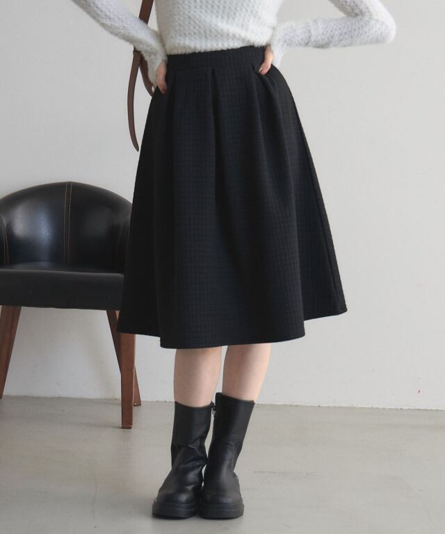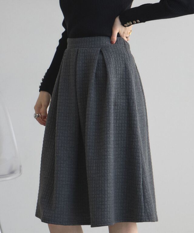 | 商品説明 | : | 立体感で魅せる、上品フェミニンなタックキルトスカート 程よくハリのあるキルト素材が、タックの美しいシルエットをキープ。 ウエストラインをすっきり見せながら、動くたびに優雅な揺れを演出。 シンプルなトップスと合わせるだけで、大人フェミニンな着こなしに。 季節を問わず楽しめる、万能スカートです。 |