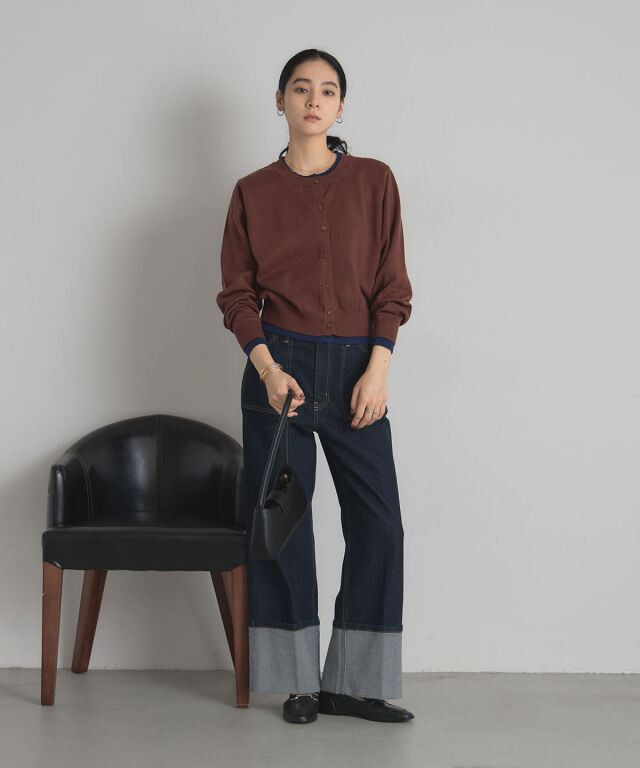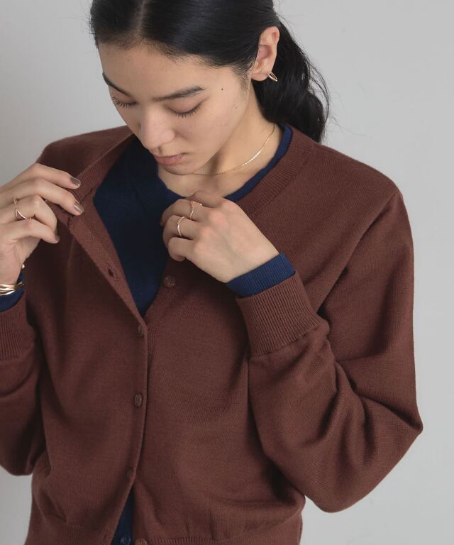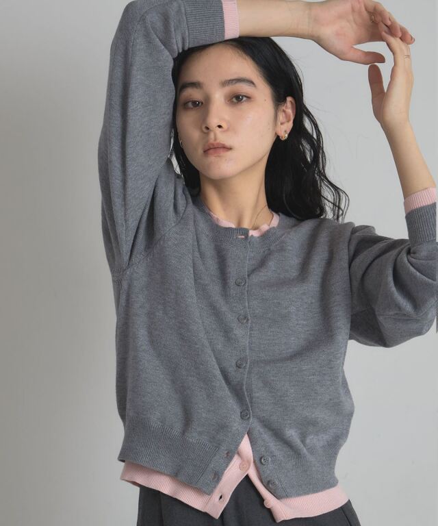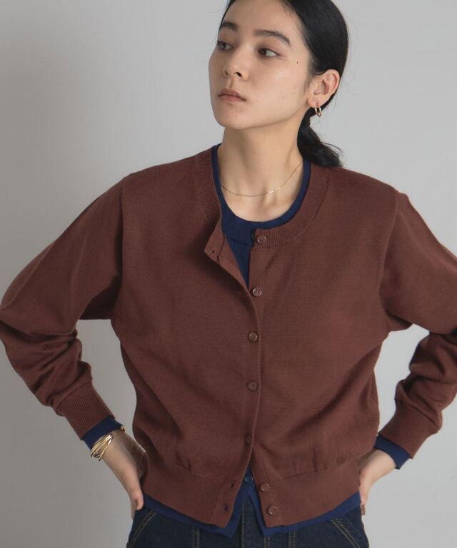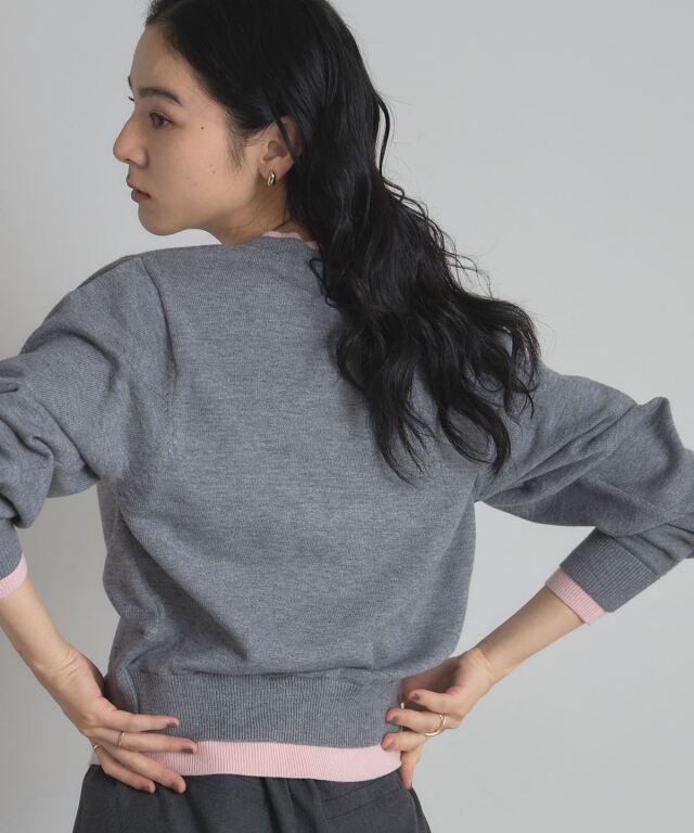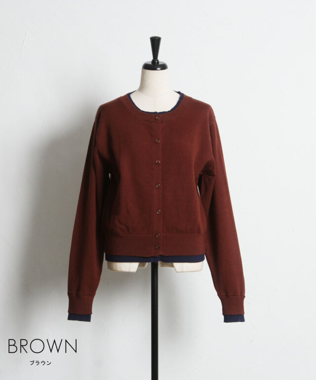 配色になっているネイビー部分は襟ぐりと袖口と前身頃に生地があるので、もたつきがなく着用できました。生地もチクチク全くせず、しっとりしている生地で、素肌にも着用できそうな感じでとても気に入りました。寒くなってきたのですぐに活躍するアイテムだと思います。購入して良かったです。