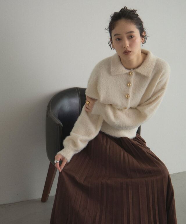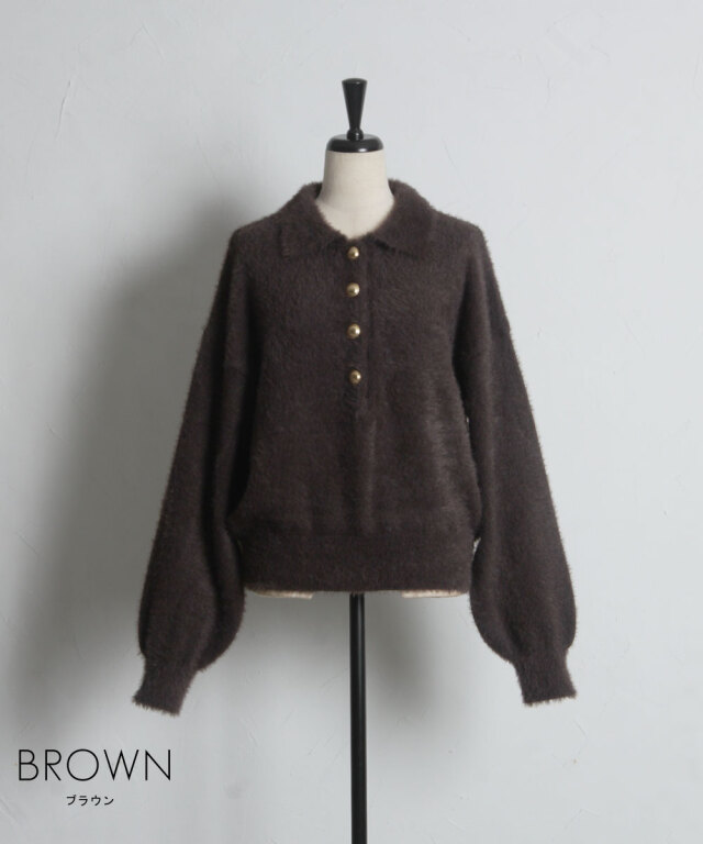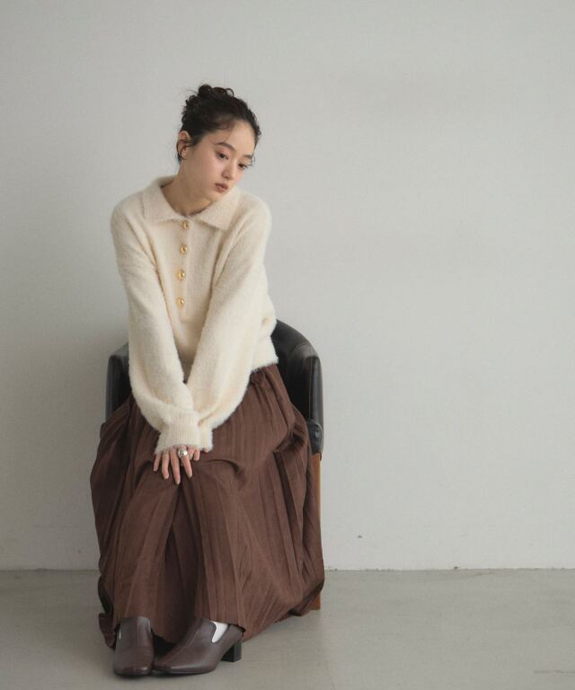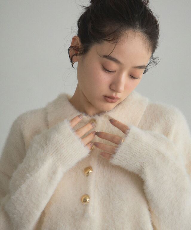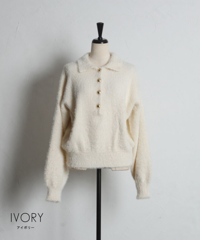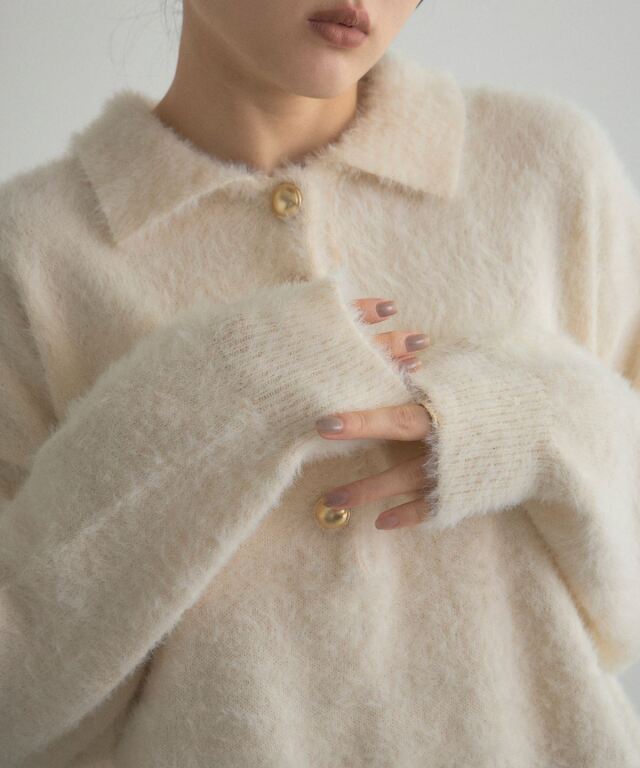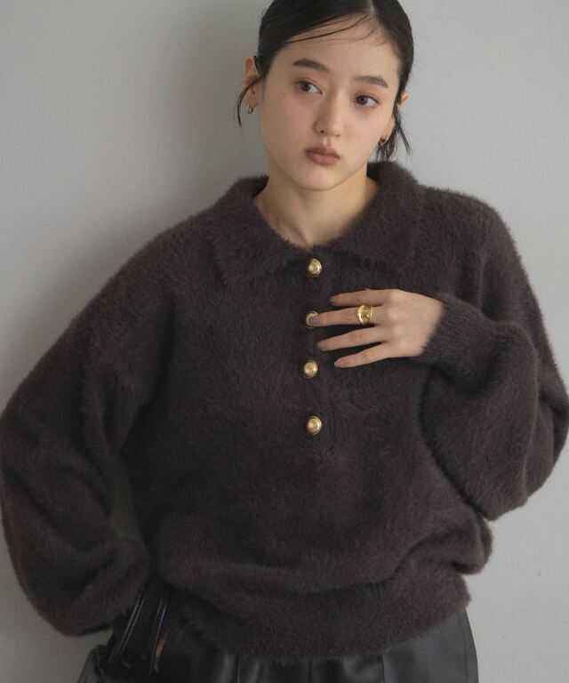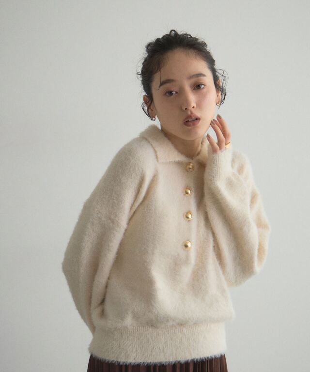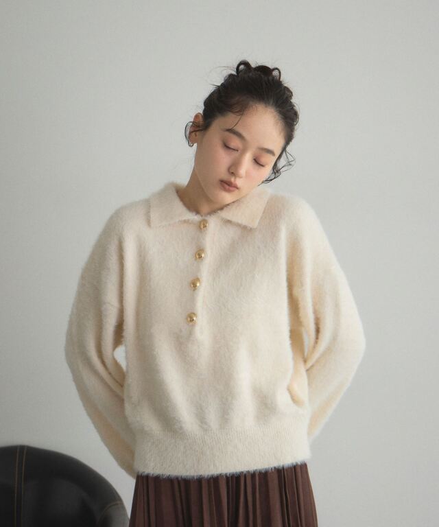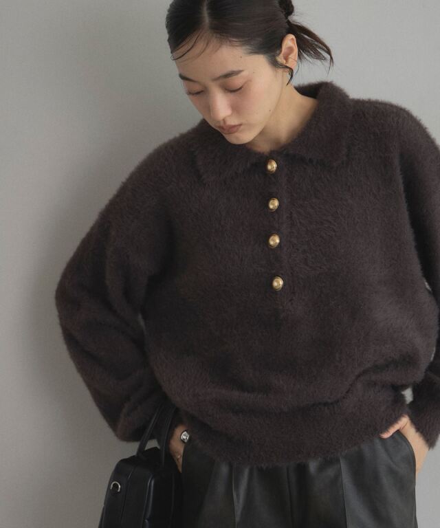 | 商品説明 | : | ふんわりフェザーとゴールドボタンの輝きで、品よく華やぐ一枚 ふわっとしたフェザー素材がシーズンムードを高めるポロニット。 ゴールドボタンがアクセントになり、上品な存在感をプラス。 ゆるっとシルエットで、いろんなボトムスに合うバランスに仕上げました。 デニムでカジュアルにも、スカートでフェミニンにもマッチ。 一枚で着映えする、大人の冬スタイルにぴったりなアイテムです。 |