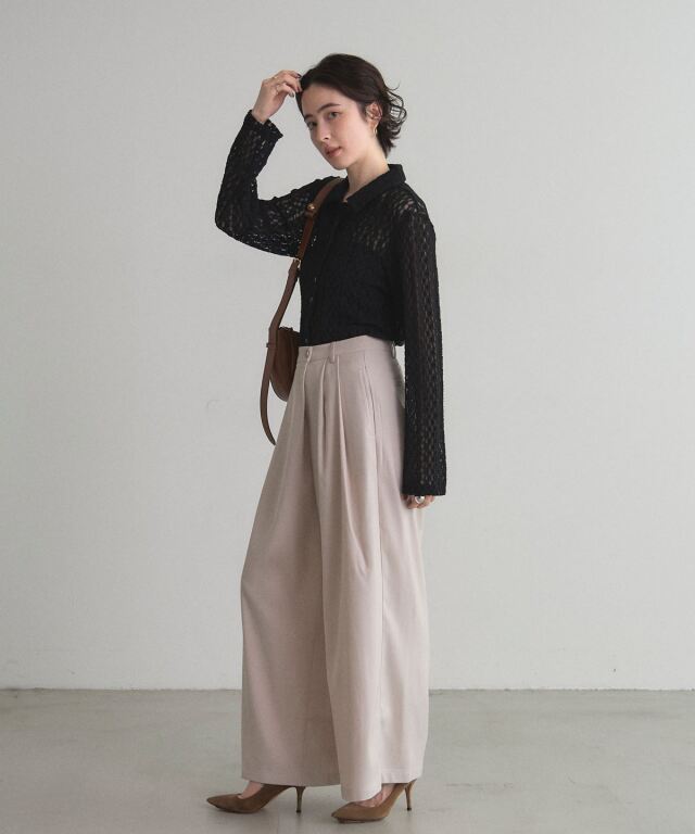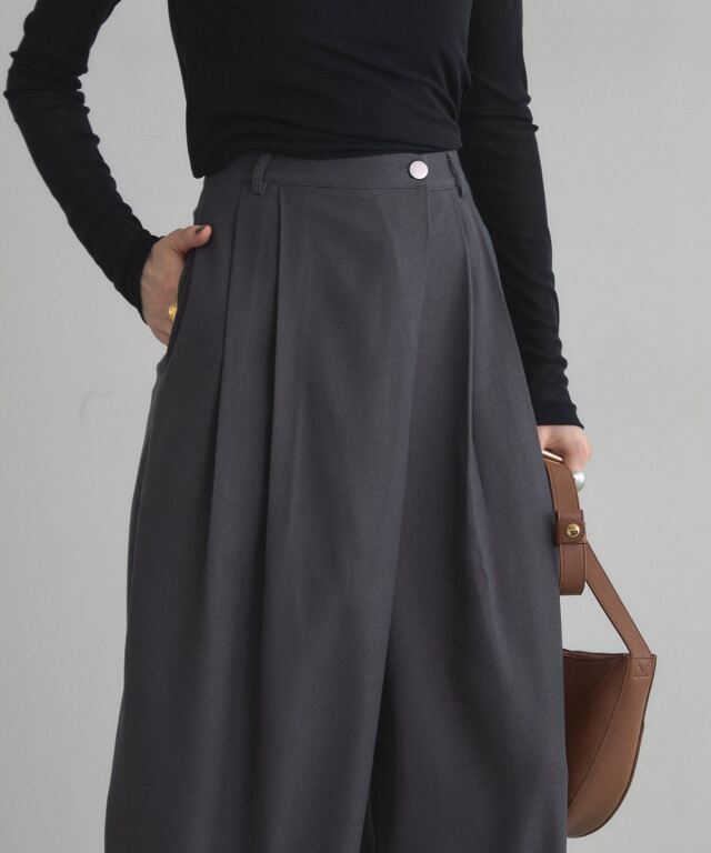 | 商品説明 | : | タックとラップで立体感を表現する、万能美シルエットワイドパンツ フロントのタックとラップデザインが立体感を生み、脚長&美ラインを叶えるワイドパンツ。 程よい落ち感のある素材で上品さを演出し、オフィススタイルやきれいめコーデにも最適。 ウエストはすっきり見えるデザインで、トップスをインしたスタイルも美しく決まります。 スニーカーでカジュアルダウン、ヒールでフェミニンにと幅広い着こなしが可能。 |