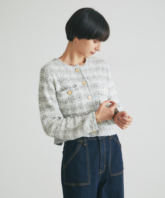 | 商品説明 | : | 上品なツイード編みで魅せる、ポケット付きカーディガン 表情のあるツイード編みが、コーデに華やかさと高級感をプラス。 程よくゆとりのあるシルエットで、羽織るだけでこなれた印象に。 ポケット付きで実用性も兼ね備えた秋冬に1枚あると嬉しいカーディガンです。 |