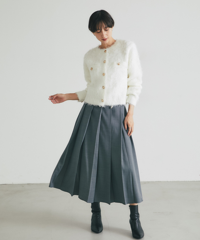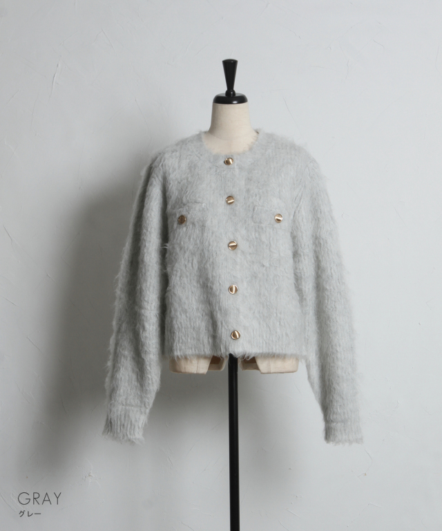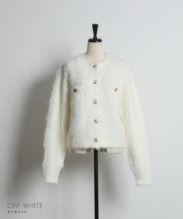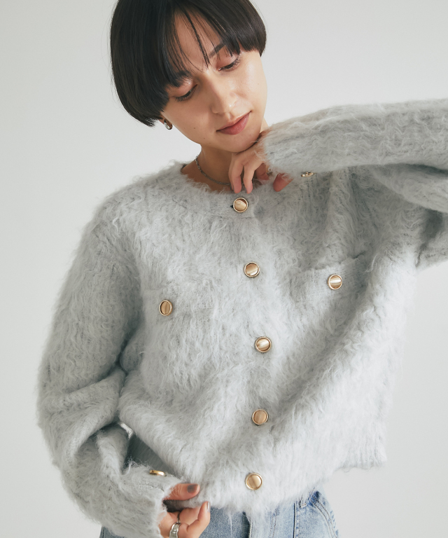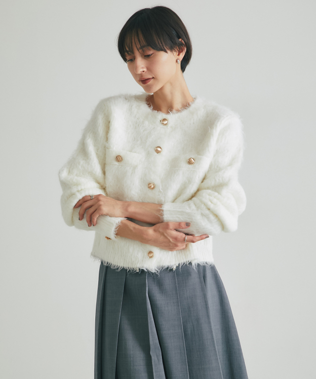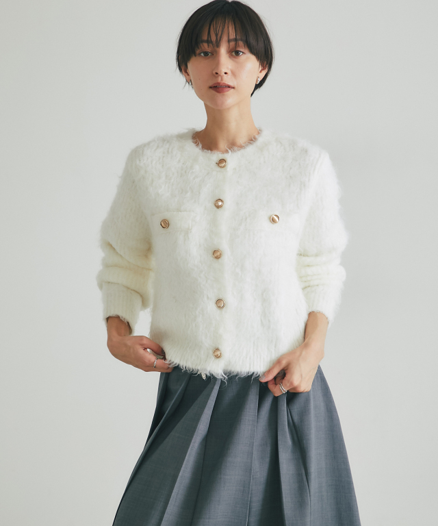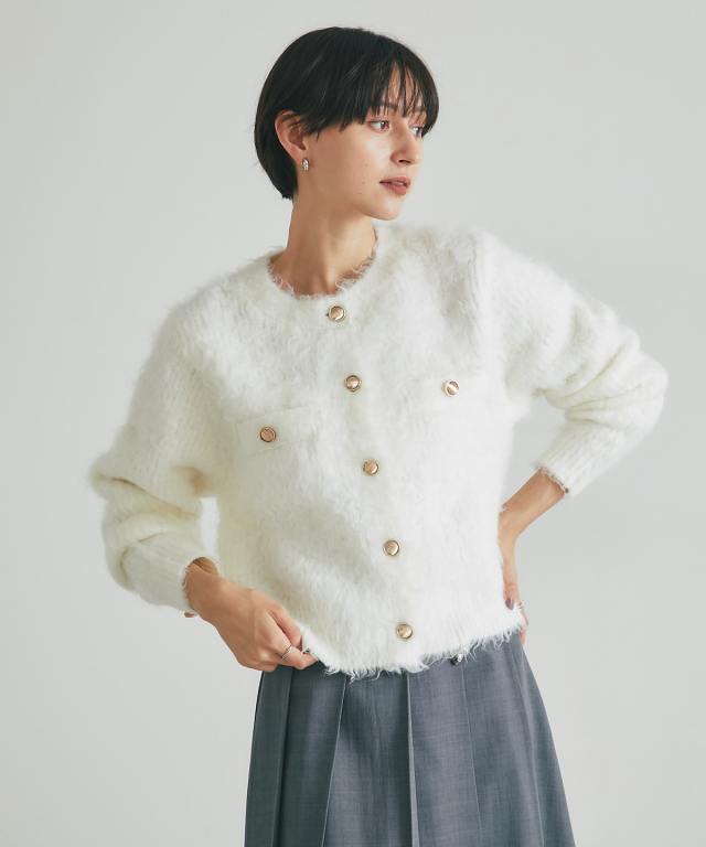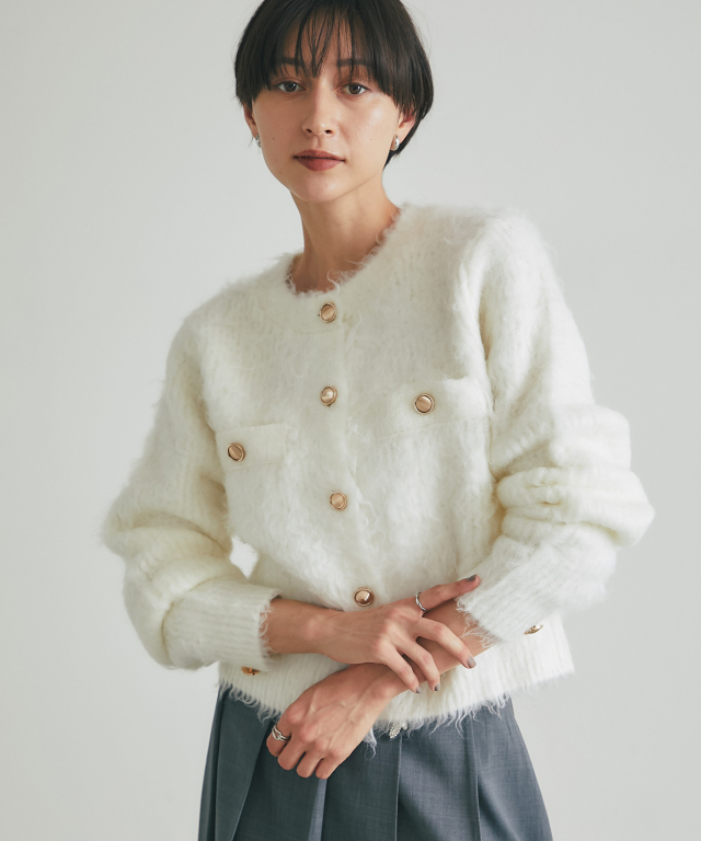 | 商品説明 | : | 上質な暖かさと華やかさを添える、アルパカタッチカーデ。 ウール混でアルパカのような柔らかさを再現した、あたたかみのあるカーディガン。 金釦がアクセントとなり、上品で華やかな印象をプラスします。 ゆとりのあるシルエットで重ね着もしやすく、デイリーコーデからオフィススタイルまで幅広く活躍。 シンプルなコーディネートにさっと羽織るだけで、上品な印象を演出できます。 |