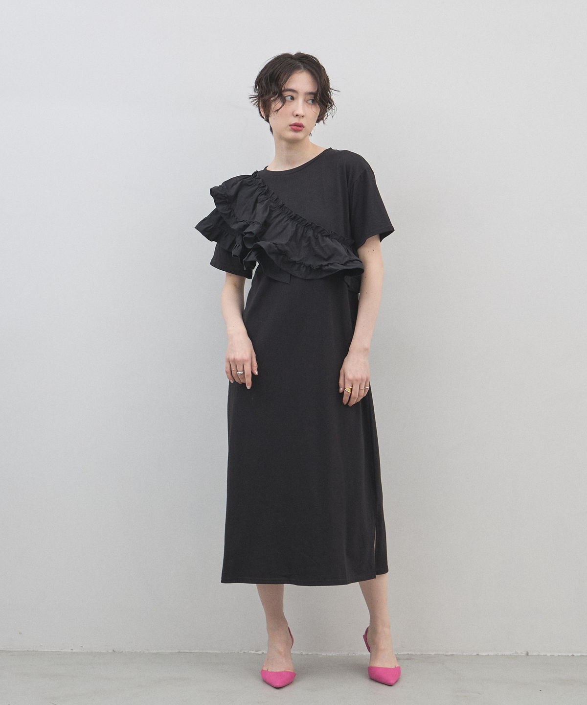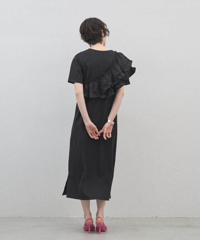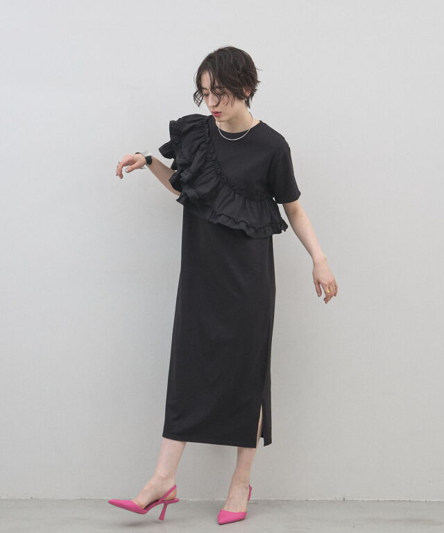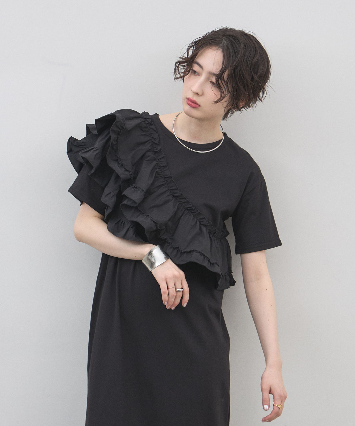 | 商品説明 | : | 斜めに流れるフリルが主役。リラクシーな着心地とモードを両立した、着映えワンピース。 柔らかなカットソー素材を使用した、ストレスフリーな着心地のマキシ丈ワンピース。 最大の特徴は、右肩から胸元にかけて大胆にあしらわれたアシンメトリーなフリルデザインです。 立体的なフリルが視線を惹きつけ、シンプルなワンピースにドラマティックな躍動感と華やかさをプラスします。 すとんと落ちるストレートシルエットで、体のラインを拾わずスタイルを美しくカバー。 一枚でスタイリングが完成するのはもちろん、鮮やかなカラーパンプスを合わせて、 遊び心のある大人のモノトーンスタイルを楽しむのもおすすめです。 日常のカジュアルを、一気にモードへ引き上げる主役級の一着です。 |