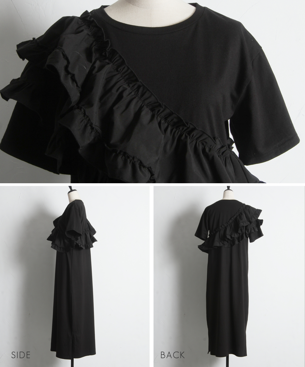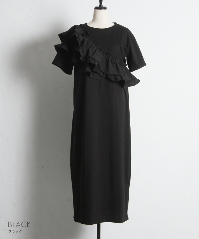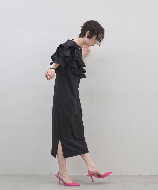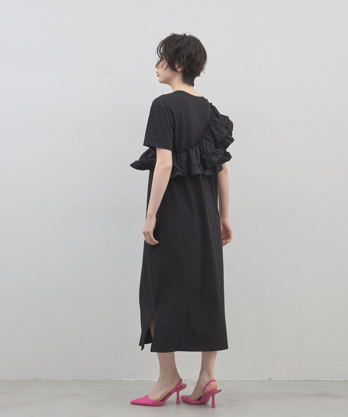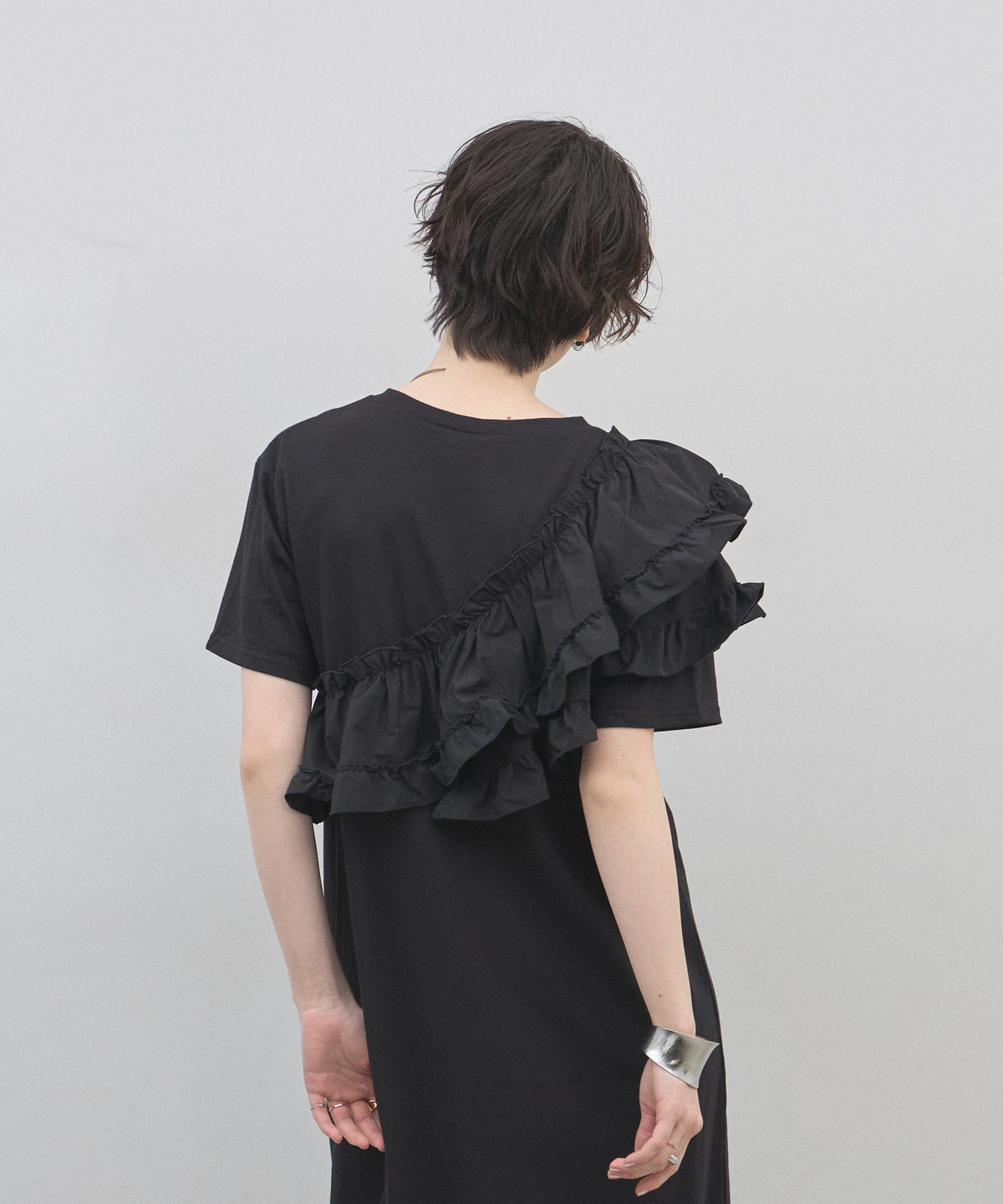 | 商品説明 | : | 斜めに流れるフリルが主役。リラクシーな着心地とモードを両立した、着映えワンピース。 柔らかなカットソー素材を使用した、ストレスフリーな着心地のマキシ丈ワンピース。 最大の特徴は、右肩から胸元にかけて大胆にあしらわれたアシンメトリーなフリルデザインです。 立体的なフリルが視線を惹きつけ、シンプルなワンピースにドラマティックな躍動感と華やかさをプラスします。 すとんと落ちるストレートシルエットで、体のラインを拾わずスタイルを美しくカバー。 一枚でスタイリングが完成するのはもちろん、鮮やかなカラーパンプスを合わせて、 遊び心のある大人のモノトーンスタイルを楽しむのもおすすめです。 日常のカジュアルを、一気にモードへ引き上げる主役級の一着です。 |