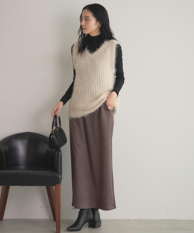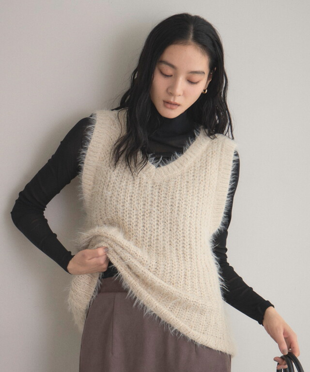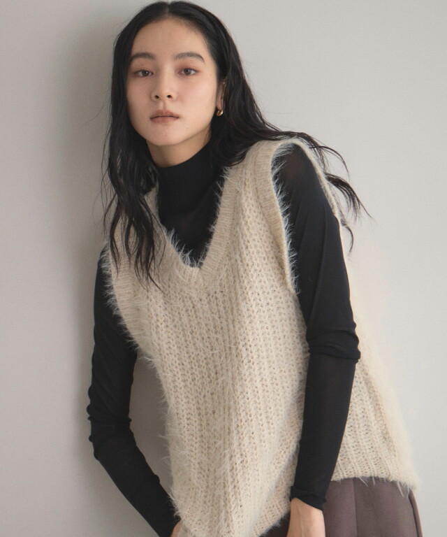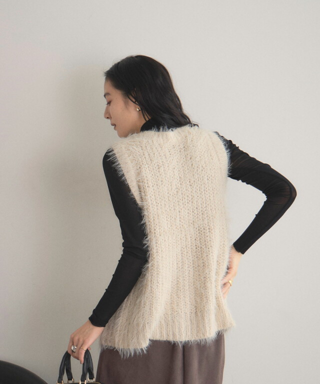 | 商品説明 | : | 前後どちらでも着映える、ふわふわフェザーヤーンベスト 柔らかなフェザーヤーン素材を使用した、前後2WAYデザインのニットベスト。 どちらを前にしても着られるので、コーディネートの幅が広がります。 軽やかな素材感で重ね着もしやすく、シャツやワンピースとのレイヤードも◎ シンプルながら存在感のある1枚で、旬のスタイルを手軽に楽しめます。 |