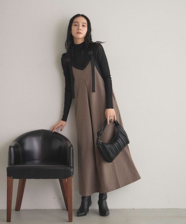 | 商品説明 | : | 前後どちらでも楽しめる、配色タックのワンピース 落ち着いた配色とタックデザインがアクセントの2WAYワンピース。 前後どちらを前にしても着られるデザインで、気分やコーディネートに合わせて楽しめます。 タック入りのフレアシルエットで上品な印象に仕上がり、1枚で華やかさをプラス。 |