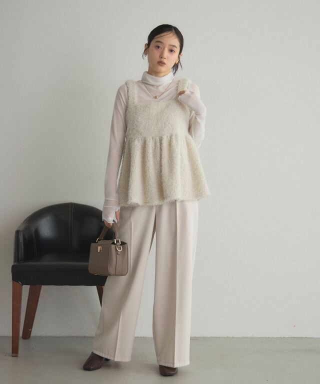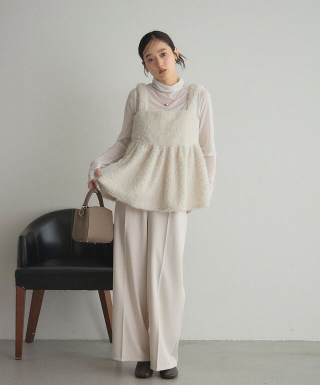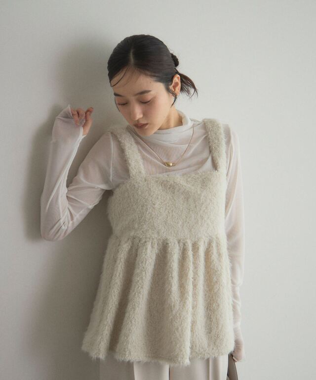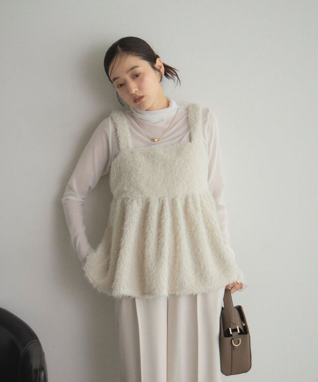| 商品説明 | : | ふわふわブークレで、華やかに魅せるキャミビスチェ ブークレシャギー素材のやわらかな質感が魅力のキャミビスチェ。 立体的な編み目とふんわり素材で、女性らしい華やかさを演出。 インナーにニットやカットソーを合わせるだけで旬のレイヤードスタイルに。 気になる腰回りが隠れる丈感でボトムスとのバランスも取りやすく仕上げました。 大人フェミニンな着こなしを楽しめる、秋冬の主役アイテムです。 |