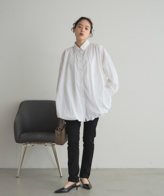 | 商品説明 | : | ふんわりバルーンシルエットで、旬顔シャツスタイル 立体感のあるタフタ素材で仕立てたバルーンシャツ。 程よく膨らむ裾やボリューム感が、こなれた印象を演出します。 長めの丈で、低身長さんにはミニワンピとしても着用いただけます。 シンプルなボトムに合わせるだけで、旬のトレンドスタイルが完成する1枚です。 オンオフ問わず着回しできる、存在感のあるタフタシャツです。 |