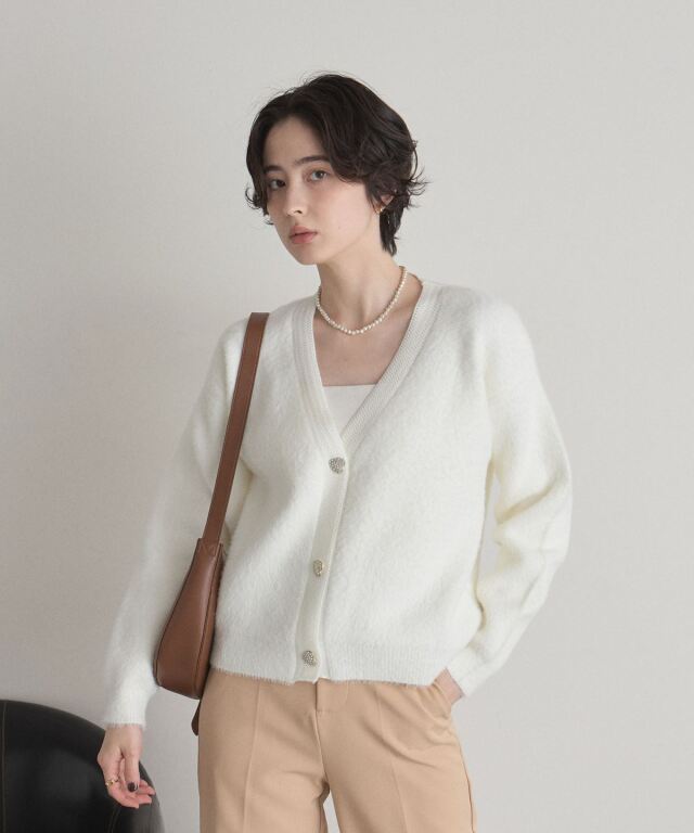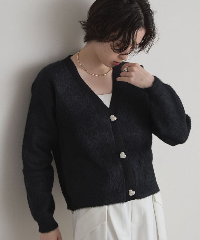 | 商品説明 | : | ハートビジューがきらめく、着回し力抜群のVネックカーデ。 程よい丈感でスカートにもパンツにも合わせやすい、万能シルエットのVネックカーディガン。 しっかりと度目の詰まったニット生地で、上品さと安心感のある着心地を叶えます。 フロントのボタンにはハート型のビジューをあしらい、さりげなく華やぐワンポイントに。 シンプルな中に可愛らしさを忍ばせた、デイリーもお出かけも活躍する大人フェミニンな一枚です。 |