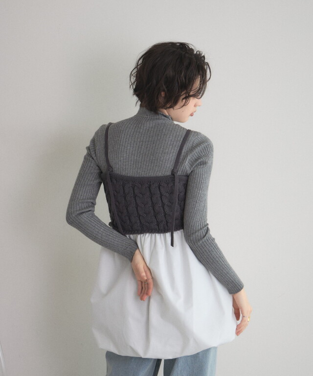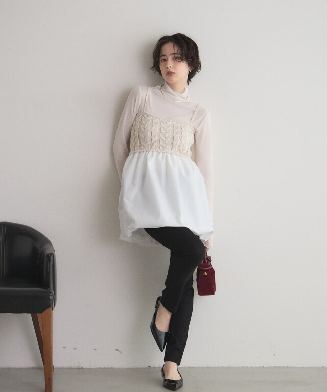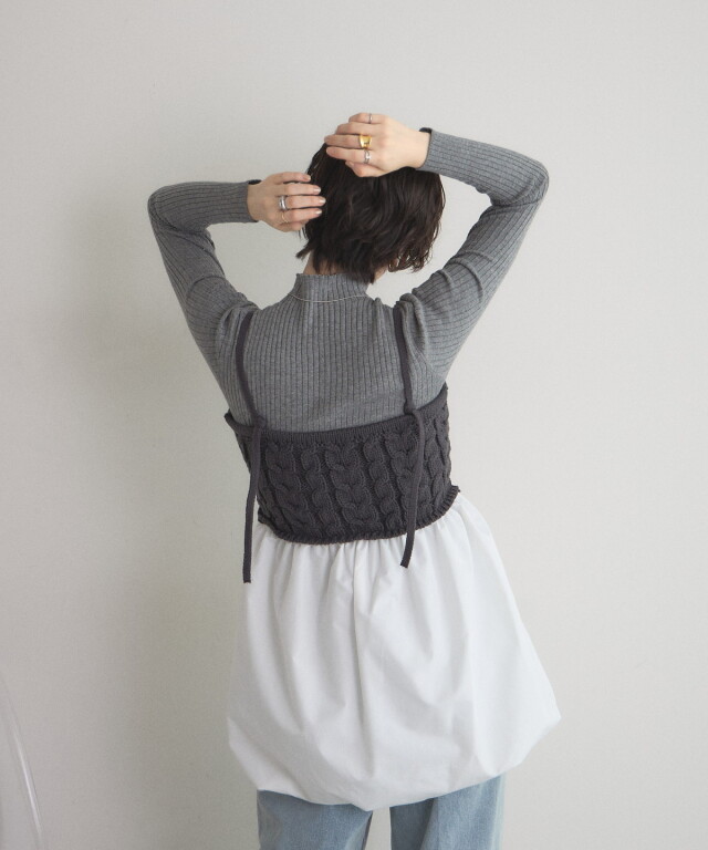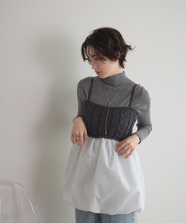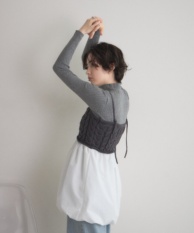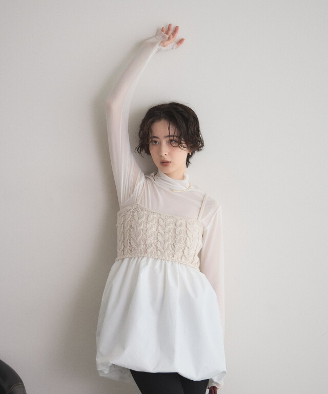 | 商品説明 | : | ふんわりバルーン×ケーブル編みの旬キャミソール 立体感のあるケーブル編みが特徴のバルーンキャミソール。 ゆったりとしたシルエットで着心地も快適、1枚でもレイヤードでも華やかさを演出します。 ニットやシャツとの重ね着で表情豊かに楽しめ、デイリーからお出かけまで幅広く活躍。 ふんわり感とこなれ感を両立した、旬のデザインキャミです。 |