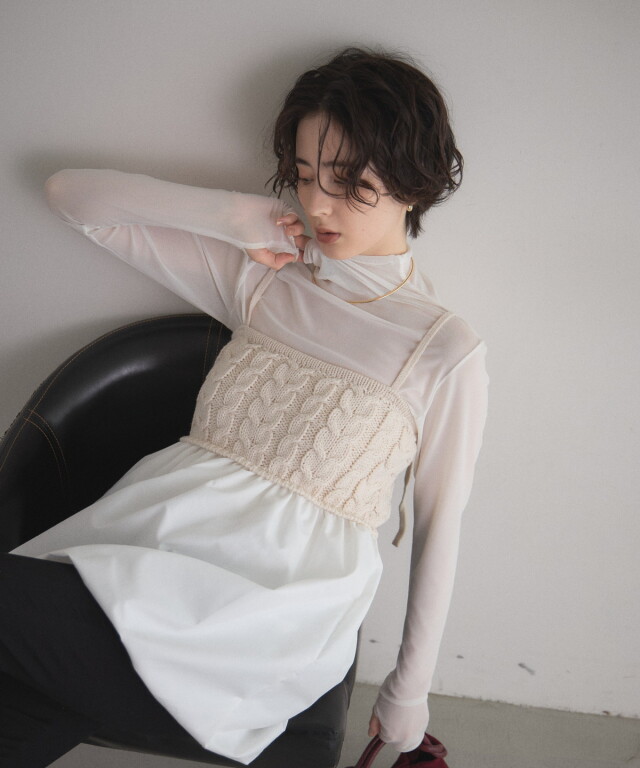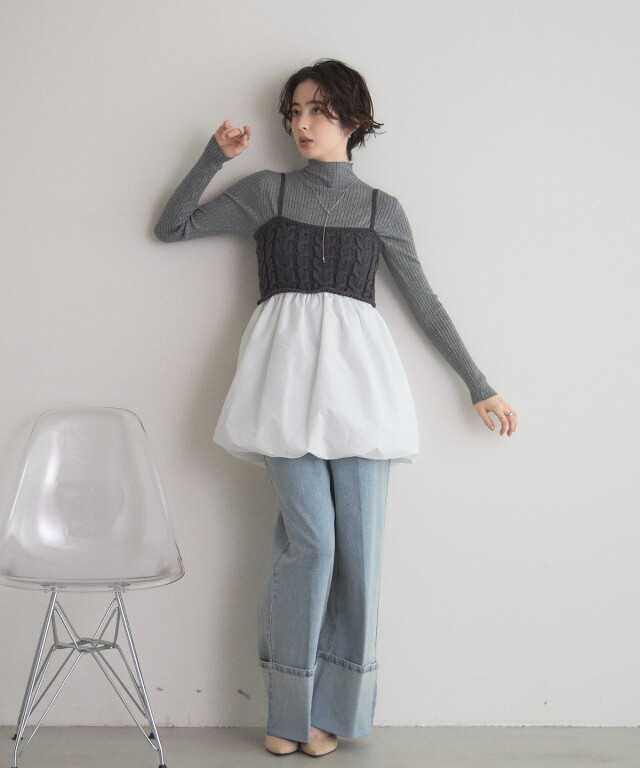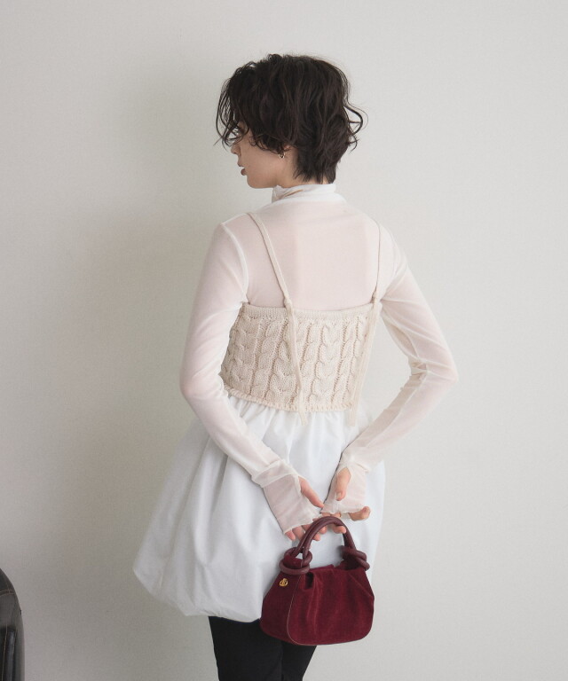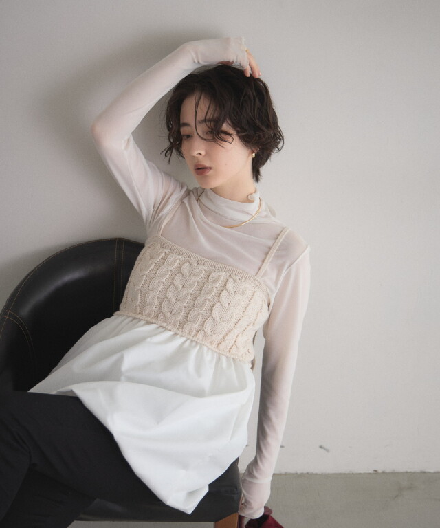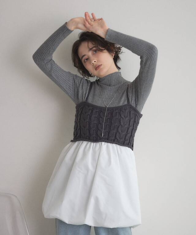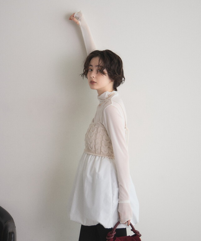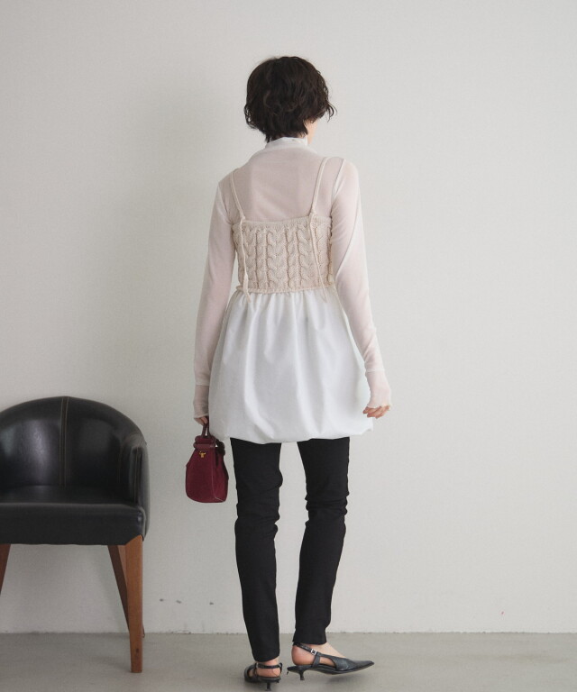 | 商品説明 | : | ふんわりバルーン×ケーブル編みの旬キャミソール 立体感のあるケーブル編みが特徴のバルーンキャミソール。 ゆったりとしたシルエットで着心地も快適、1枚でもレイヤードでも華やかさを演出します。 ニットやシャツとの重ね着で表情豊かに楽しめ、デイリーからお出かけまで幅広く活躍。 ふんわり感とこなれ感を両立した、旬のデザインキャミです。 |