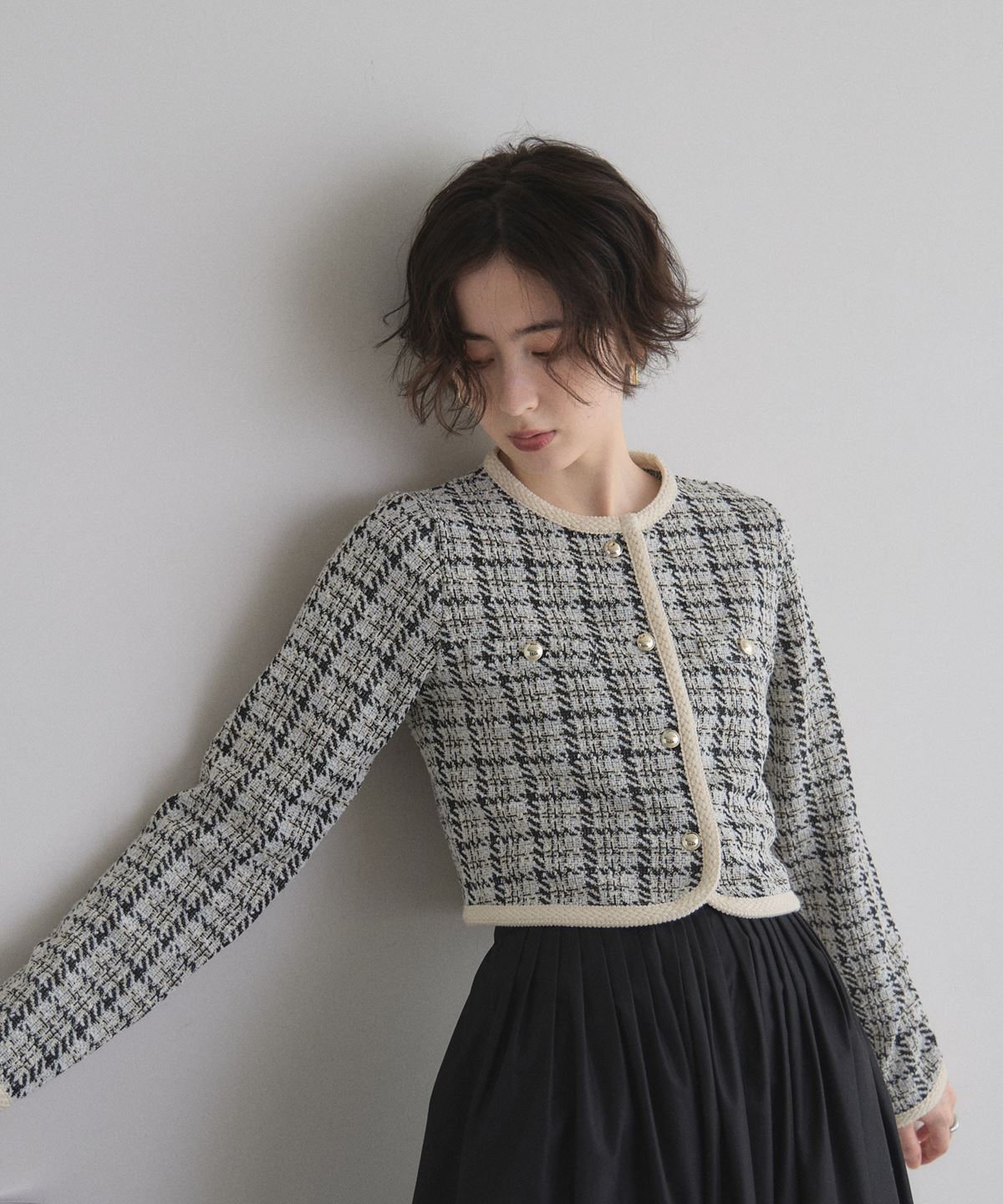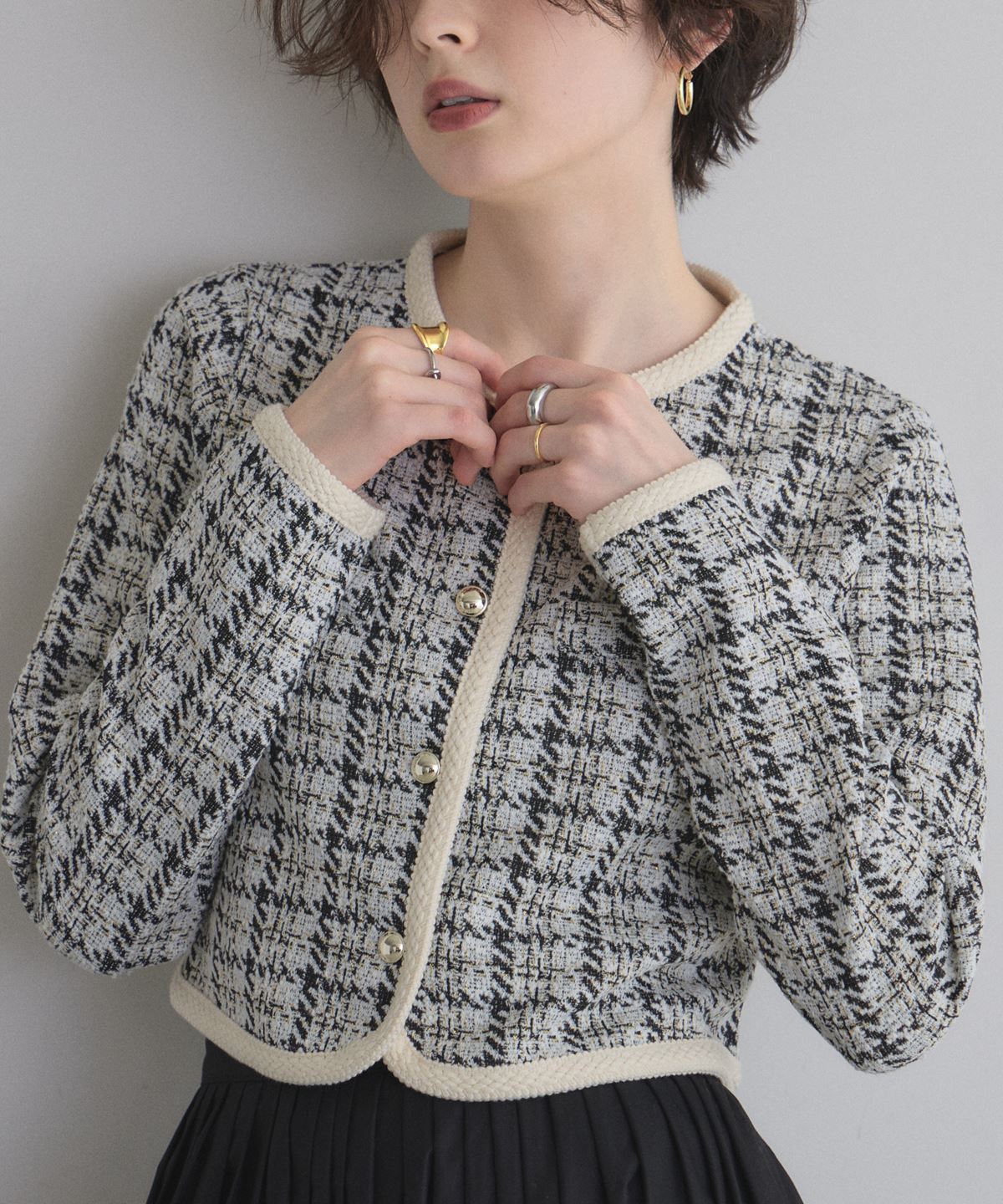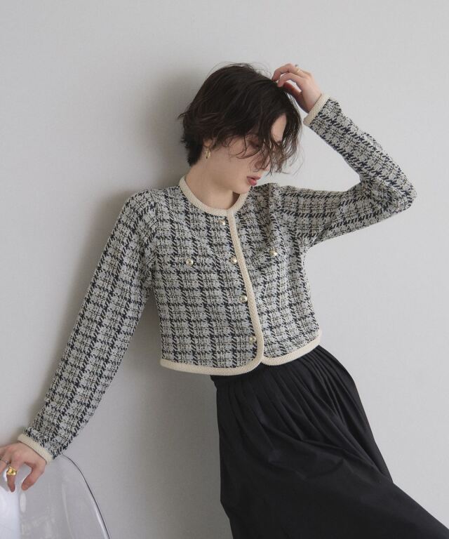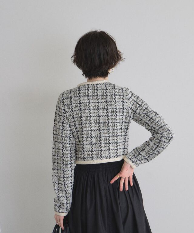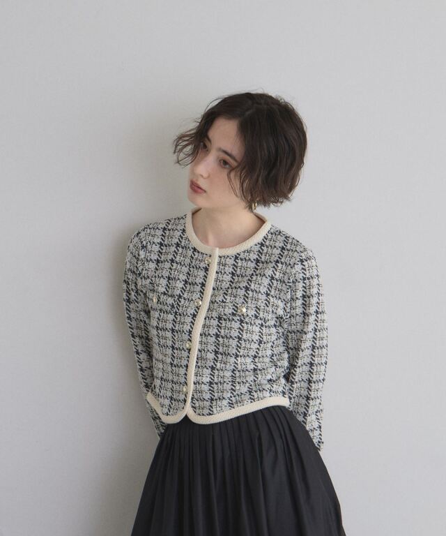 | 商品説明 | : | 上品なツイードで、デイリーに華やぎをプラス。 柔らかなカットソー素材にツイードを組み合わせたカーディガン。 程よい厚みで季節の変わり目にもぴったりの一枚です。 コンパクトなシルエットながら、立体感のあるデザインが上品さを演出。 フロントのボタンや縁取りのディテールがさりげないアクセントになり、 カジュアルにもきれいめにも合わせやすいアイテムです。 |