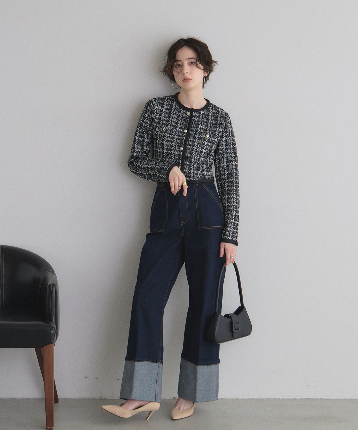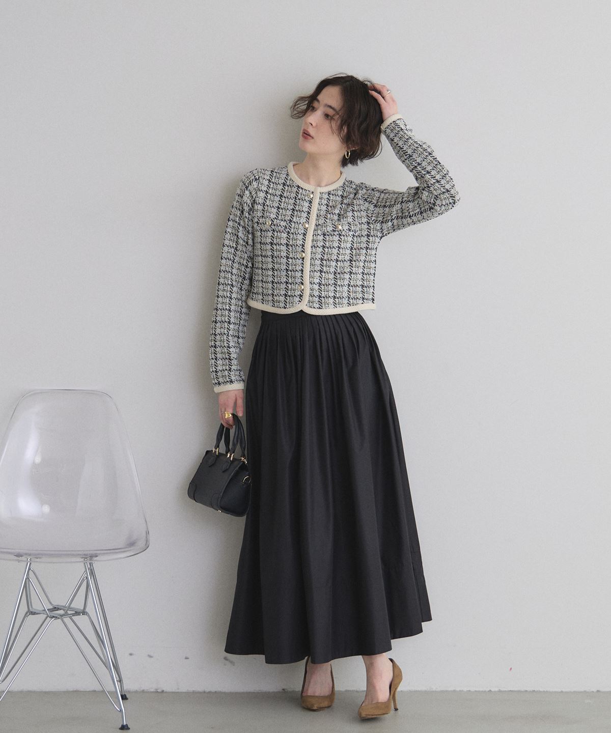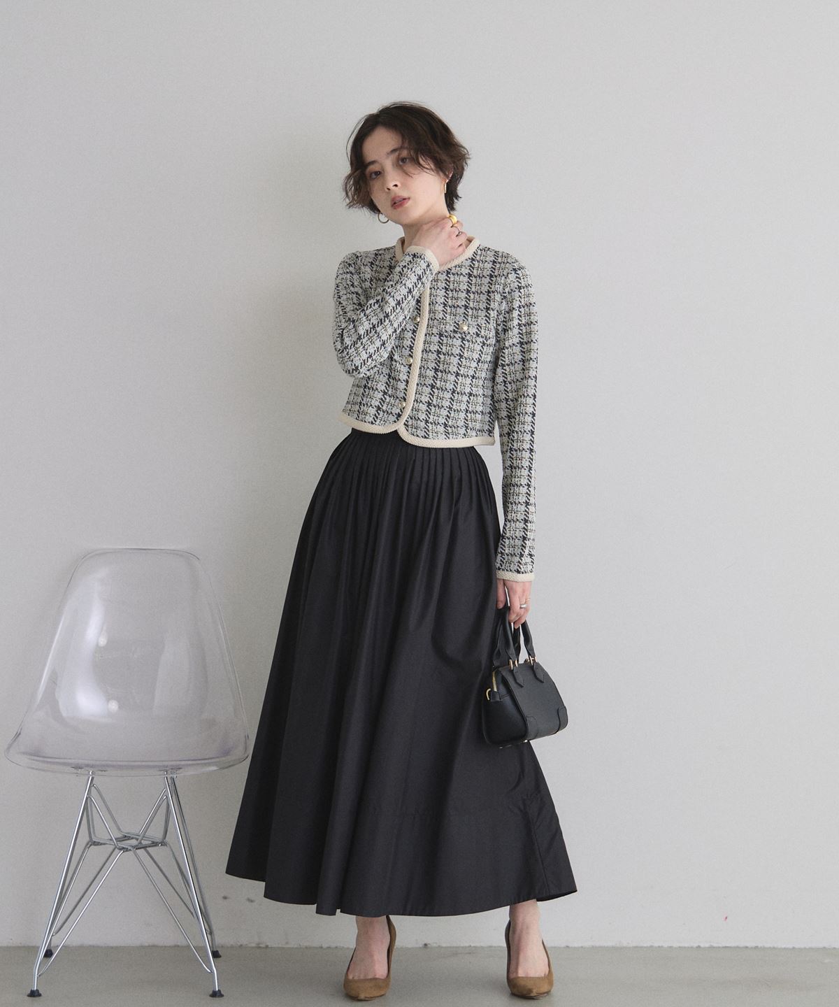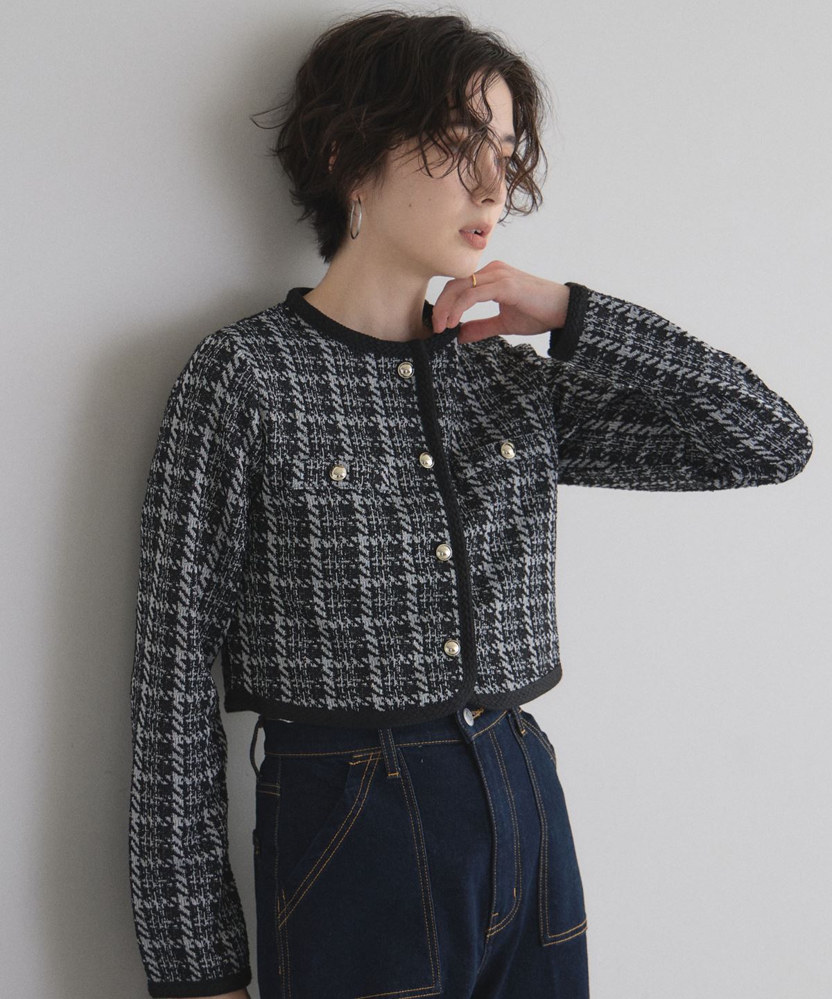 | 商品説明 | : | 上品なツイードで、デイリーに華やぎをプラス。 柔らかなカットソー素材にツイードを組み合わせたカーディガン。 程よい厚みで季節の変わり目にもぴったりの一枚です。 コンパクトなシルエットながら、立体感のあるデザインが上品さを演出。 フロントのボタンや縁取りのディテールがさりげないアクセントになり、 カジュアルにもきれいめにも合わせやすいアイテムです。 |