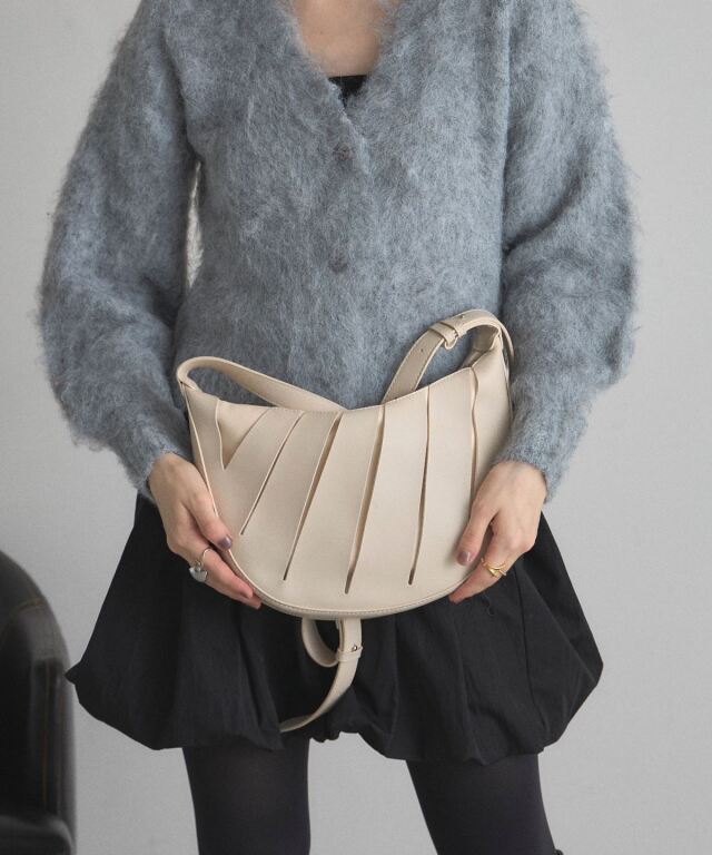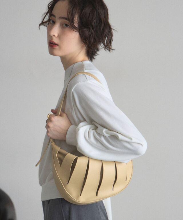 | 商品説明 | : | ころんと丸いフォルムが可愛い、大人フェミニンにもカジュアルにも持てるバッグ 丸みのあるクロワッサン型フォルムが印象的なバッグ。 手持ちでも肩掛けでも使える2wayハンドルで、シーンに合わせてアレンジ可能。 シンプルなデザインながら存在感があり、コーディネートのアクセントに。 必要最低限の荷物が収まるコンパクトサイズでデイリー使いにぴったり。 柔らかな質感と丸みが、大人の可愛らしさを引き立てる一枚です。 |