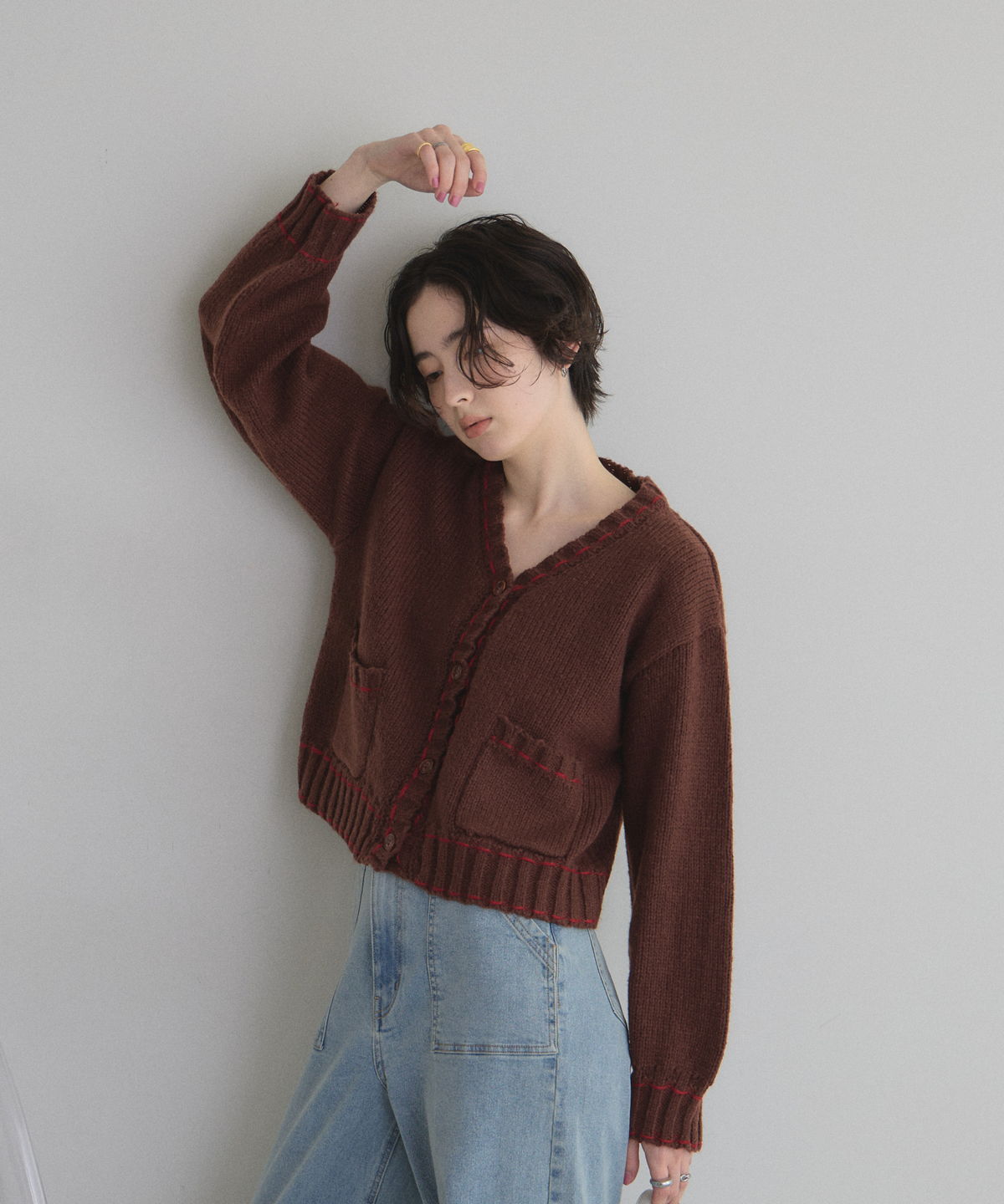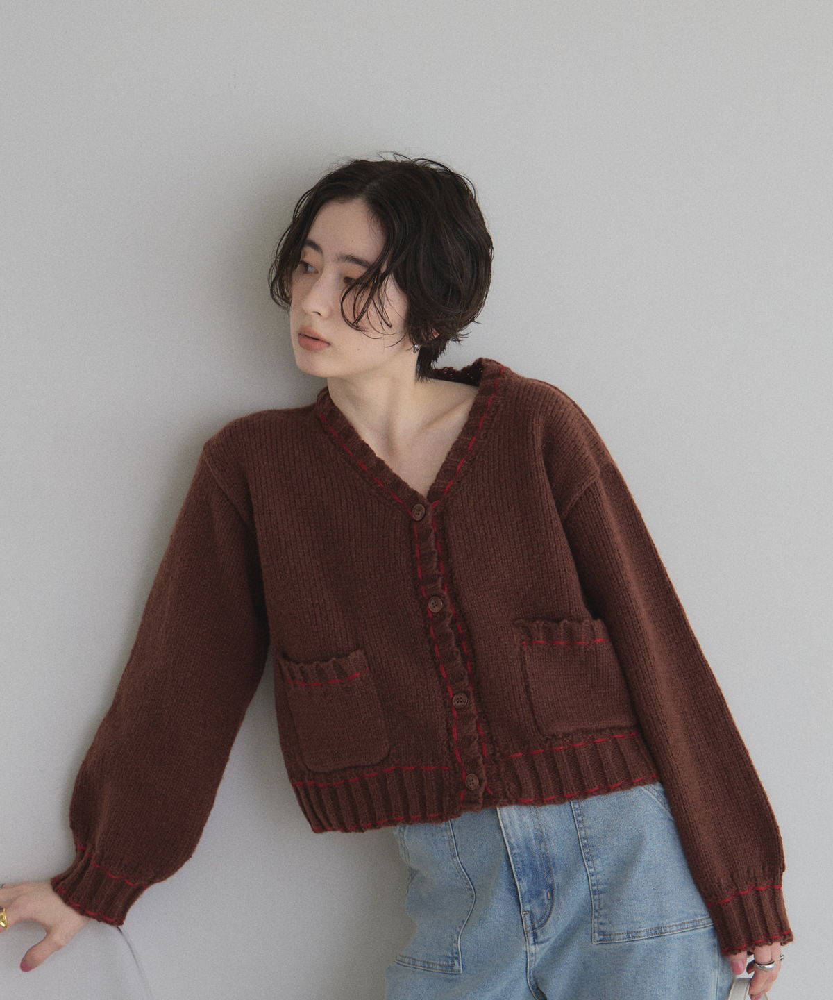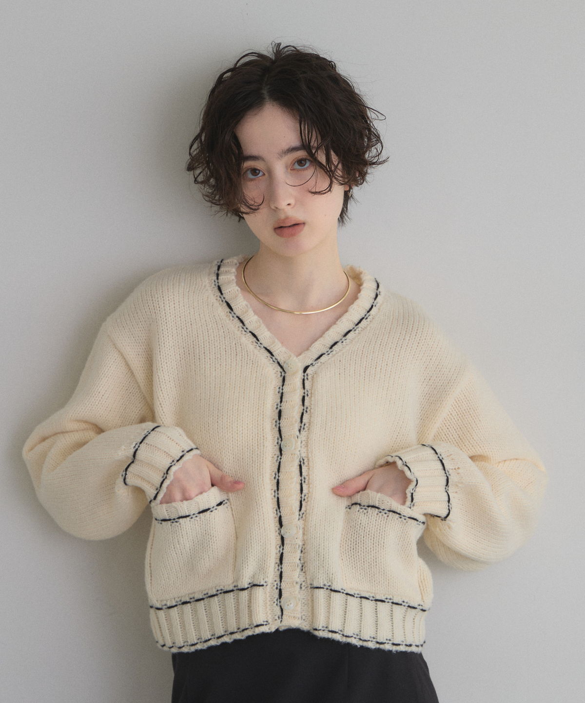 | 商品説明 | : | ぷっくりステッチが主役。コンパクトでも存在感◎な一枚。 遊び心のあるステッチデザインにゆったりサイズが可愛らしいニットカーデ。 カーディガンの色とステッチの配色が目を惹くアイテム。 デニムでカジュアルに、スカートでフェミニンにも着回し自在。 軽やかなのに今っぽい存在感を放つ、万能カーディガンです! |