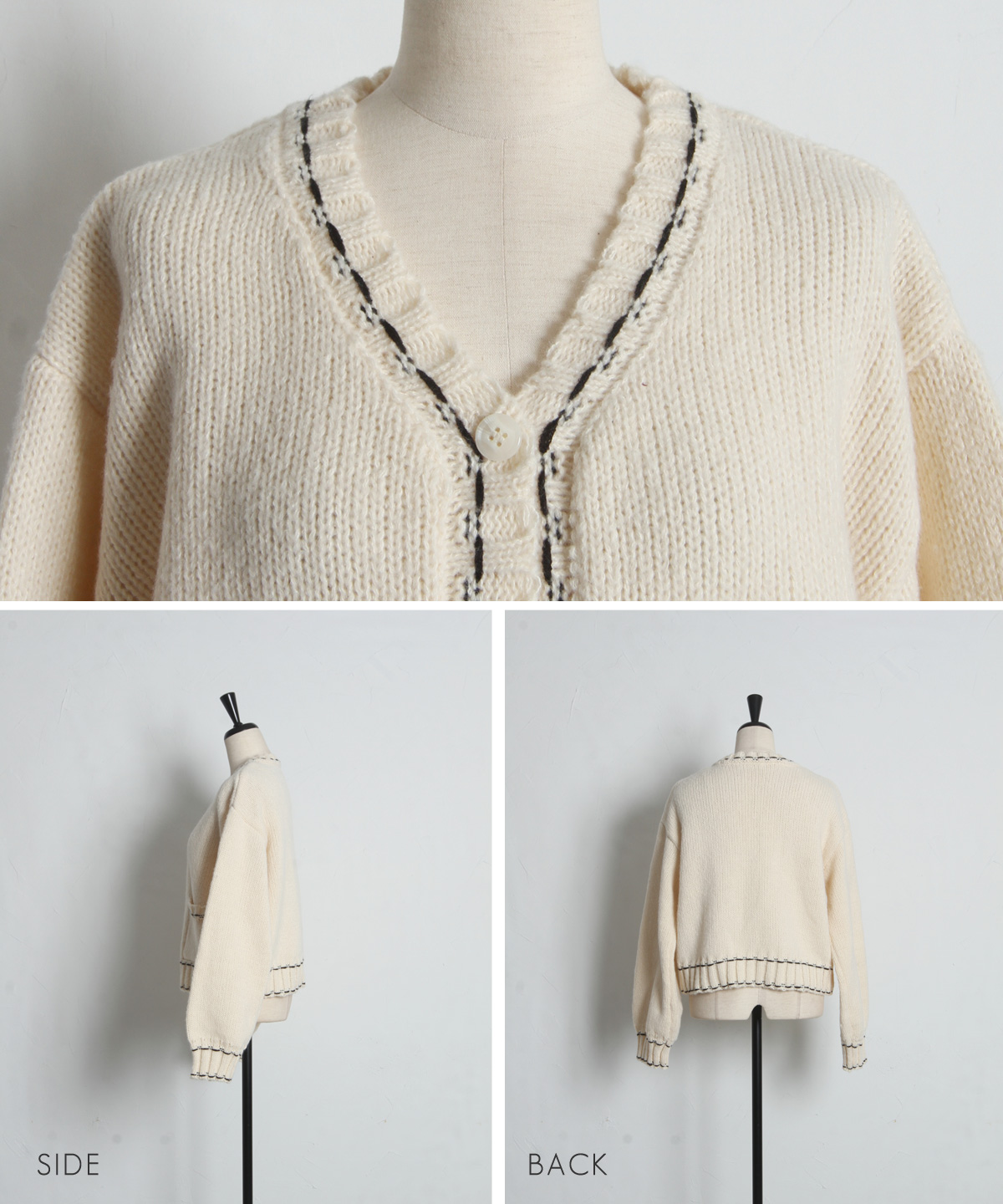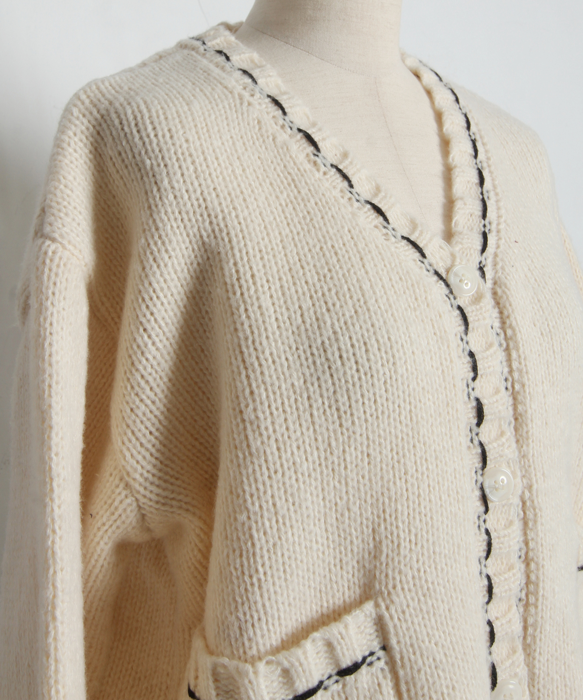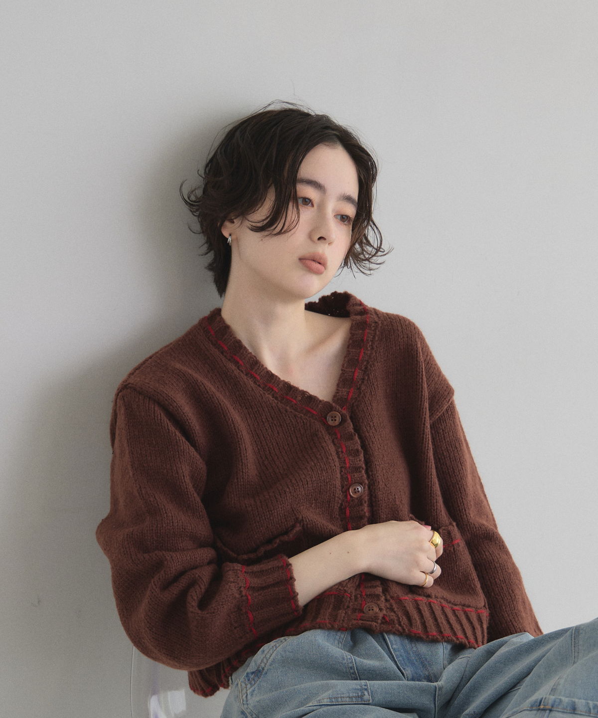 | 商品説明 | : | ぷっくりステッチが主役。コンパクトでも存在感◎な一枚。 遊び心のあるステッチデザインにゆったりサイズが可愛らしいニットカーデ。 カーディガンの色とステッチの配色が目を惹くアイテム。 デニムでカジュアルに、スカートでフェミニンにも着回し自在。 軽やかなのに今っぽい存在感を放つ、万能カーディガンです! |