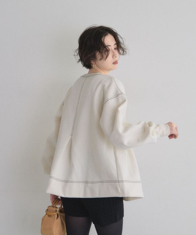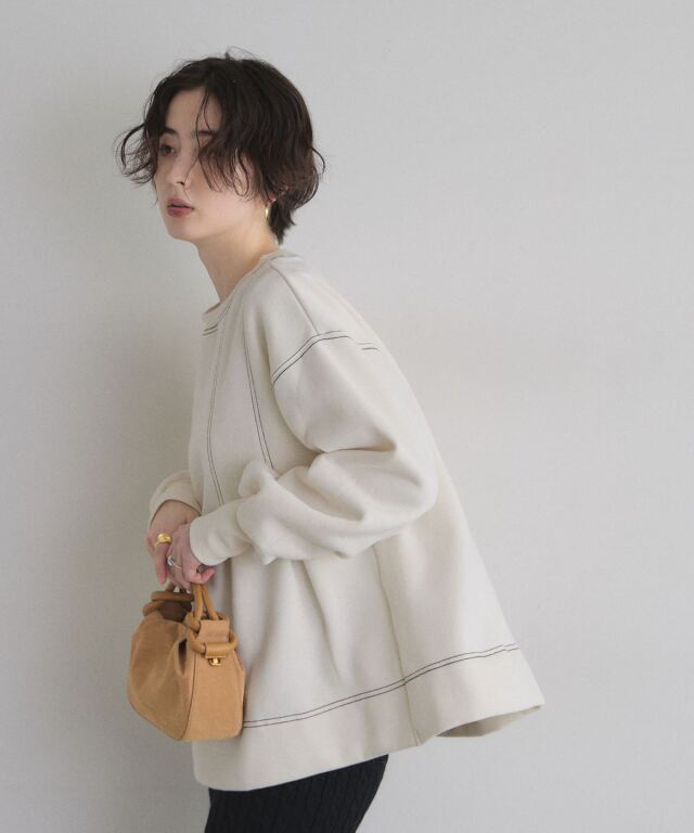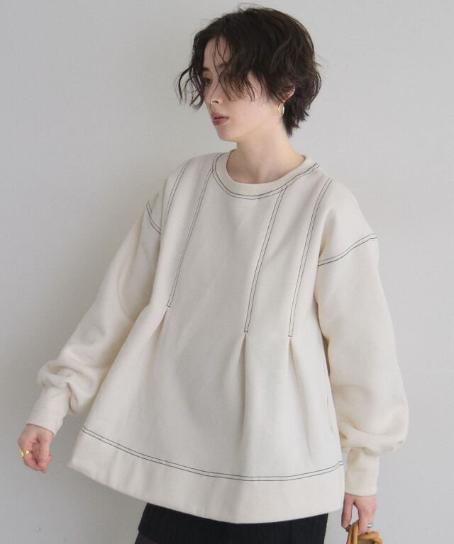 | 商品説明 | : | 暖かく、ふんわり広がる美シルエット。 裏起毛で肌触りが柔らかく、冬でも暖かく着られるスウェット。 タックを入れたAラインシルエットが腰回りをふんわりカバーし、女性らしいシルエットを演出します。 シンプルなデザインながら、裾や袖のディテールでこなれ感をプラス。 デニムやスカートとの相性もよく、カジュアルからちょっとしたお出かけまで幅広く活躍する一枚です。 |
