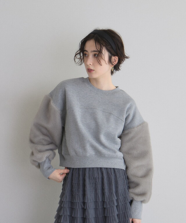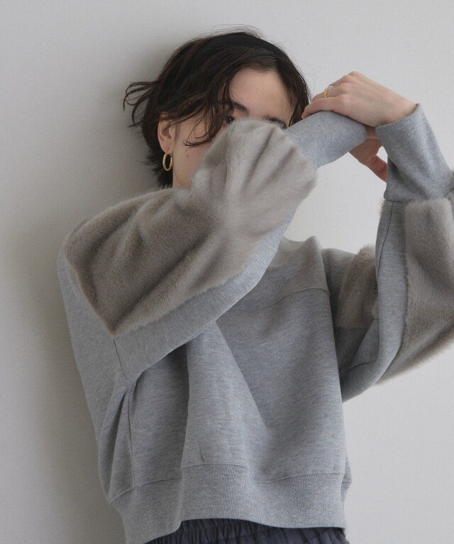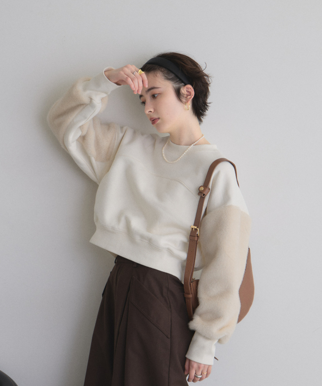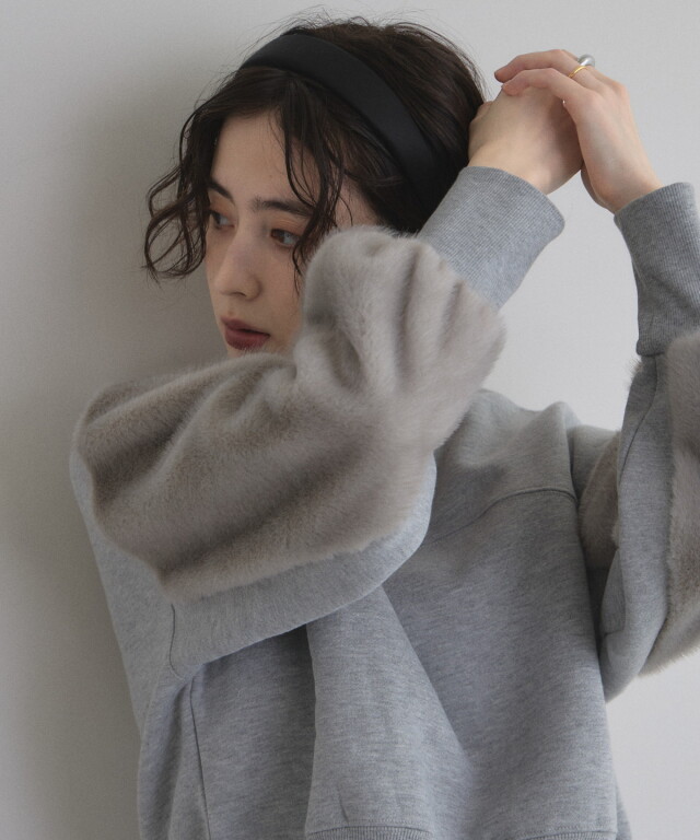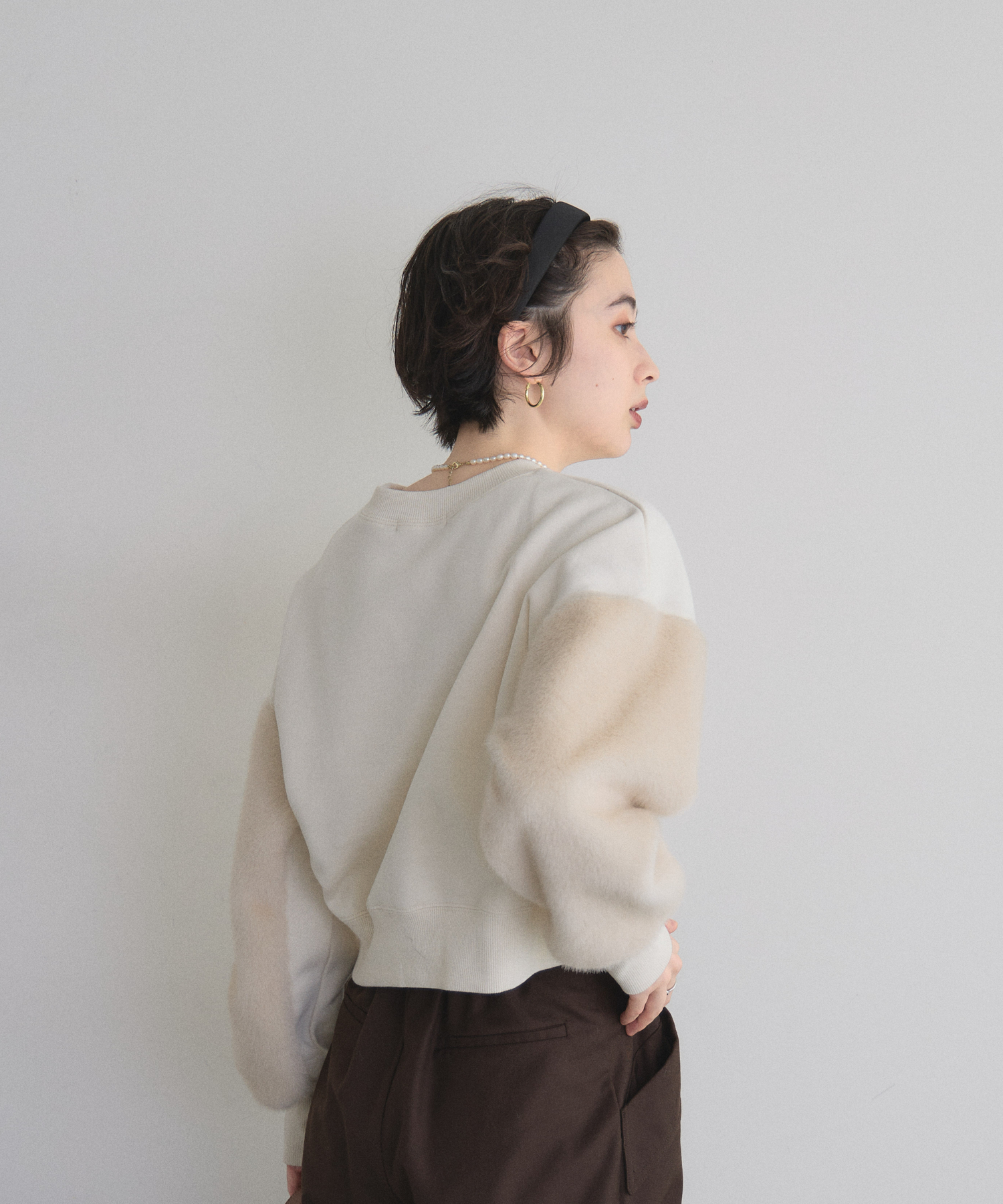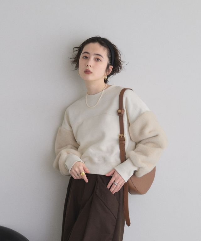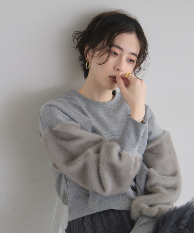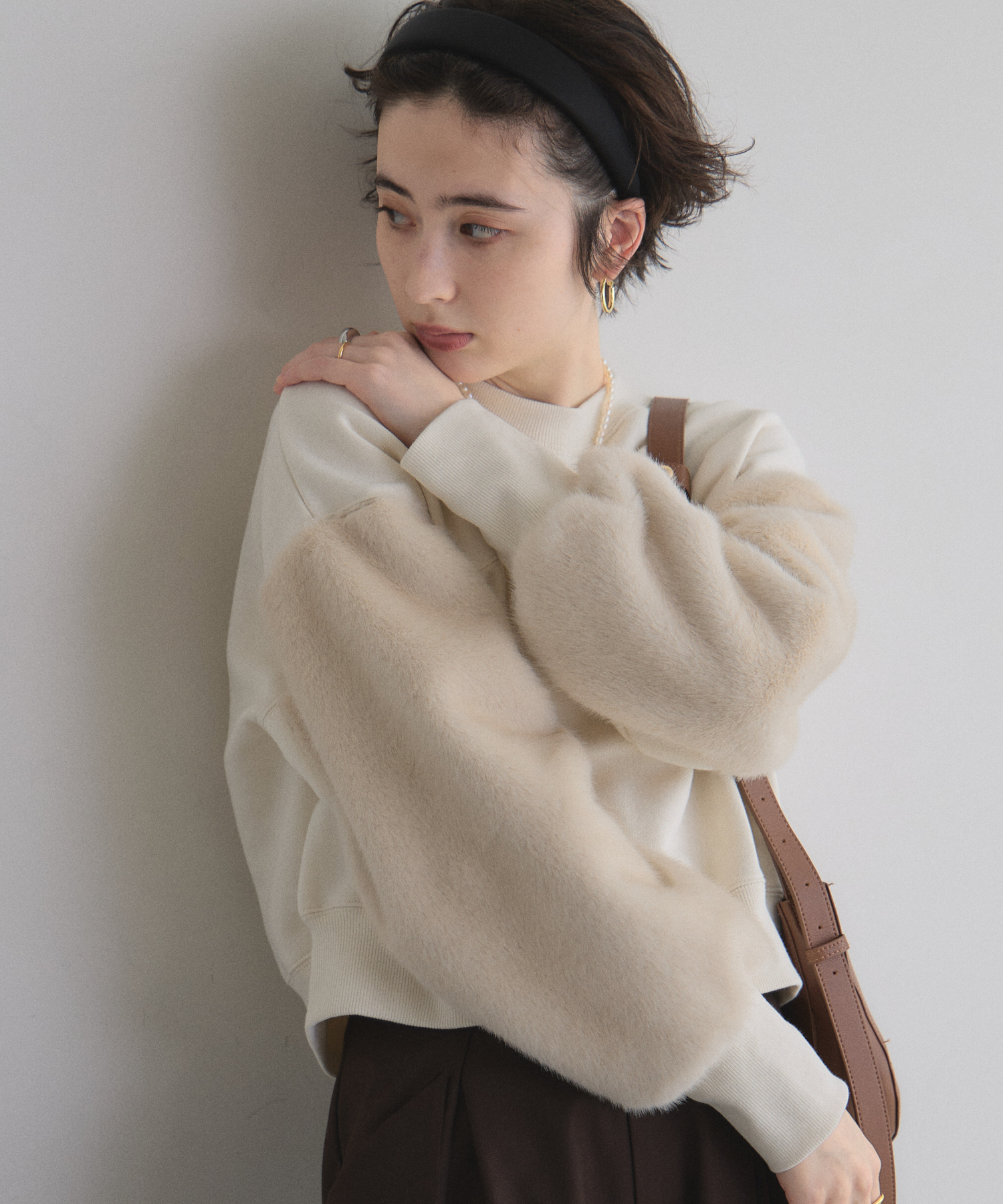 | 商品説明 | : | ふんわりファーで遊び心をプラスしたスウェット。 袖部分にフェイクファーをあしらった切替デザインが特徴のスウェット。 柔らかな素材感で着心地も抜群、カジュアルな中にさりげない華やかさをプラスします。 シンプルなボディに対してファーの存在感がアクセントとなり、一枚でコーディネートの主役に。 デニムやスカートと合わせやすく、デイリーからお出かけまで幅広く活躍するアイテムです。 |
