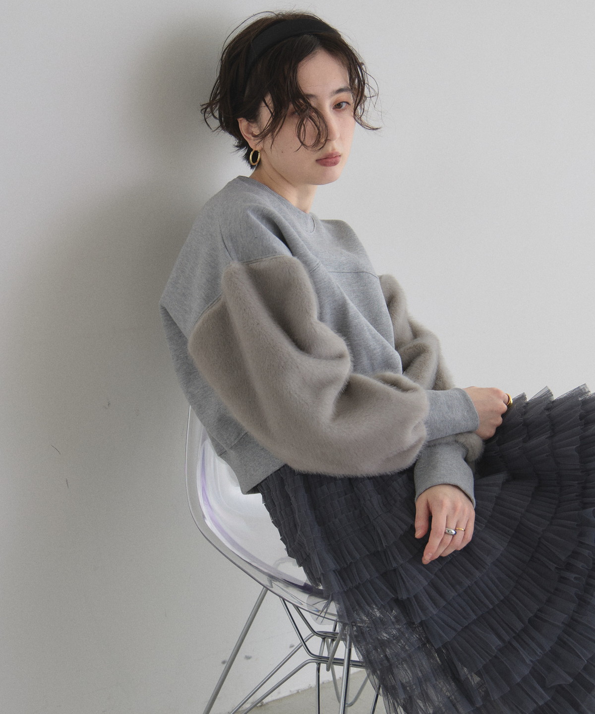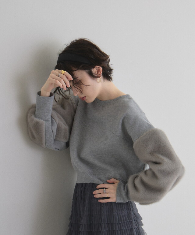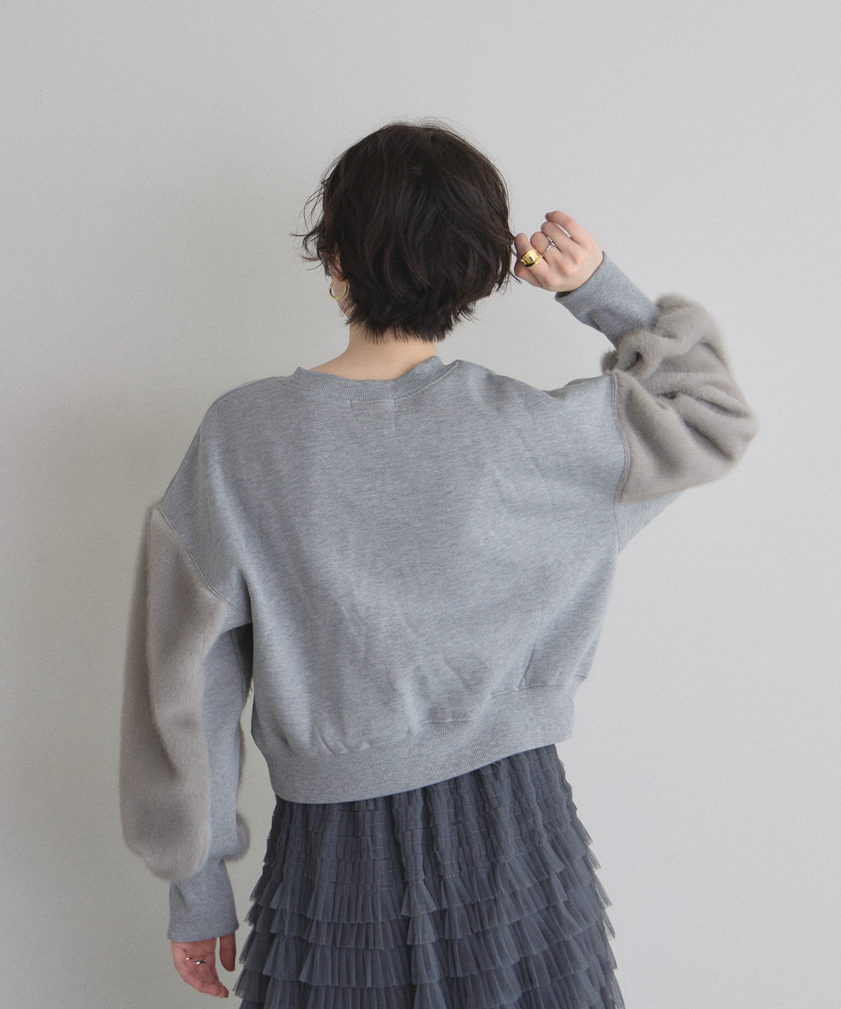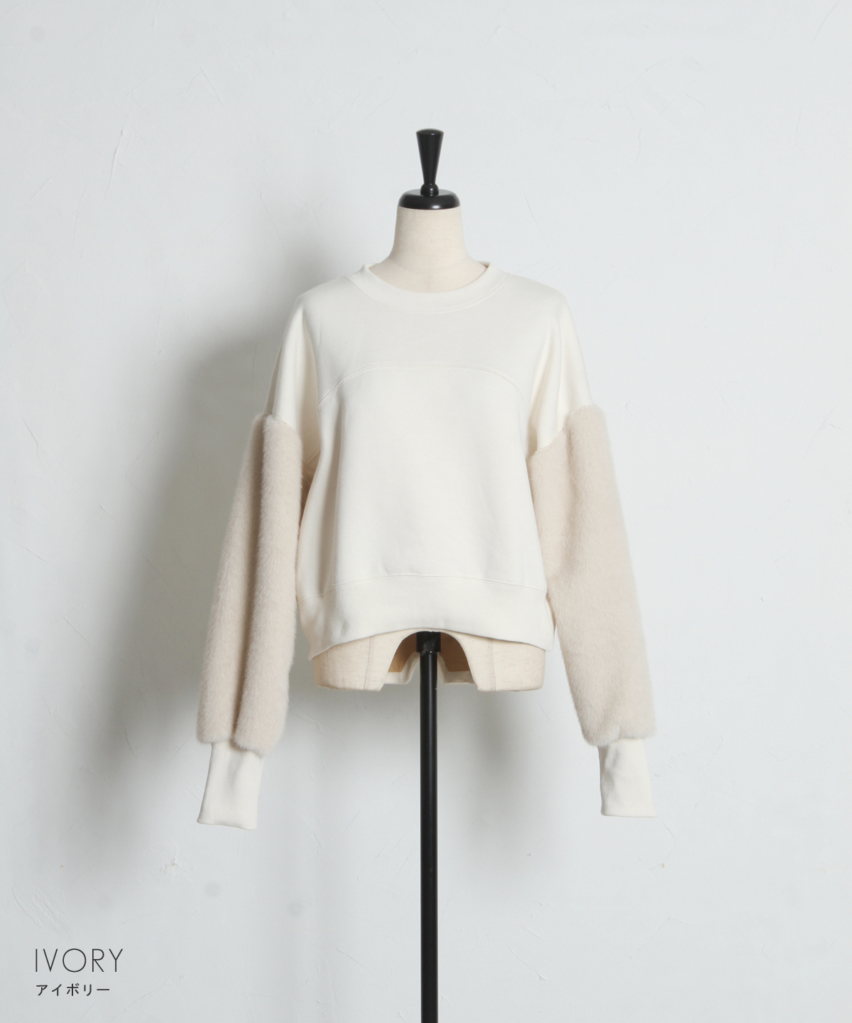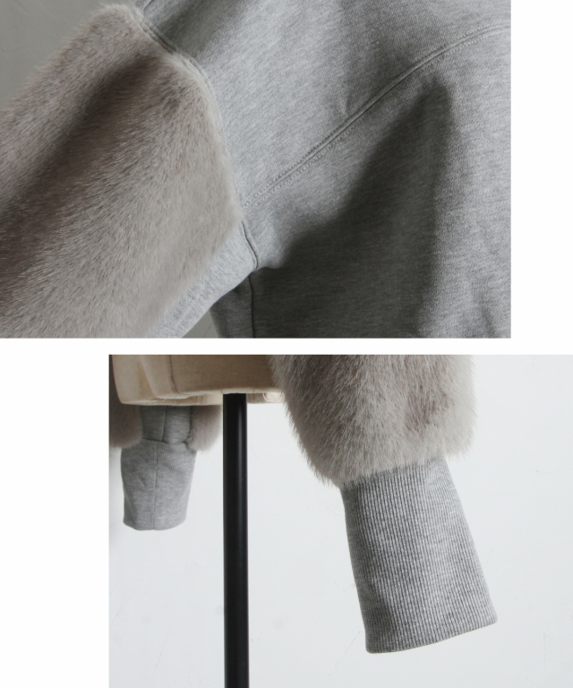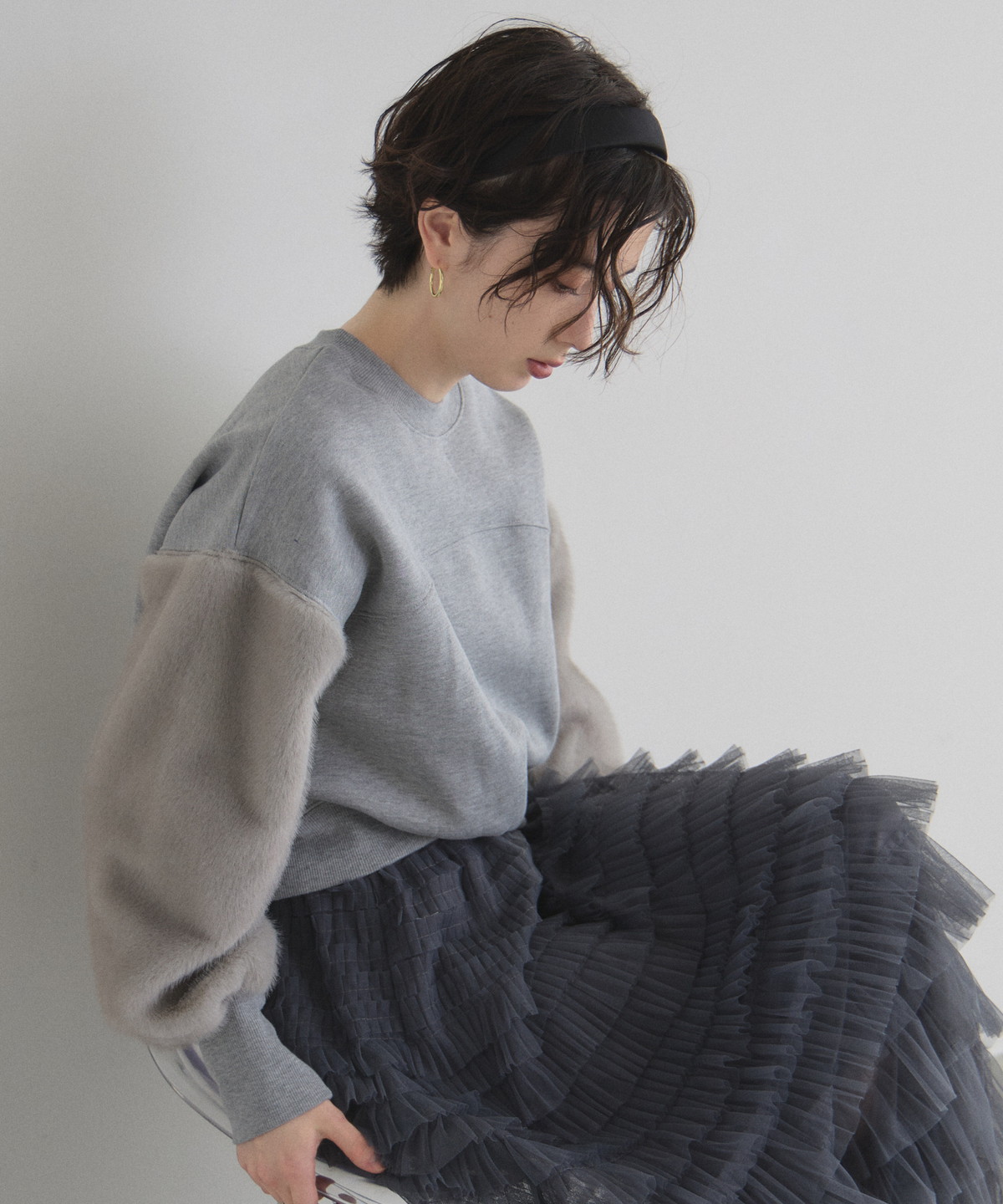 | 商品説明 | : | ふんわりファーで遊び心をプラスしたスウェット。 袖部分にフェイクファーをあしらった切替デザインが特徴のスウェット。 柔らかな素材感で着心地も抜群、カジュアルな中にさりげない華やかさをプラスします。 シンプルなボディに対してファーの存在感がアクセントとなり、一枚でコーディネートの主役に。 デニムやスカートと合わせやすく、デイリーからお出かけまで幅広く活躍するアイテムです。 |