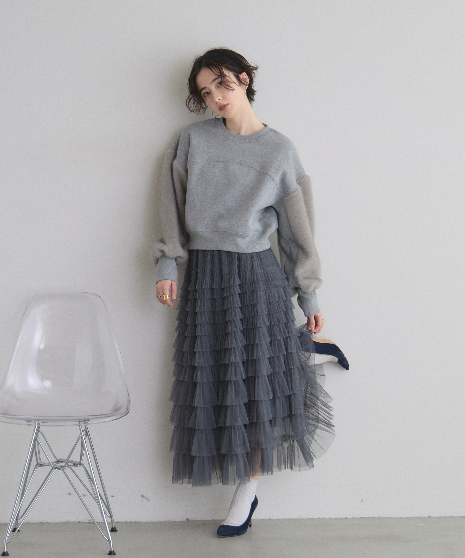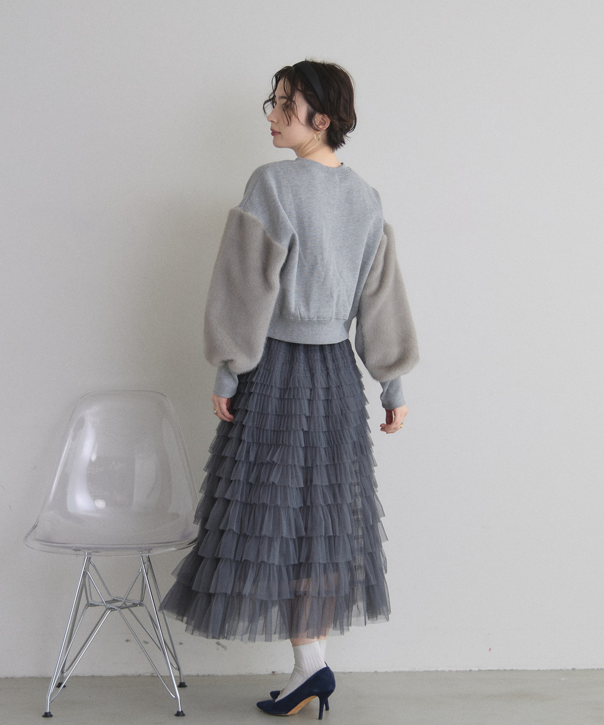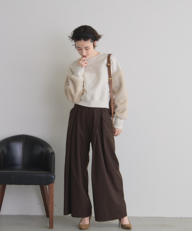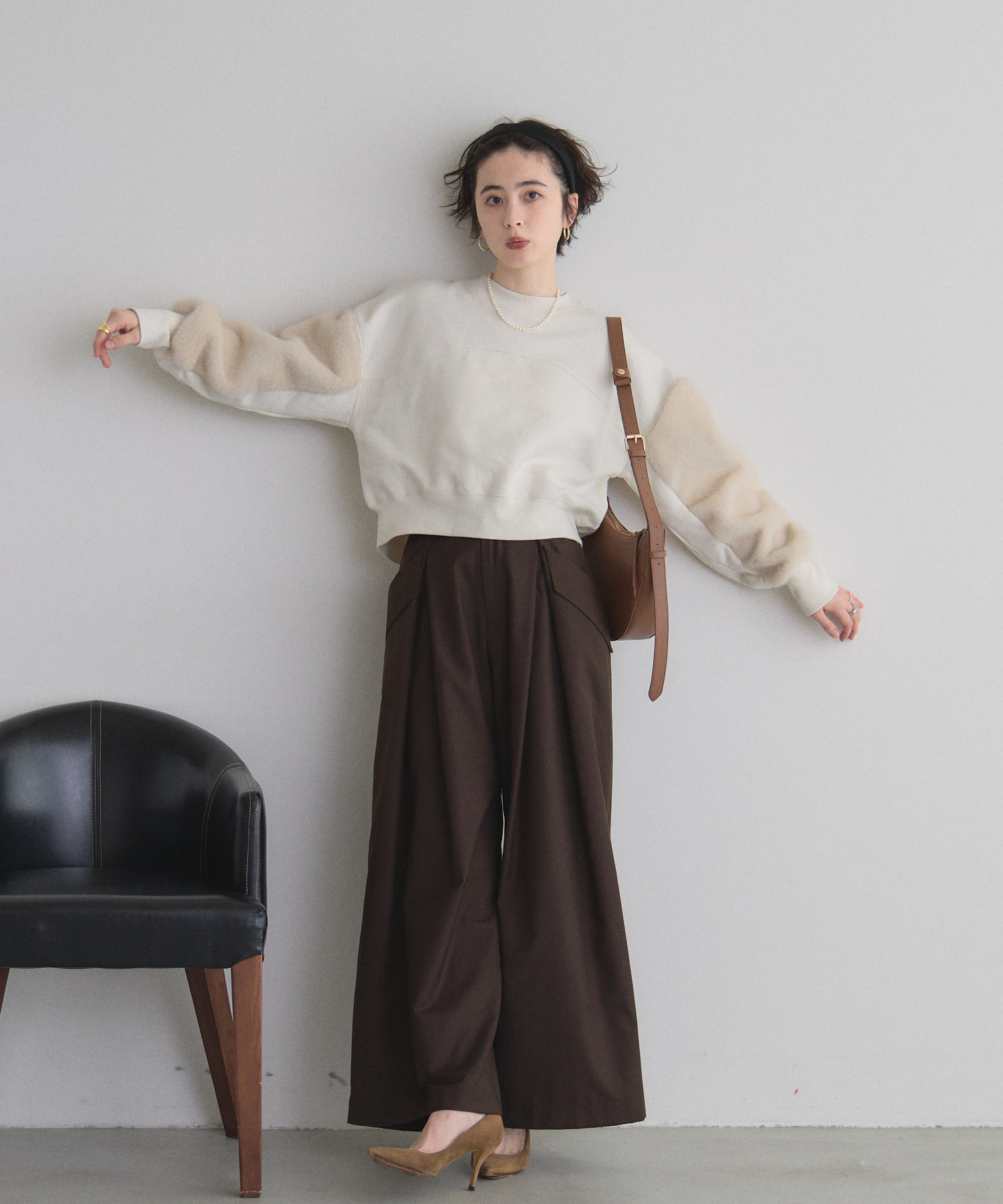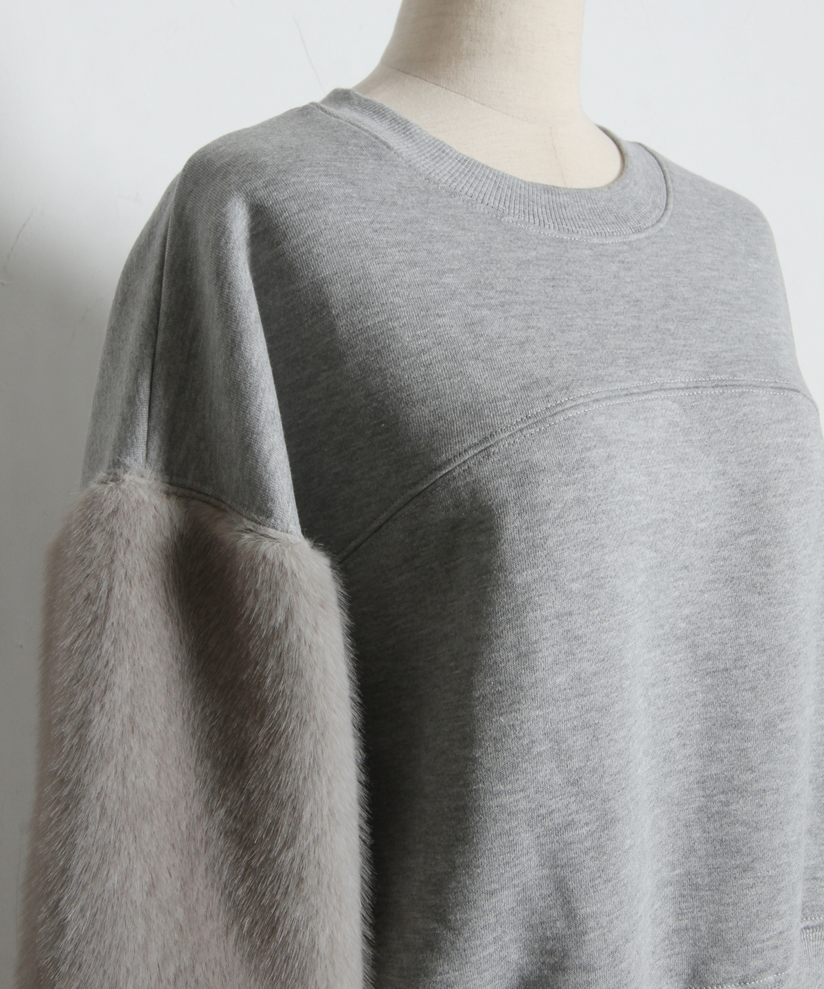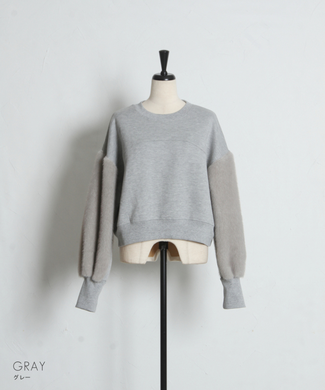 | 商品説明 | : | ふんわりファーで遊び心をプラスしたスウェット。 袖部分にフェイクファーをあしらった切替デザインが特徴のスウェット。 柔らかな素材感で着心地も抜群、カジュアルな中にさりげない華やかさをプラスします。 シンプルなボディに対してファーの存在感がアクセントとなり、一枚でコーディネートの主役に。 デニムやスカートと合わせやすく、デイリーからお出かけまで幅広く活躍するアイテムです。 |