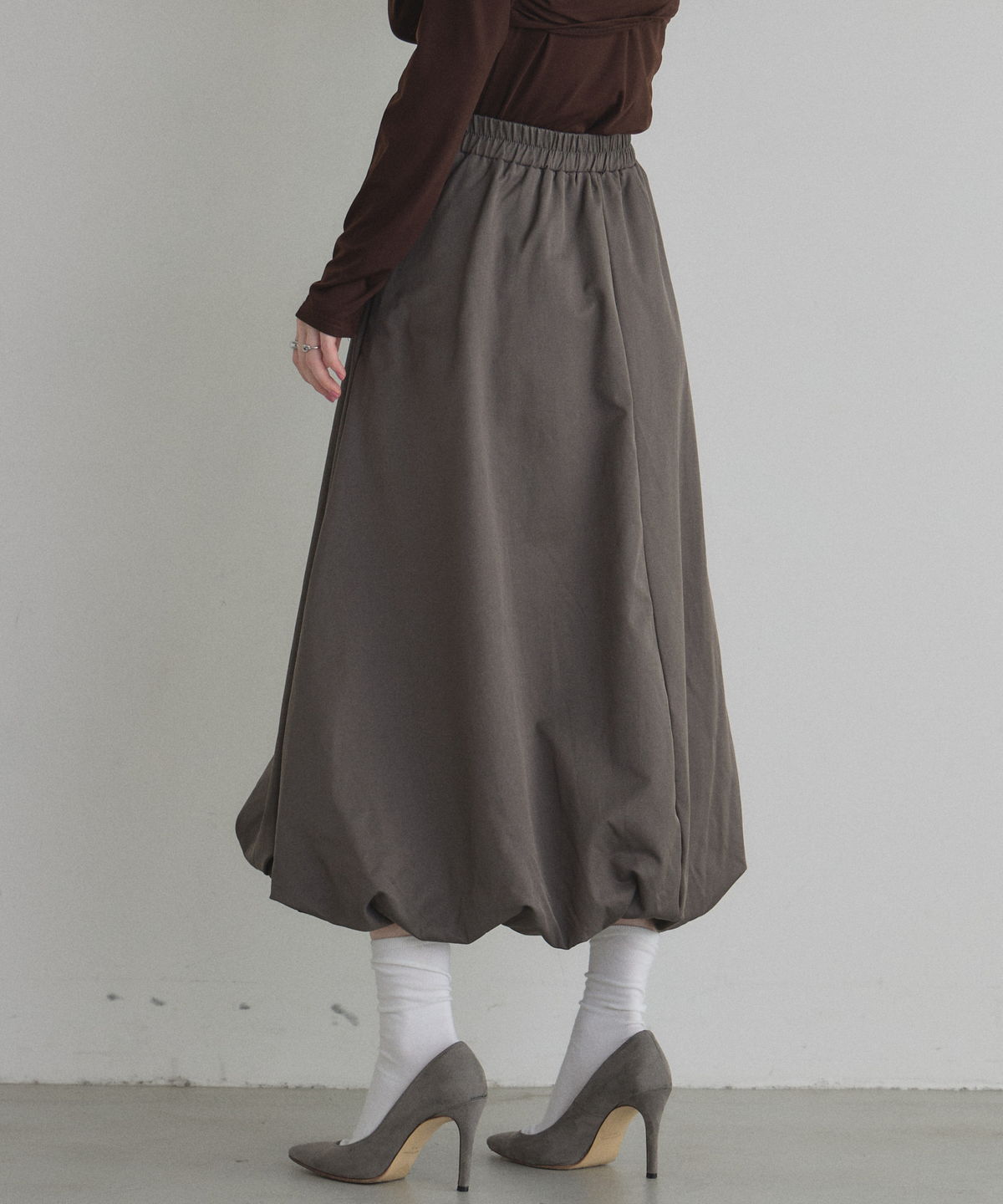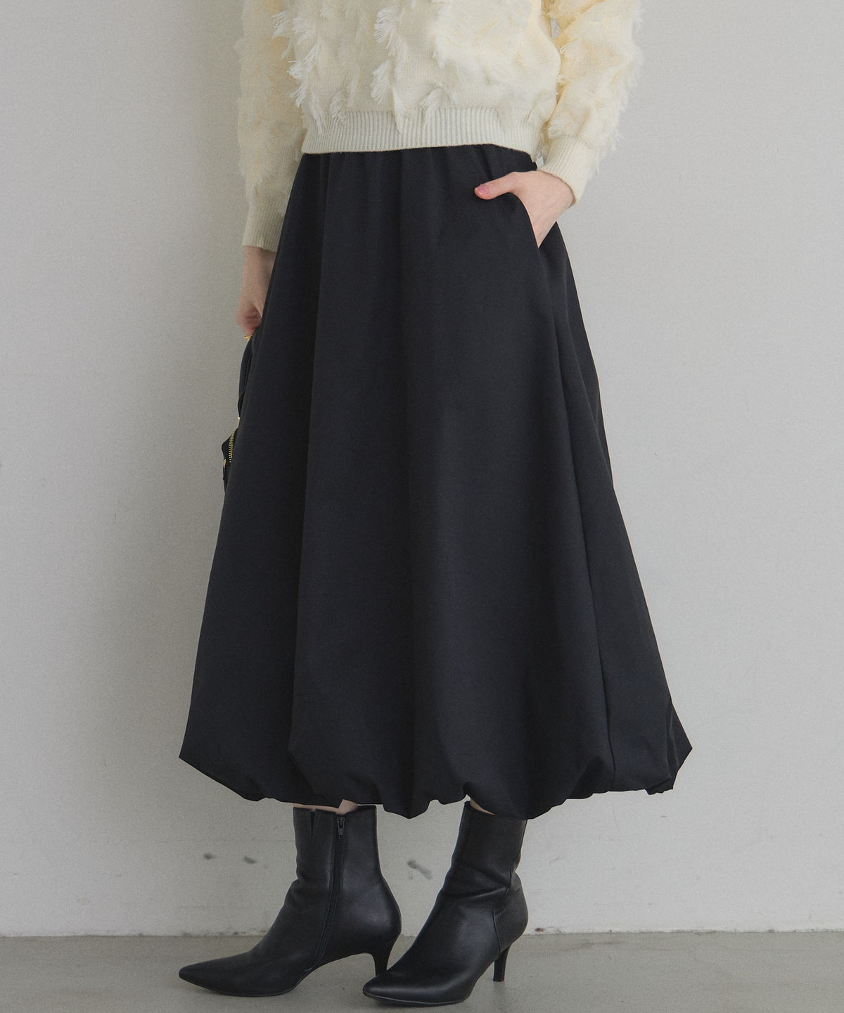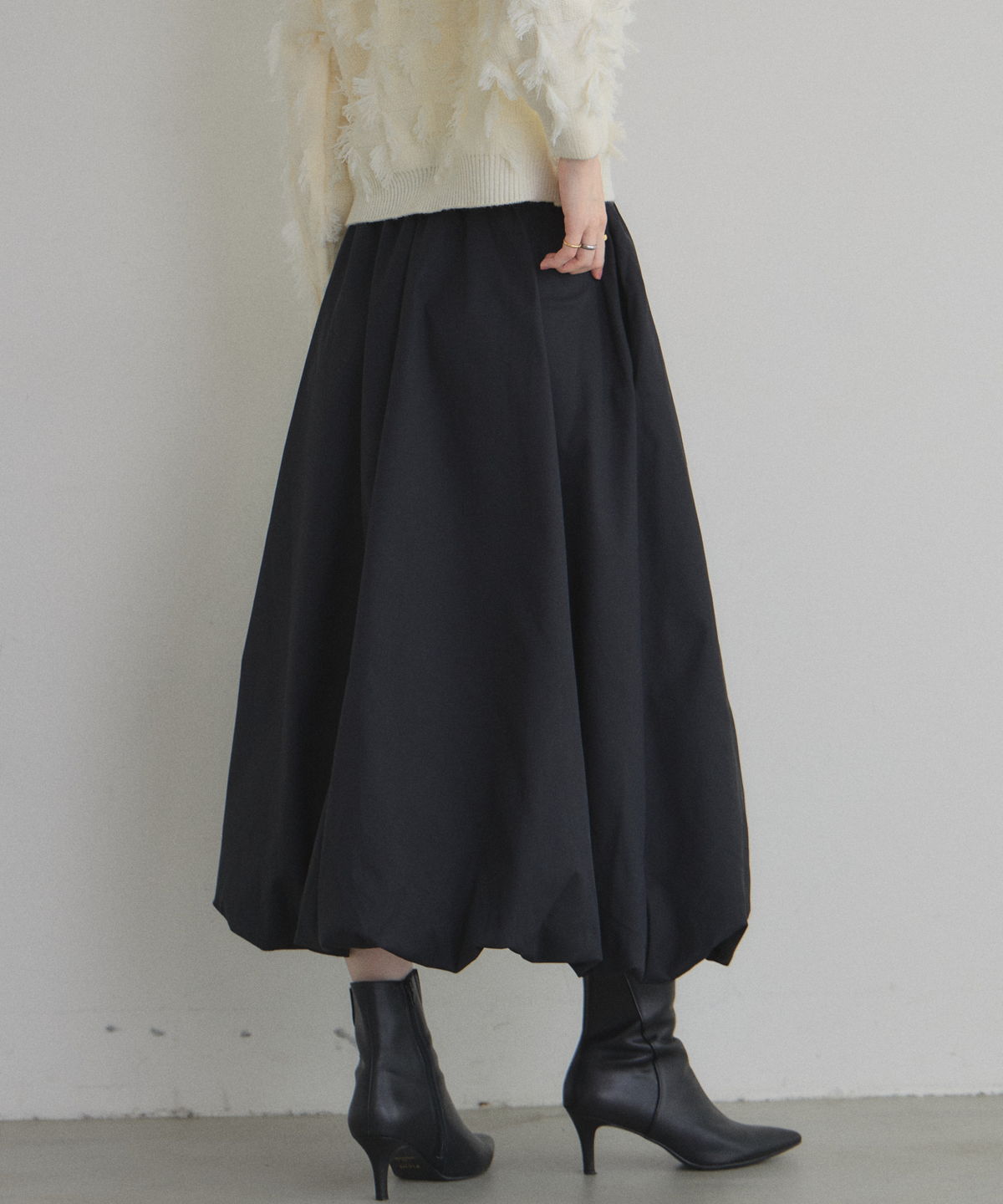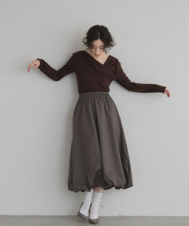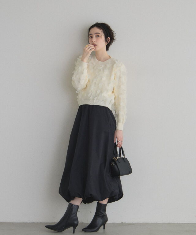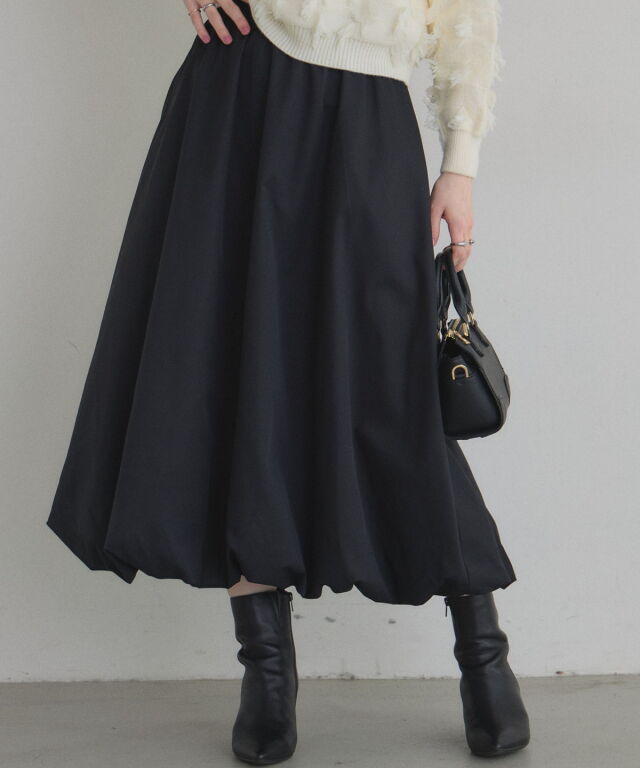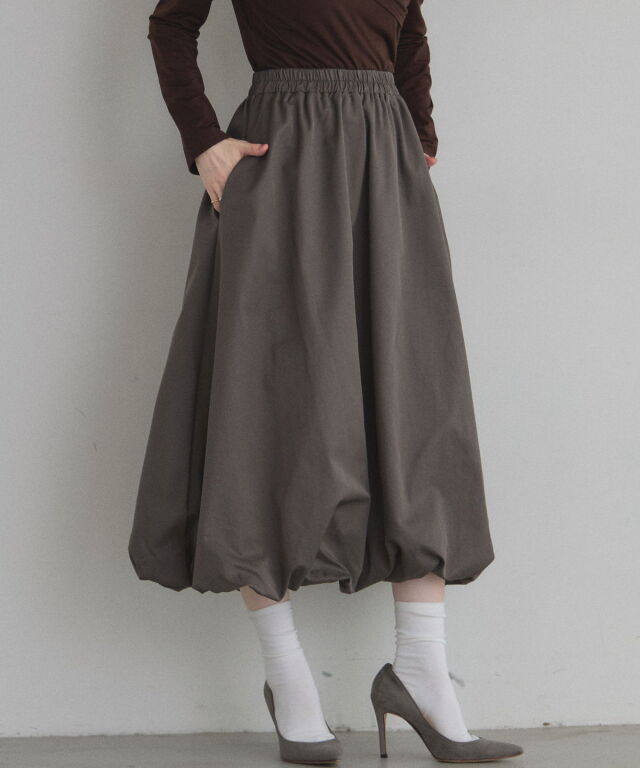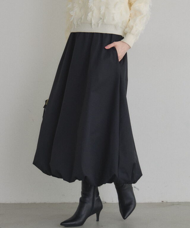| 商品説明 | : | ふわっと膨らむフォルムがドラマティックなバルーンスカート。 ハリのあるタフタ素材を使い、丸みのある立体シルエットを表現した一枚。 歩くたびふんわり広がるボリュームが、シンプルなトップスでも一気に着映え。 ウエストはすっきり見えしつつ、裾に向かって丸みが出る絶妙なバランス。 スニーカーでカジュアルに、パンプスでエレガントにも楽しめます。 コーデの主役になる、華やかさと抜け感を兼ね備えたバルーンスカートです |