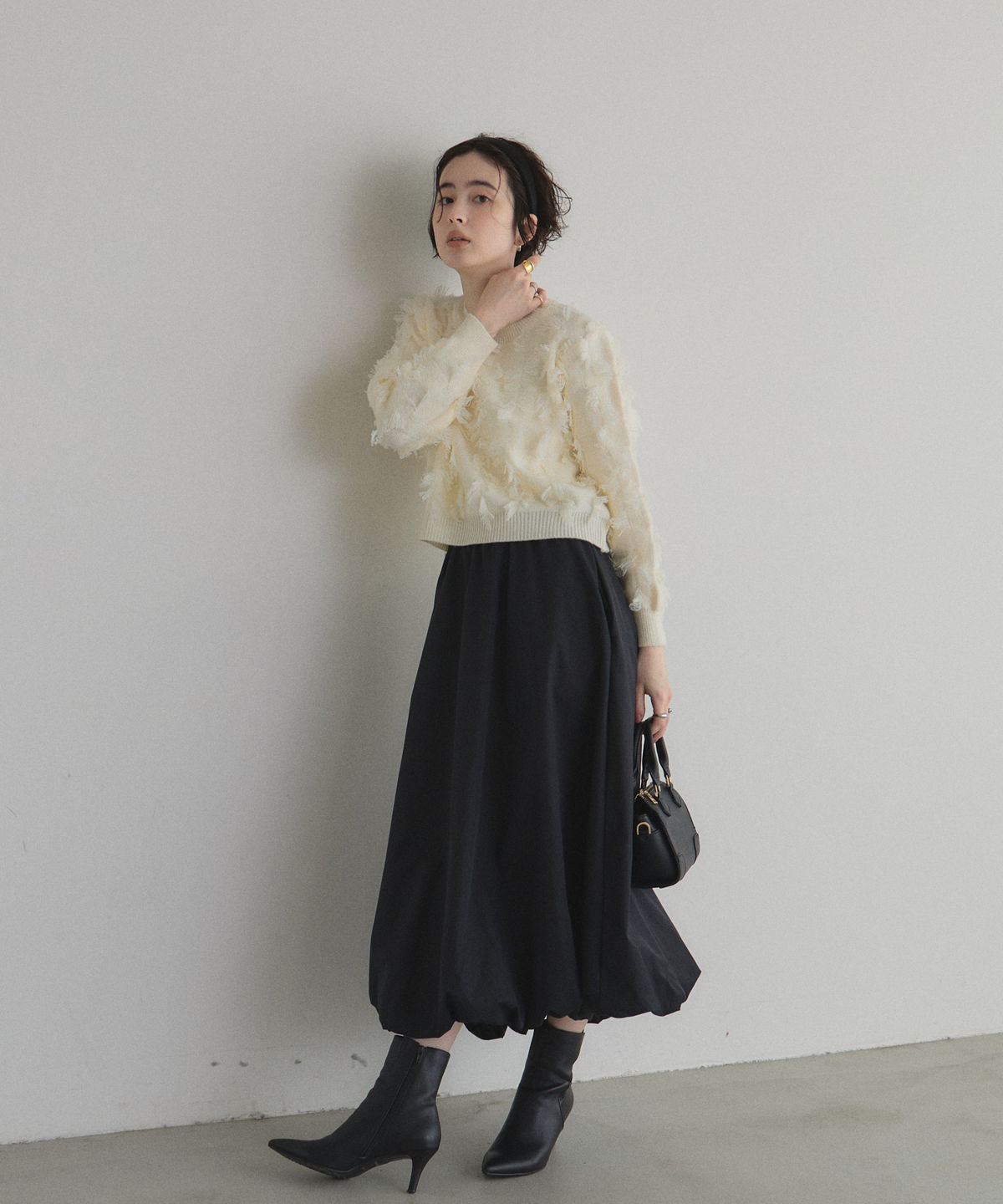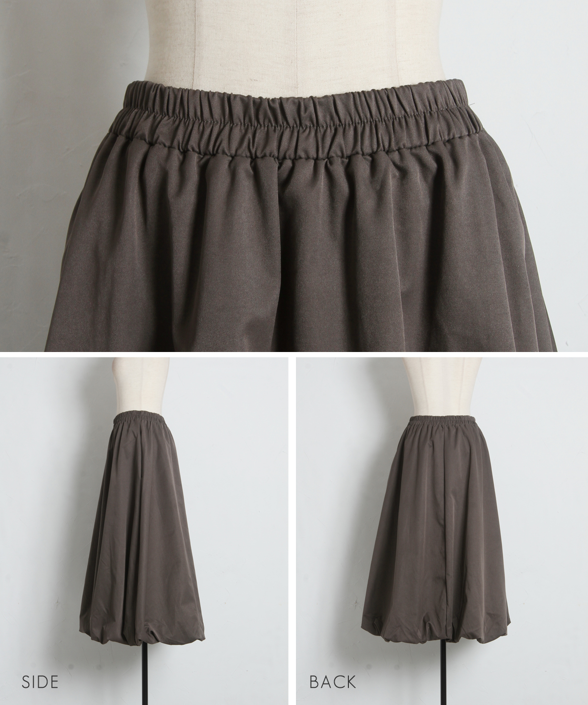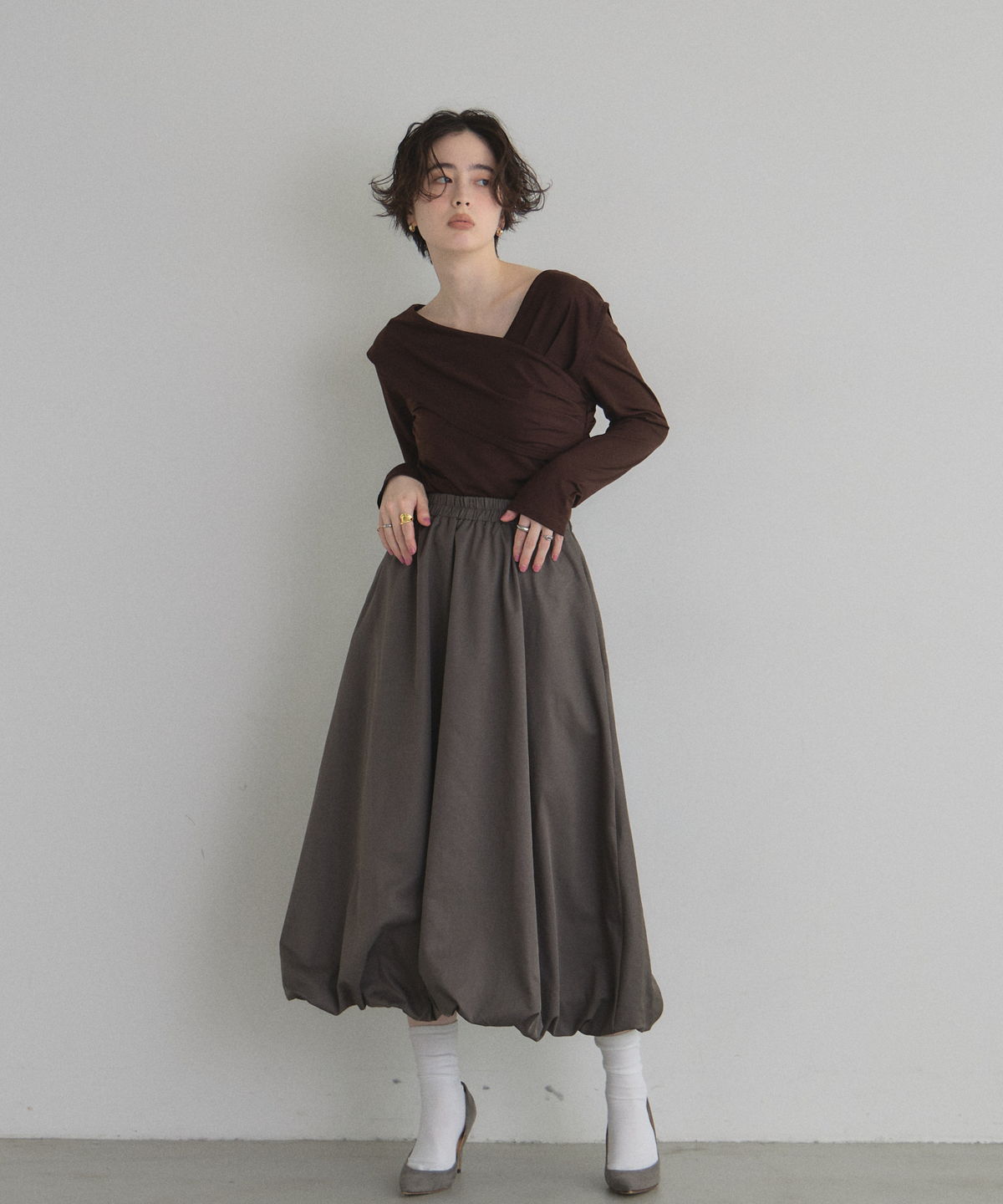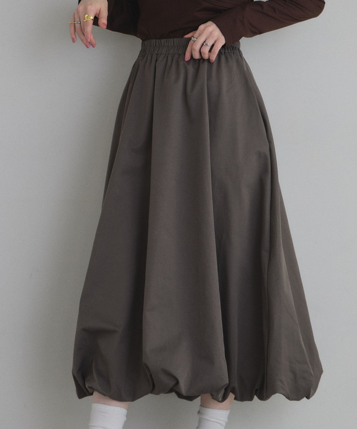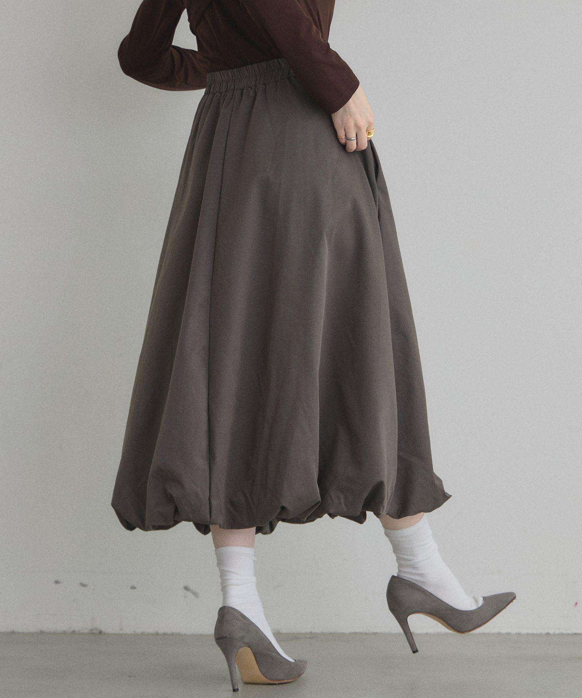 | 商品説明 | : | ふわっと膨らむフォルムがドラマティックなバルーンスカート。 ハリのあるタフタ素材を使い、丸みのある立体シルエットを表現した一枚。 歩くたびふんわり広がるボリュームが、シンプルなトップスでも一気に着映え。 ウエストはすっきり見えしつつ、裾に向かって丸みが出る絶妙なバランス。 スニーカーでカジュアルに、パンプスでエレガントにも楽しめます。 コーデの主役になる、華やかさと抜け感を兼ね備えたバルーンスカートです |