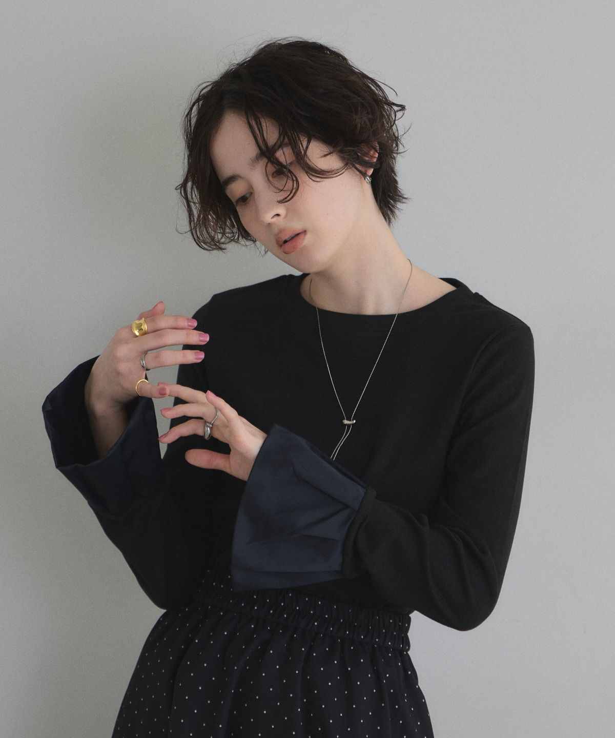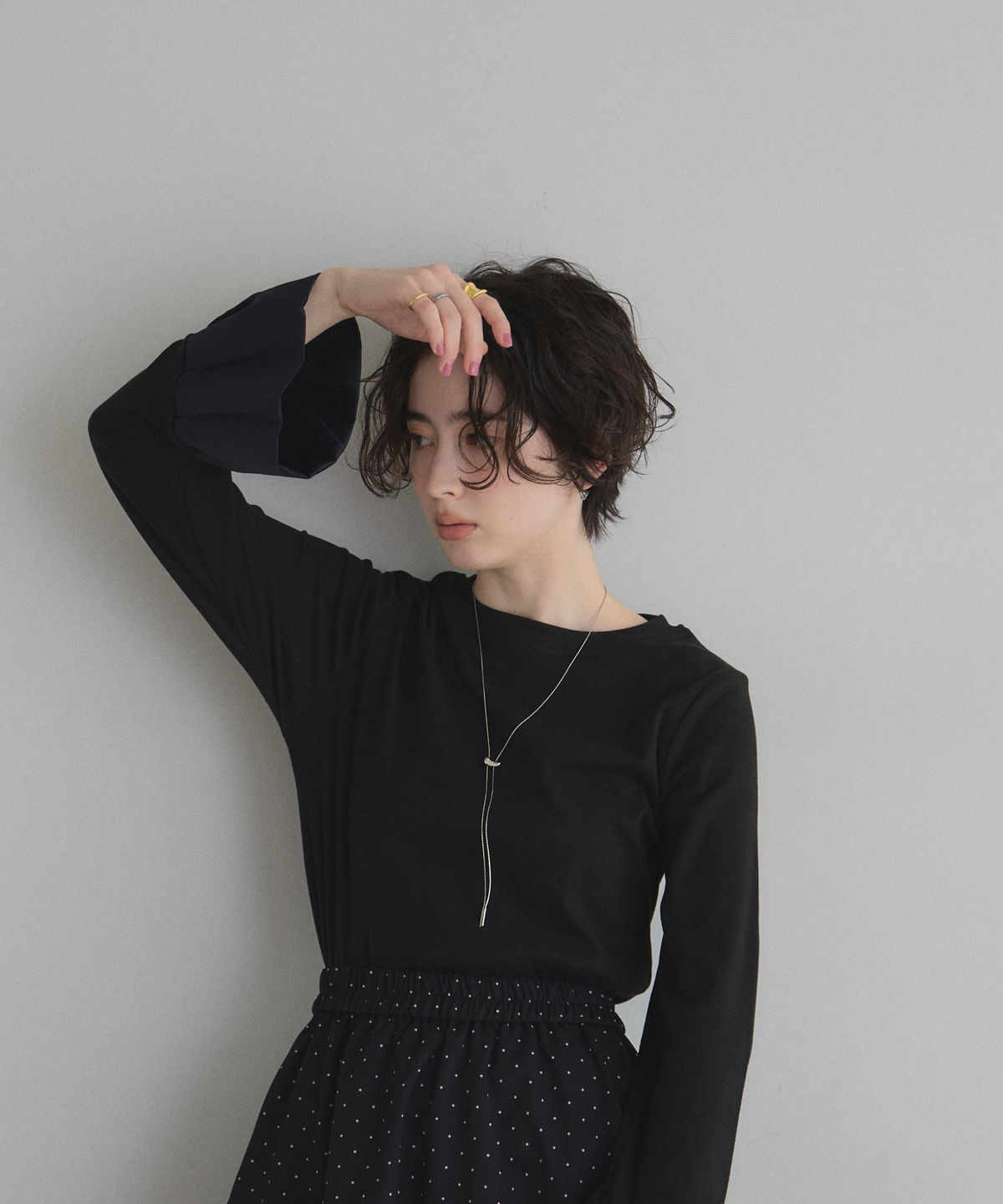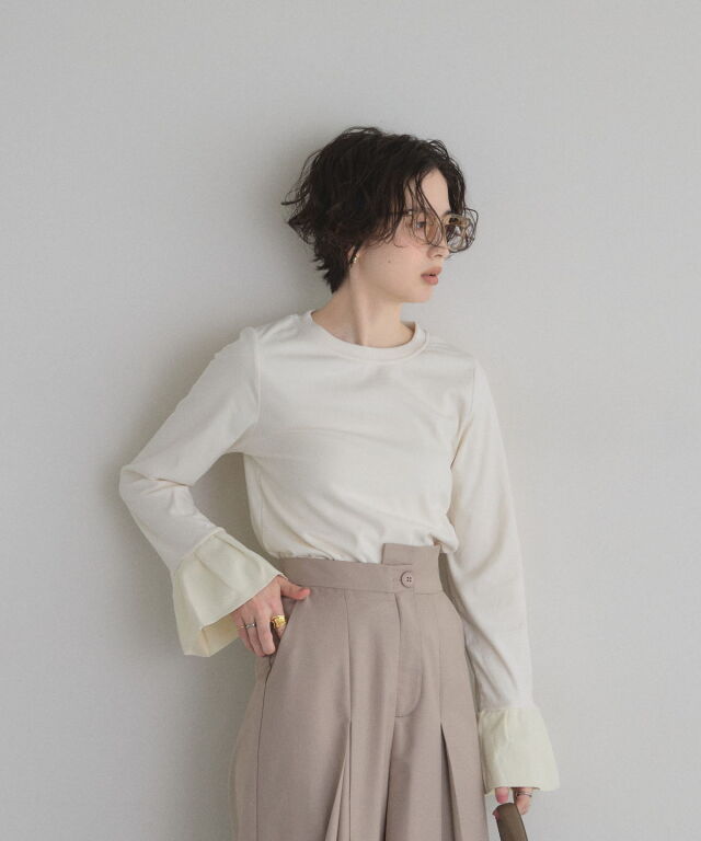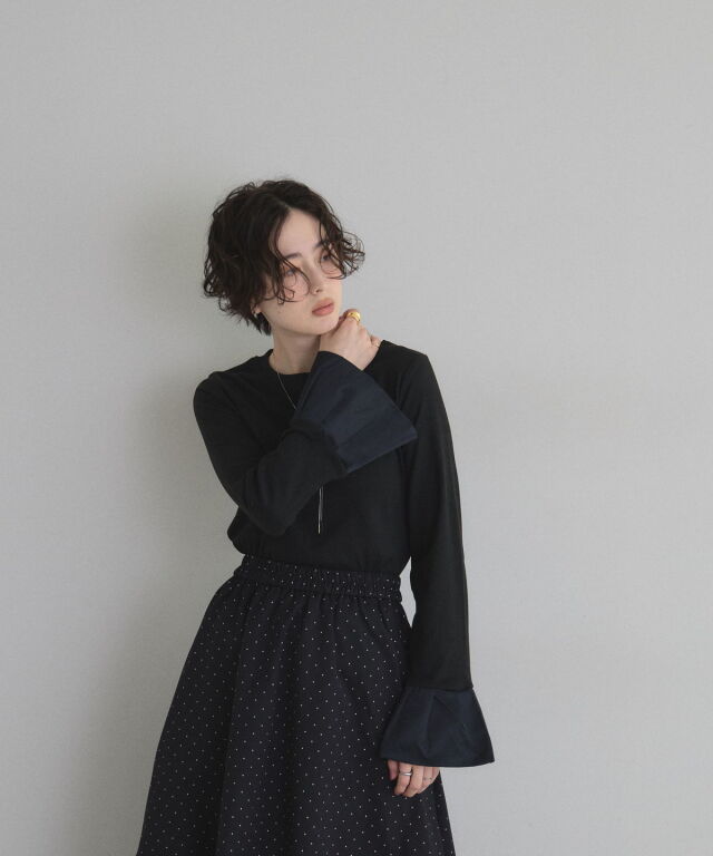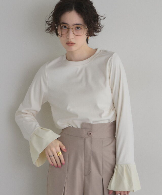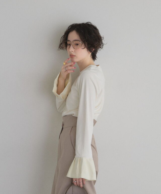 フレアスリーブがシンプルなカットソーも華やかにアップデート♥ シンプルカットソーにフェミニンなフレア袖をプラスし、カジュアルすぎない一枚に。 腕をほっそり見せてくれる揺れ感で、さりげなくスタイルアップ効果も◎ デニム合わせで甘辛MIX、スカートでガーリーにも大人っぽくも着回せる万能デザイン。 インでもアウトでも決まりがよく、どんなアイテムとも相性抜群。 「普段着」が一歩アップデートされる、華やぎアイテムです。 |
