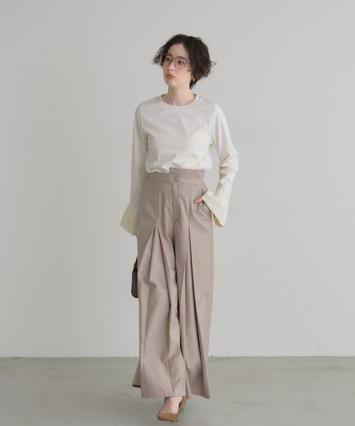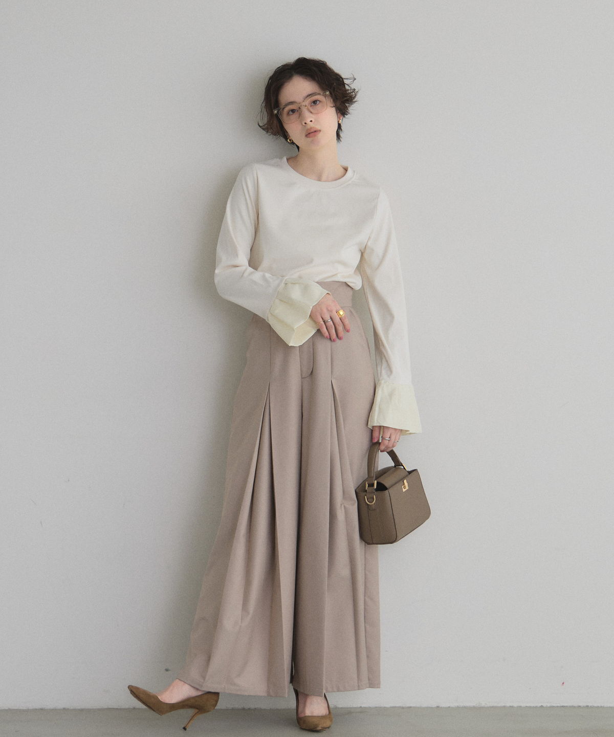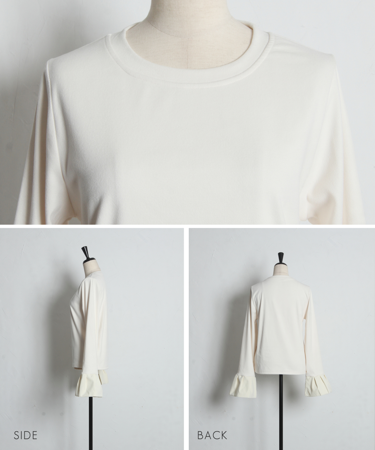 フレアスリーブがシンプルなカットソーも華やかにアップデート♥ シンプルカットソーにフェミニンなフレア袖をプラスし、カジュアルすぎない一枚に。 腕をほっそり見せてくれる揺れ感で、さりげなくスタイルアップ効果も◎ デニム合わせで甘辛MIX、スカートでガーリーにも大人っぽくも着回せる万能デザイン。 インでもアウトでも決まりがよく、どんなアイテムとも相性抜群。 「普段着」が一歩アップデートされる、華やぎアイテムです。 |